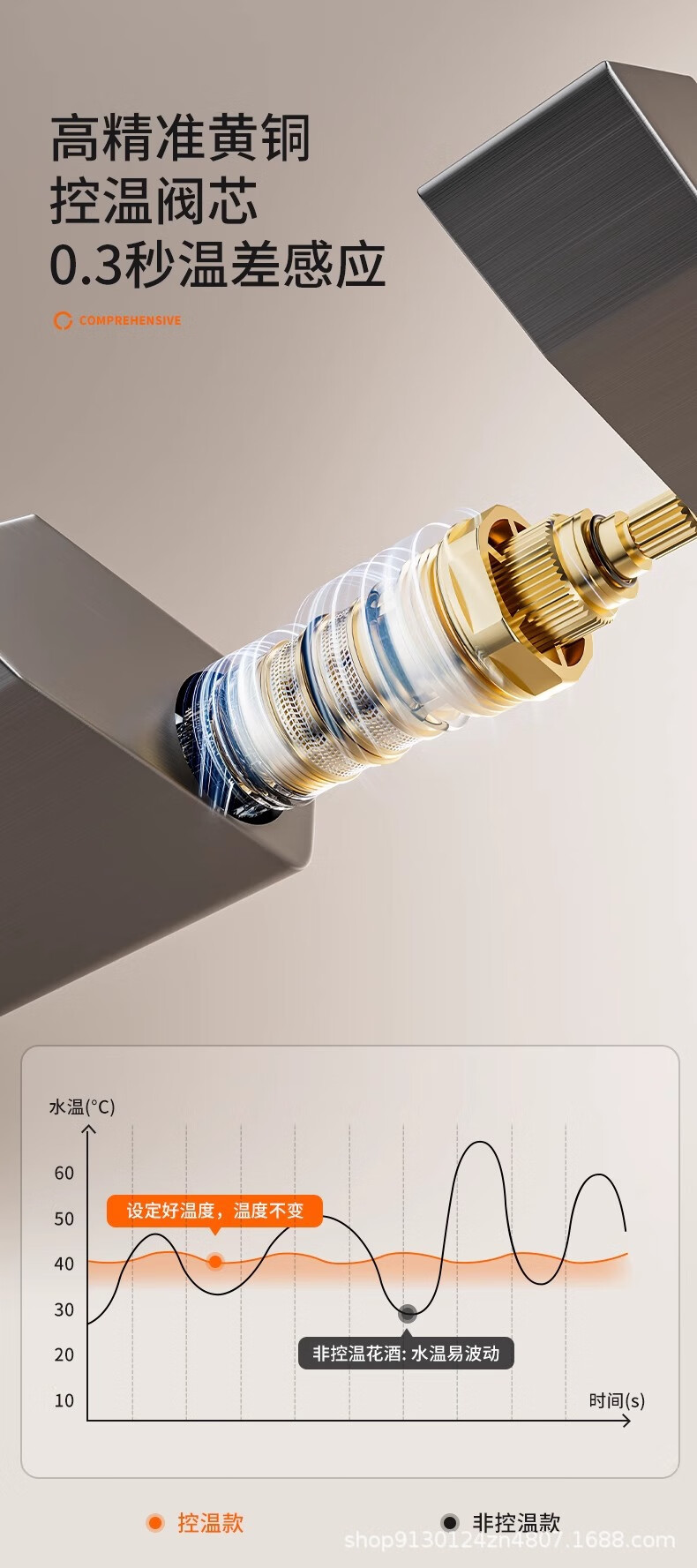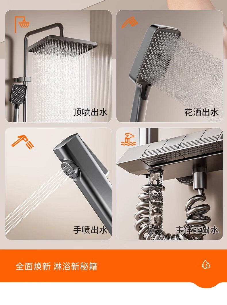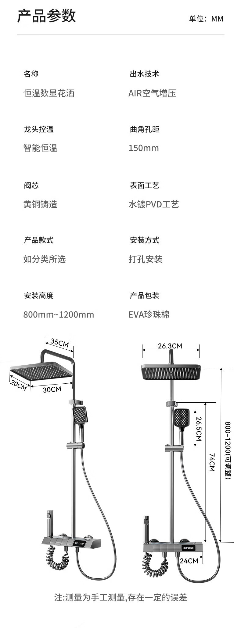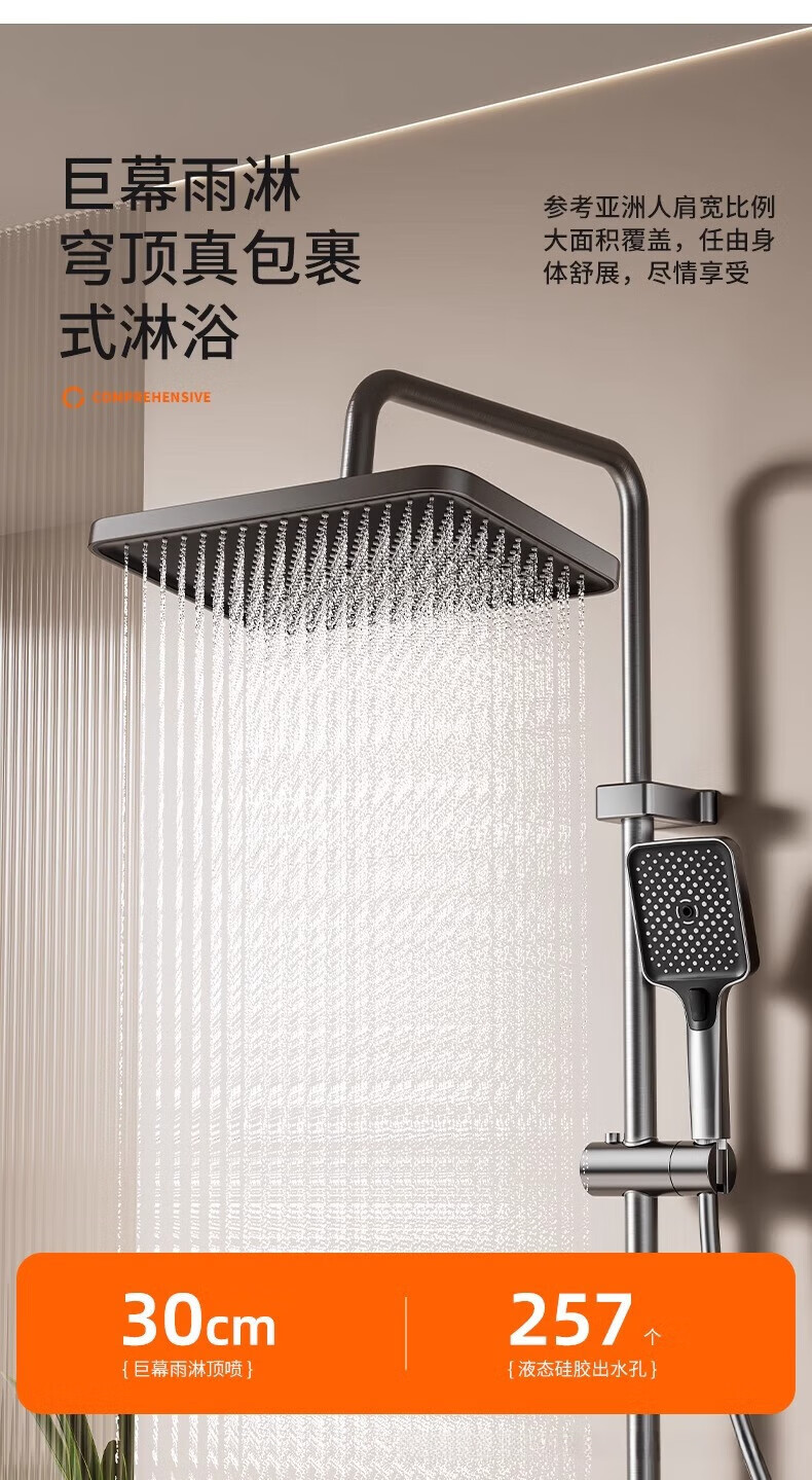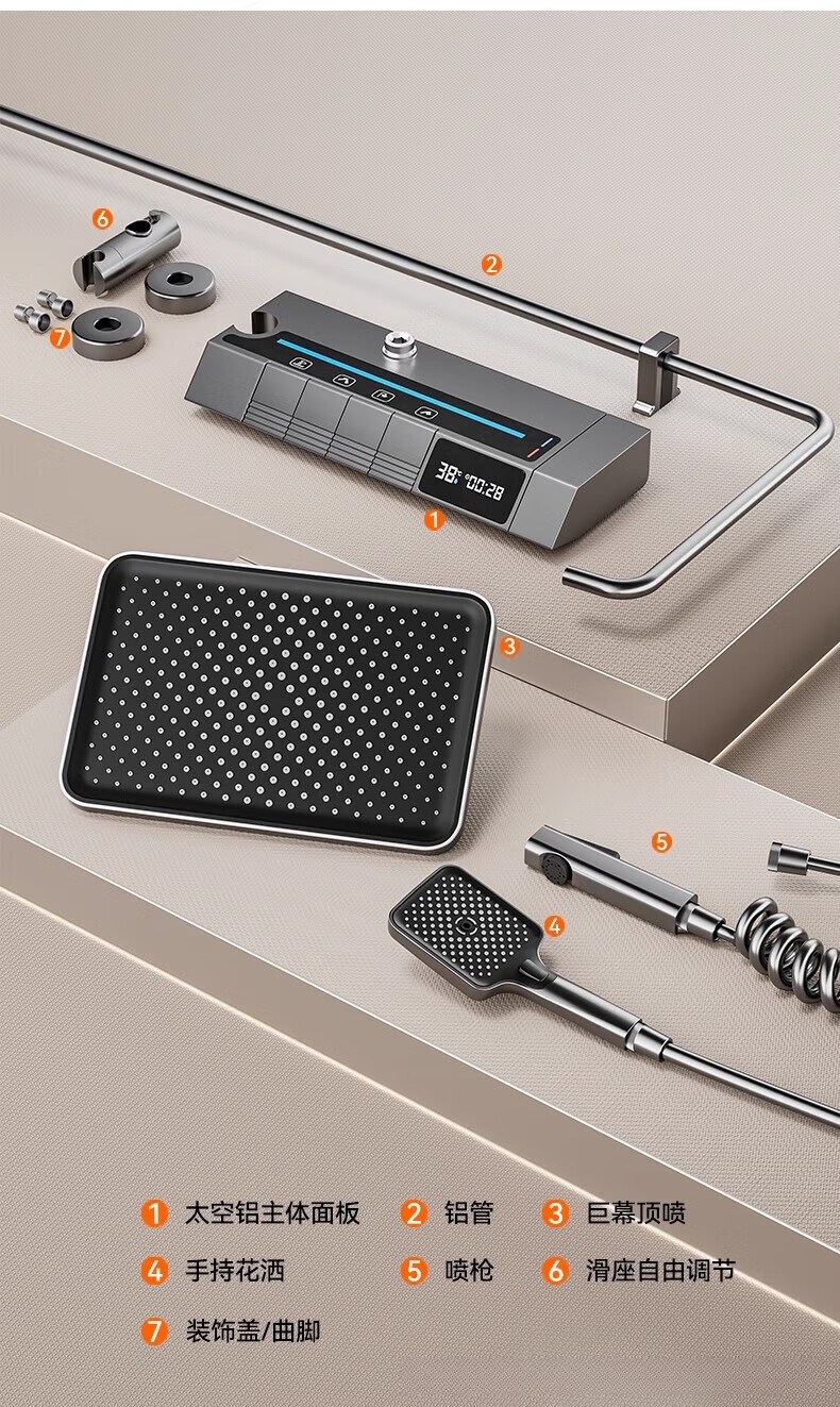 Xiaomi Guoba New Constant Temperature Shower Set Household Full Copper Bathroom Intelligent Bathroom Digital Display Atmosphere Light Shower Complete Set Black - Hot and Cold Aircraft Carrier Piano (Alloy)