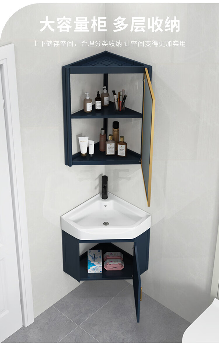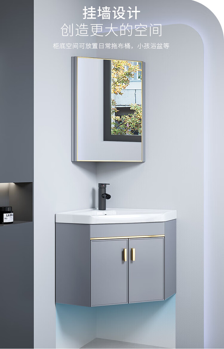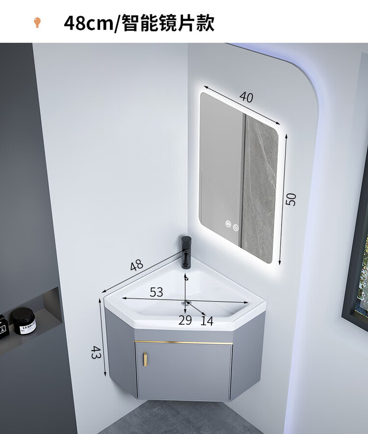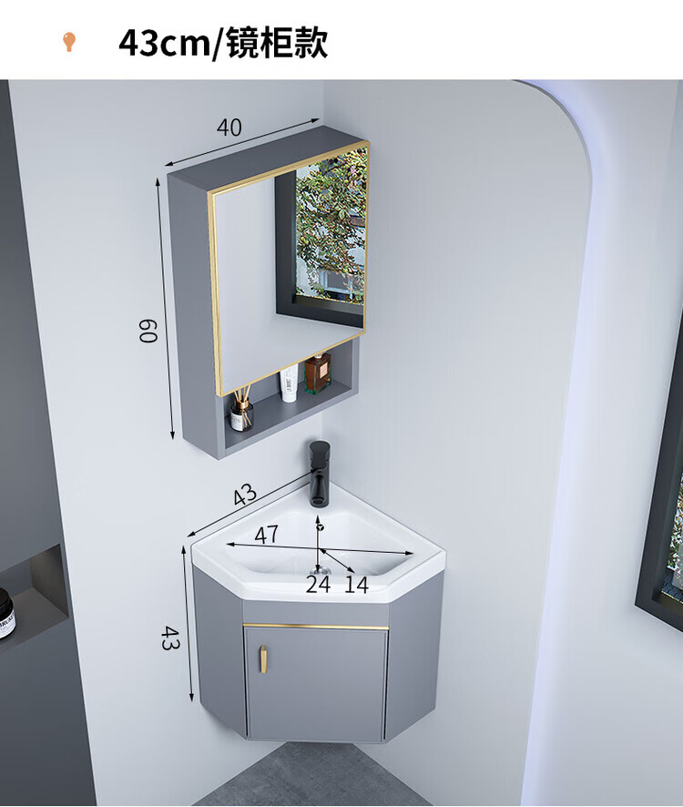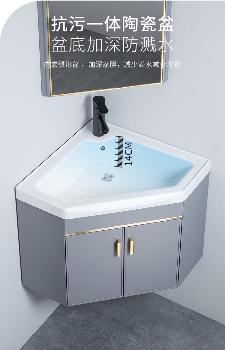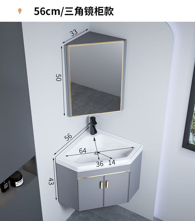 Jomoo's new triangular bathroom cabinet combination washbasin corner small bathroom washbasin balcony small washbasin 38cm new light gray triangular cabinet + triangular mirror cabinet