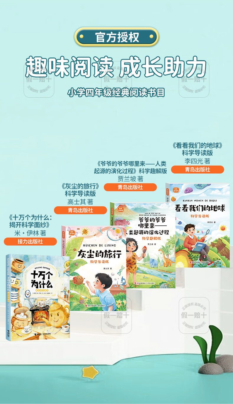 Children's language and bookishness, fourth grade, take a look at our earth, science guide version, Qingdao Press, where did grandpa's grandfather come from, the evolutionary process of human origin, the journey of dust, one hundred thousand whys, 2026 winter vacation 4-book set for fourth grade, take a look at our earth science guide version, look at our earth, fourth grade