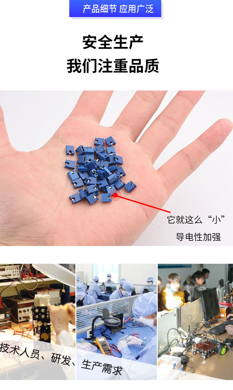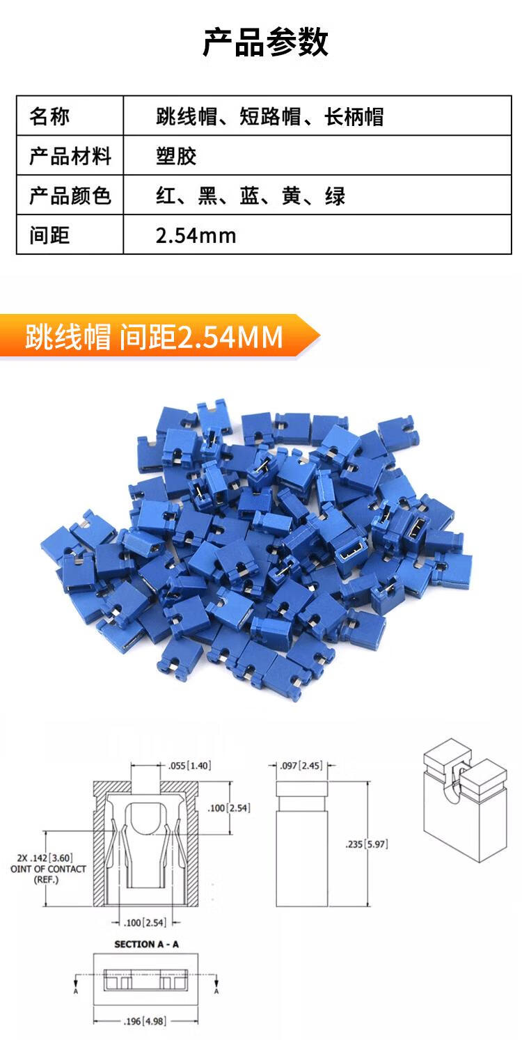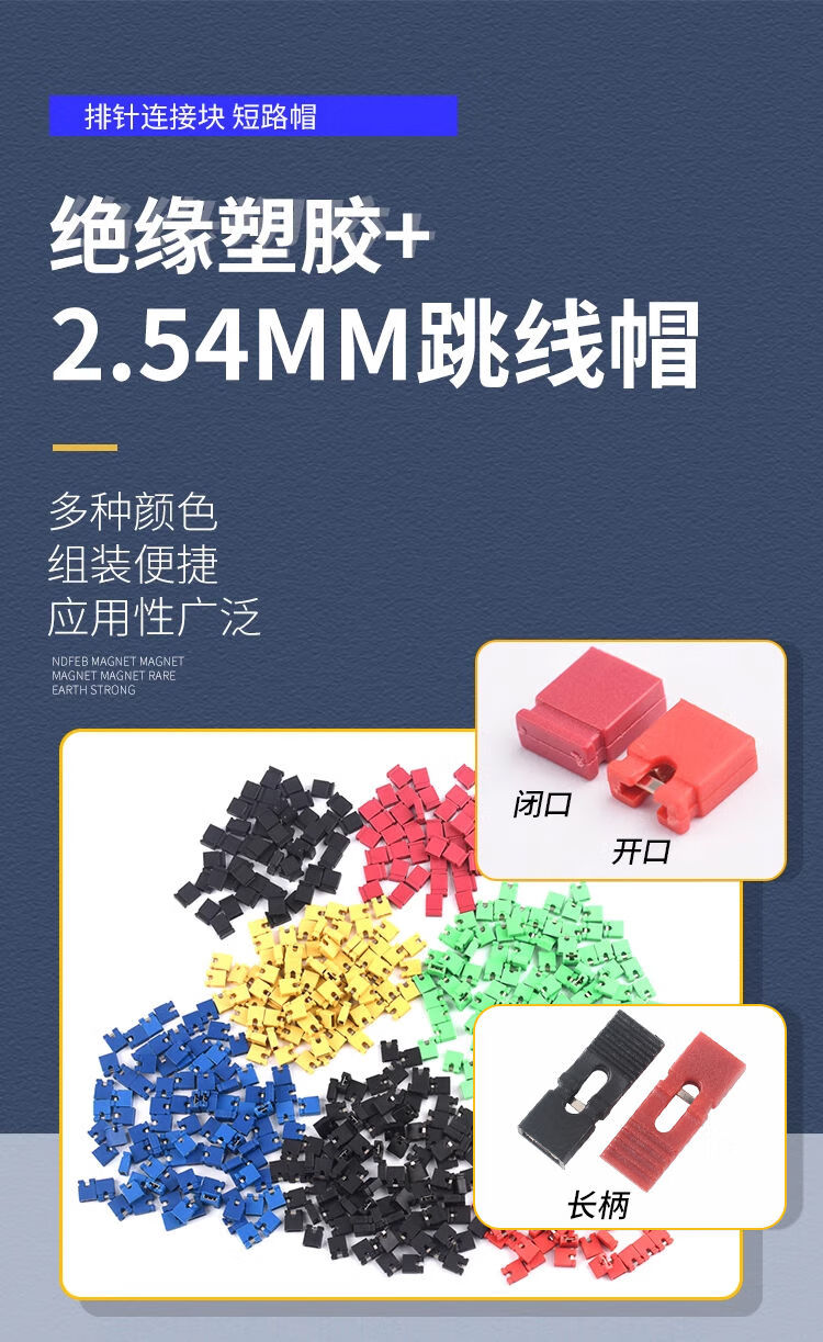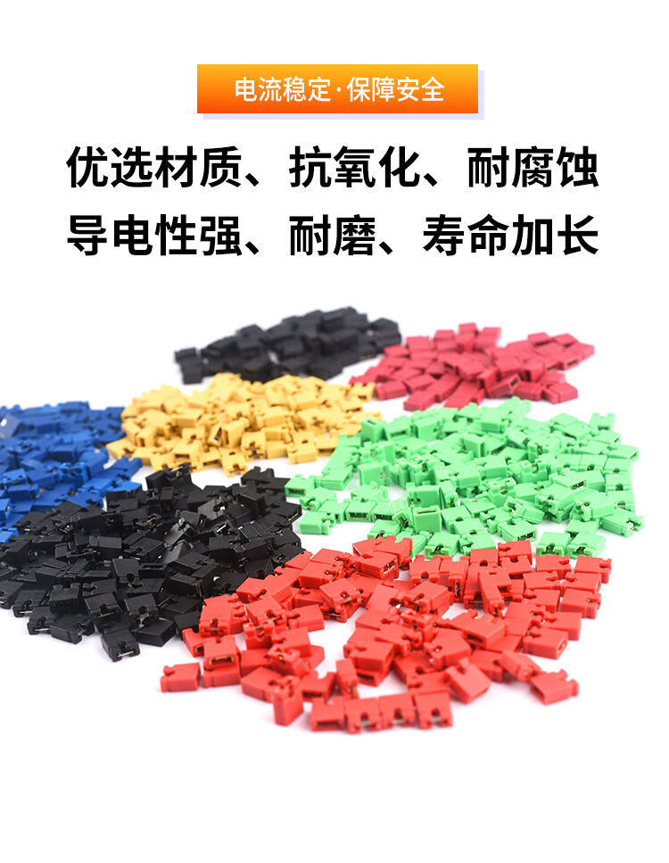 Zejie jumper cap long handle cap pitch 2.54MM color jumper cap short circuit block pin header connection block yellow opening (100 pieces)