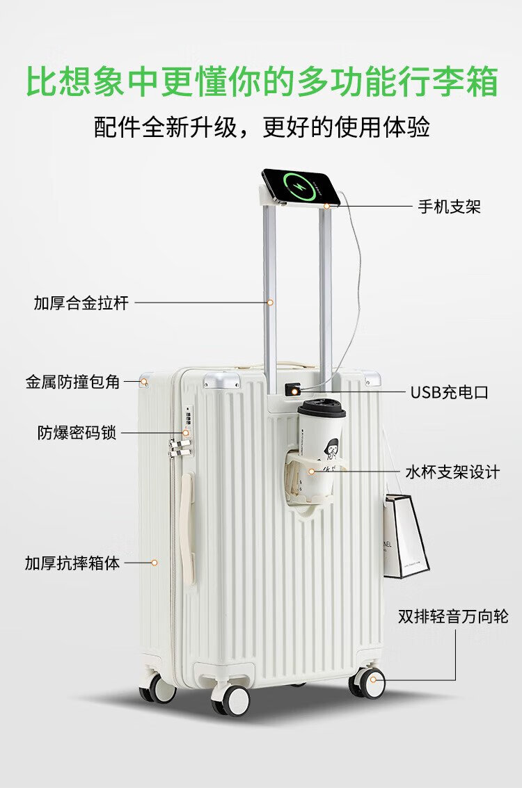 Luggage men's trolley case multifunctional female student large capacity suitcase password case leather suitcase boarding case 20 inches black zipper 26 inches
