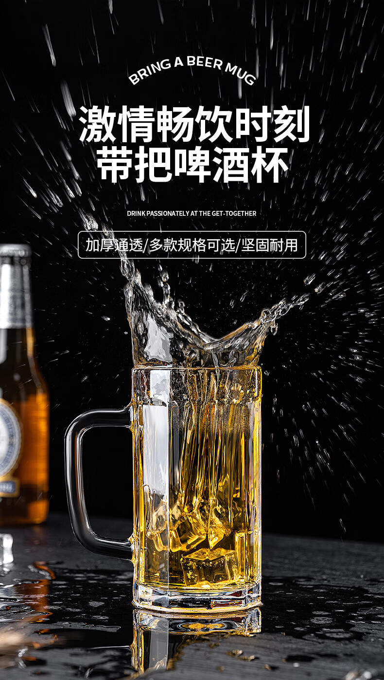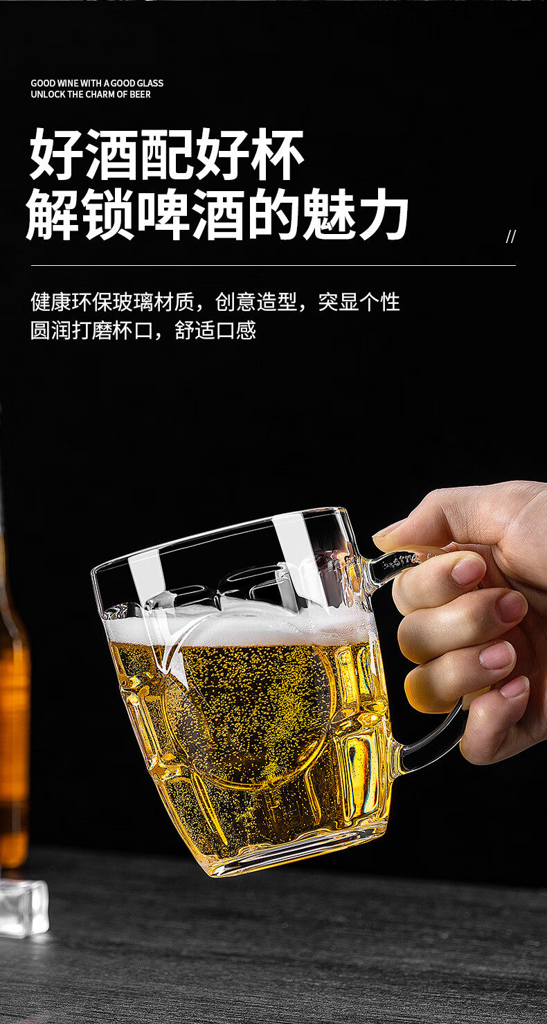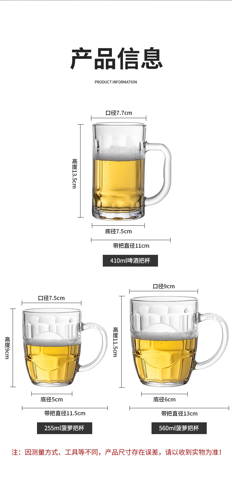 De Gust beer mug thickened with handle draft beer mug bar restaurant large capacity tea cup cold water glass juice cup pineapple cup thickened large capacity 290ml 6 pieces