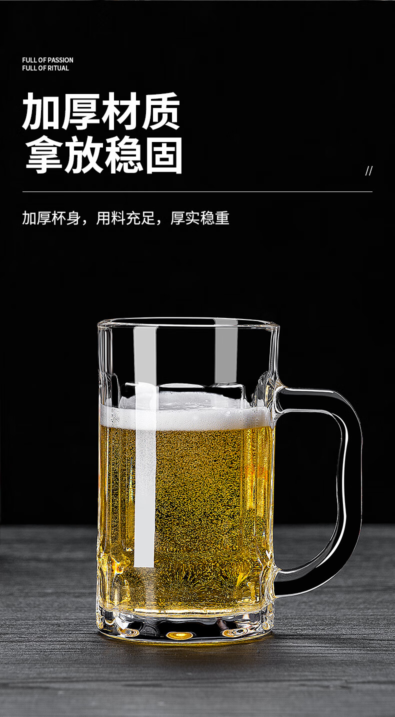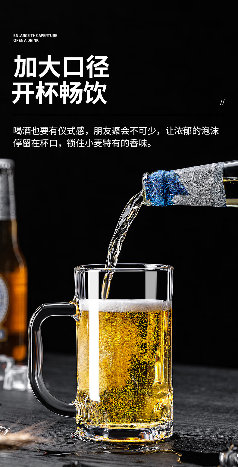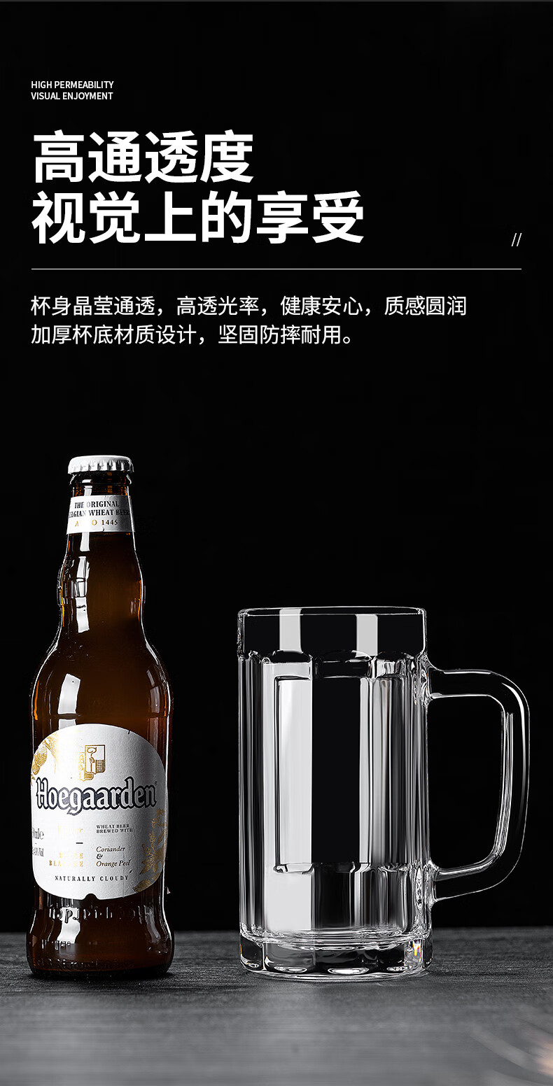 De Gust beer mug thickened with handle draft beer mug bar restaurant large capacity tea cup cold water glass juice cup pineapple cup thickened large capacity 290ml 6 pieces