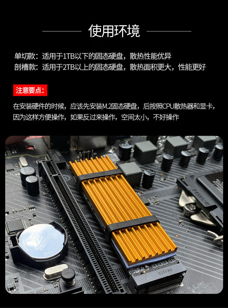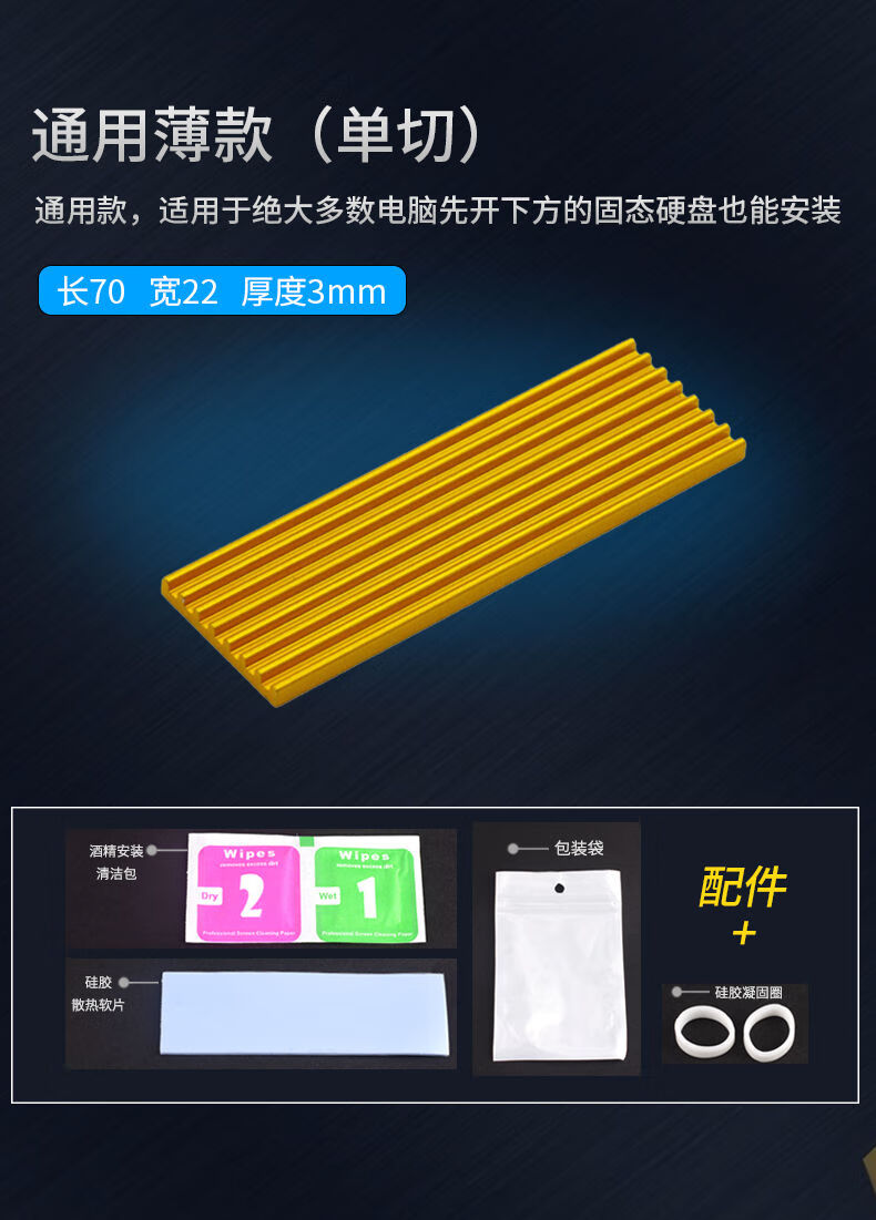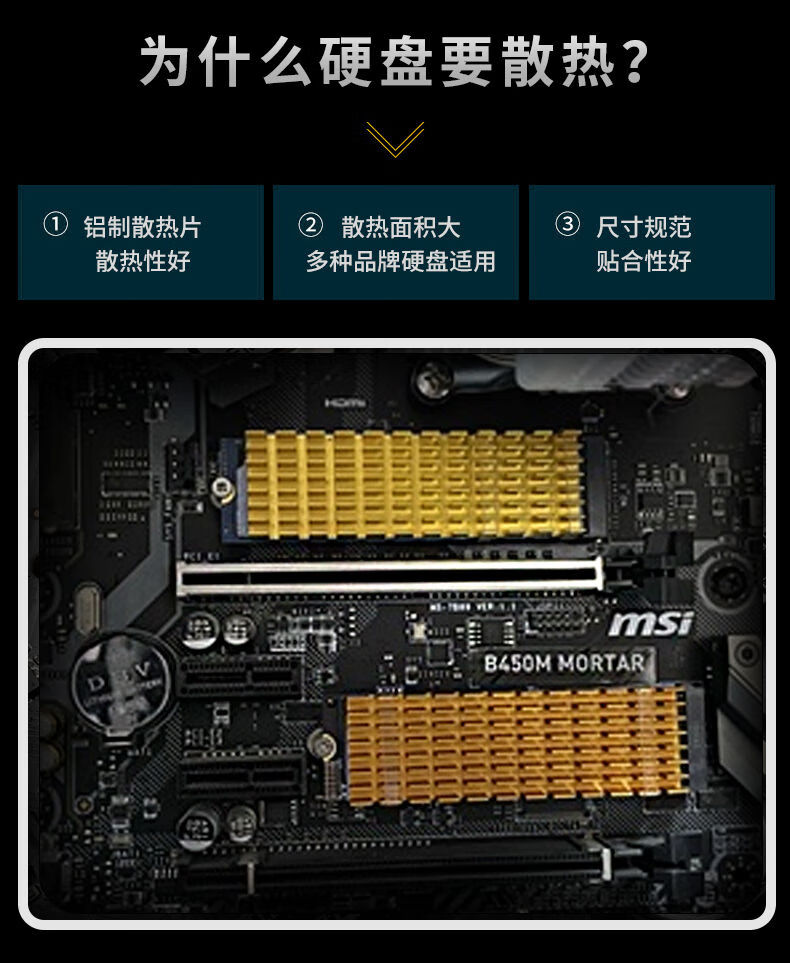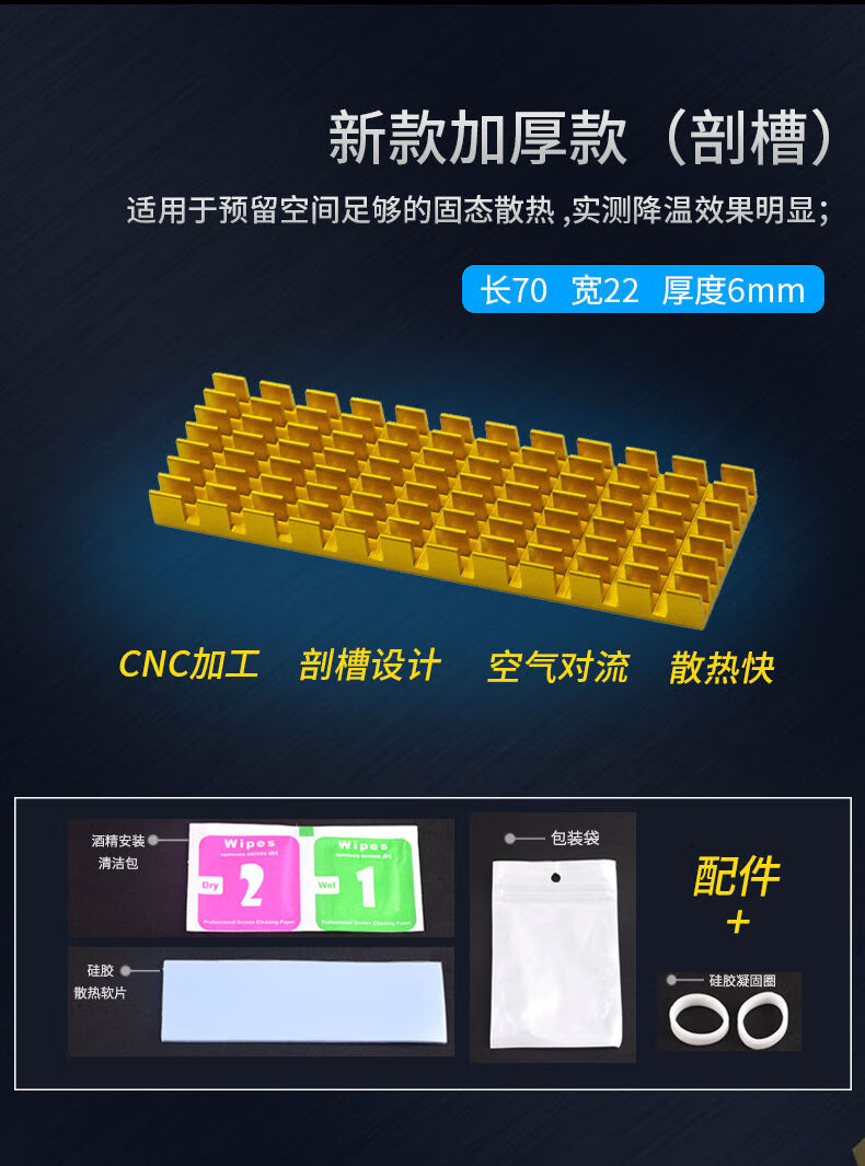 Zejie M.2 solid state drive heat sink 2280 desktop m2 computer notebook PCI-E SSD vest thermal aluminum strip single cut 6mm black (screwdriver included)