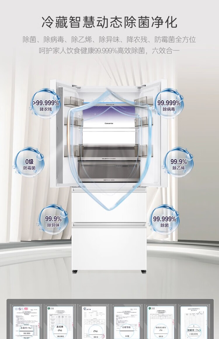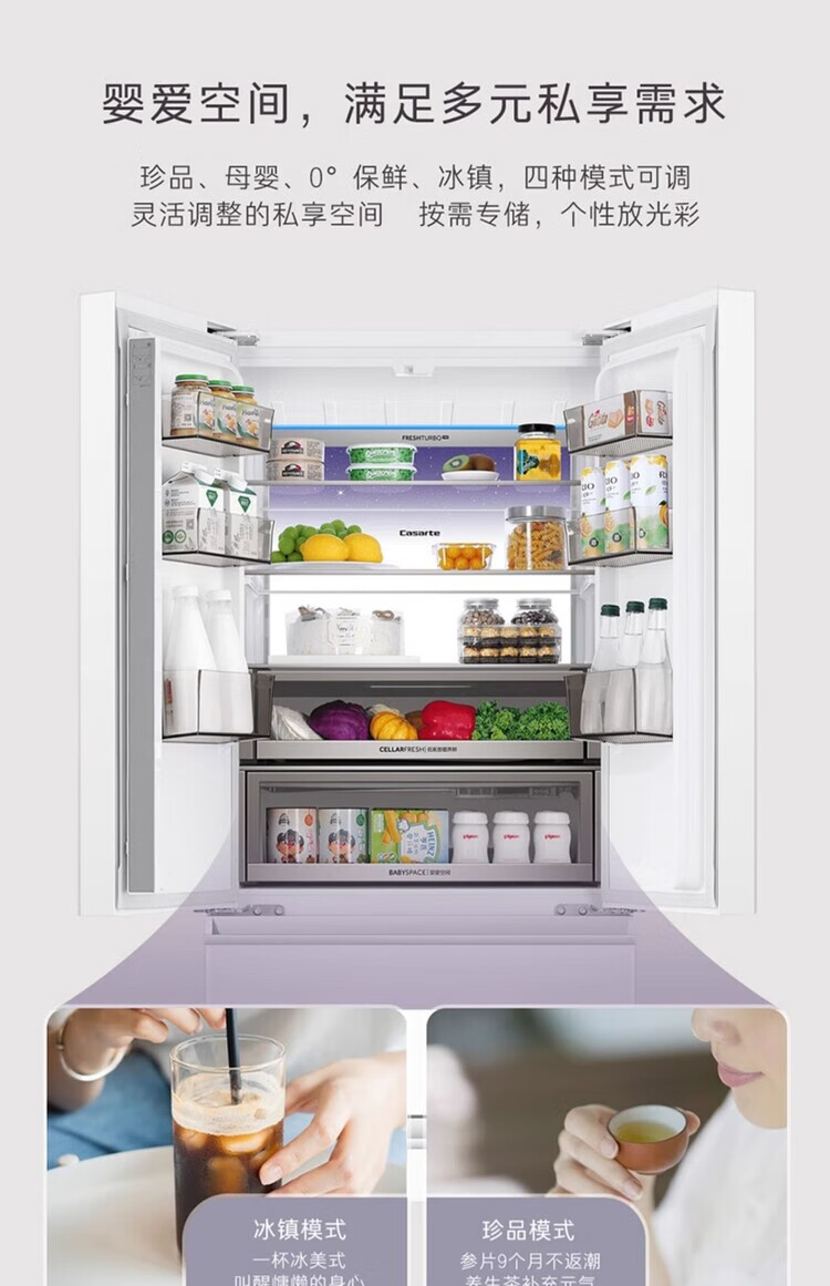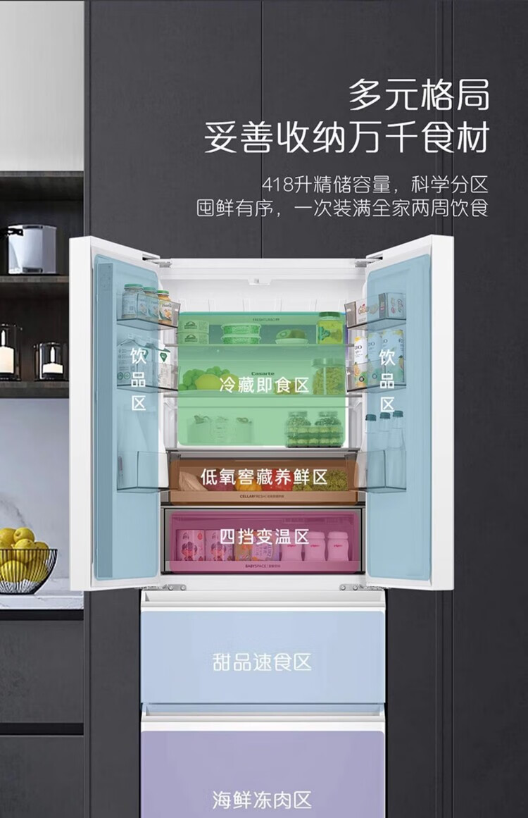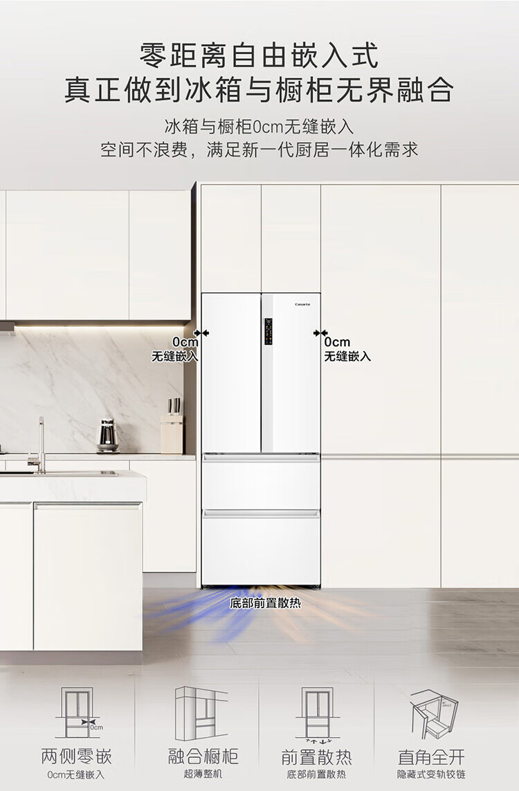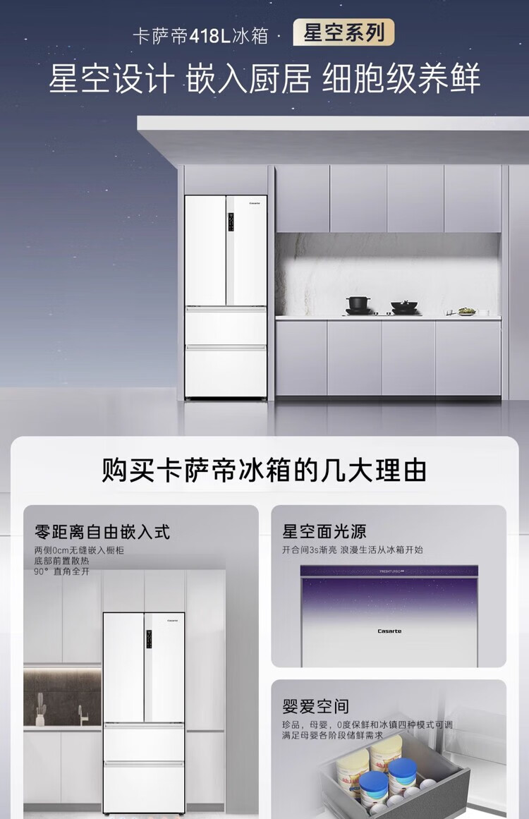 Casarte super subsidized price Languang 418L white ultra-thin zero-embedded French MRA active sterilization refrigerator WKU1 BCD-418WLCFDM4WKU1 Light Year White