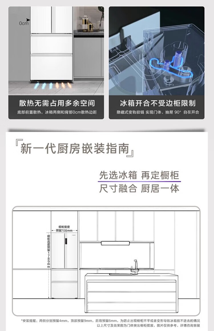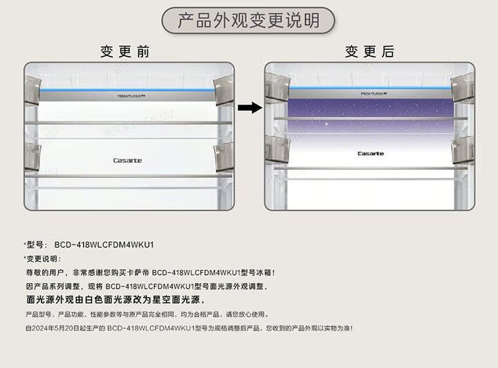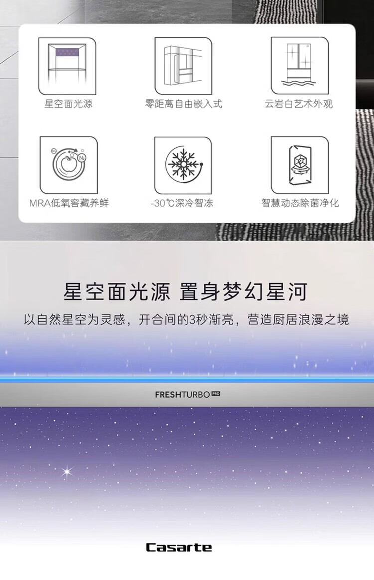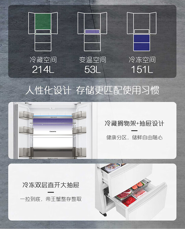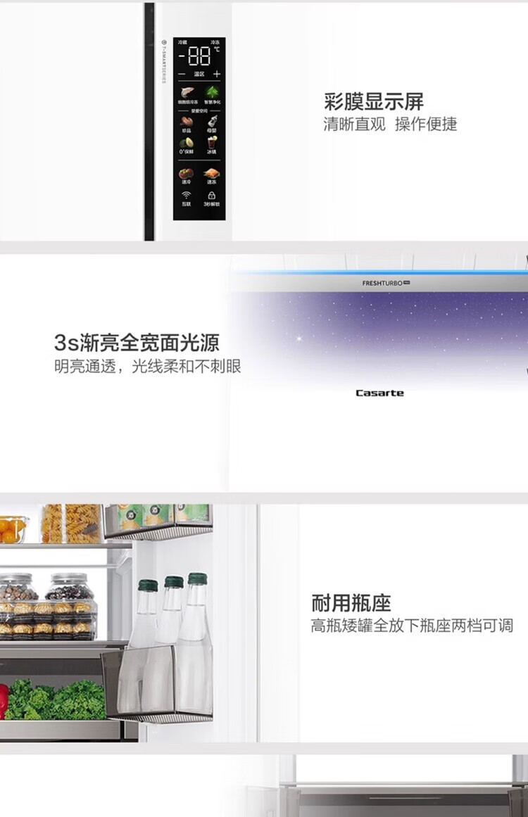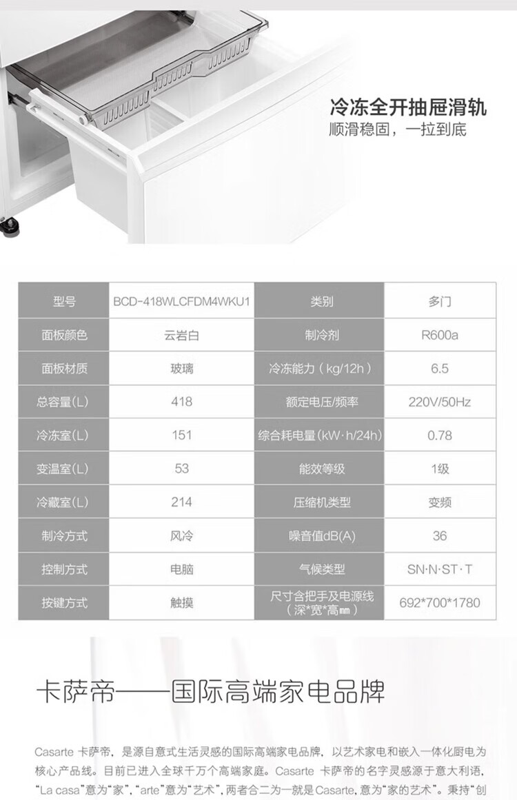 Casarte super subsidized price Languang 418L white ultra-thin zero-embedded French MRA active sterilization refrigerator WKU1 BCD-418WLCFDM4WKU1 Light Year White