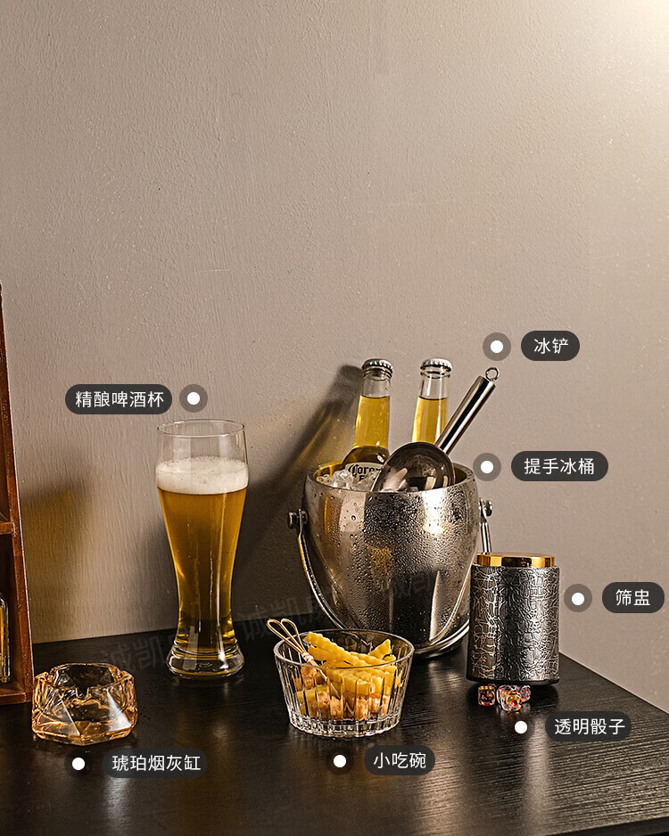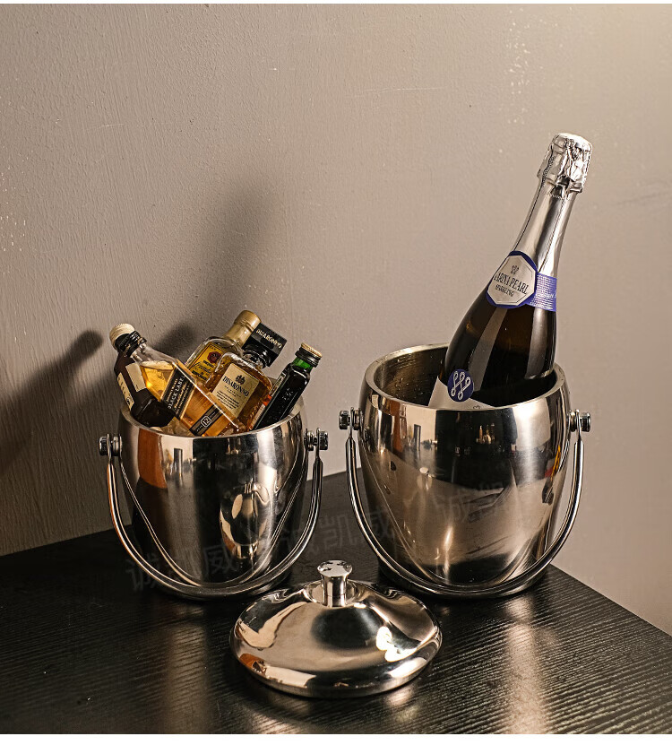 Ruolin double-layer stainless steel ice bucket filled with ice cubes household red wine champagne bucket style ice storage insulation bucket with lid storage bucket ice storage bucket large silver