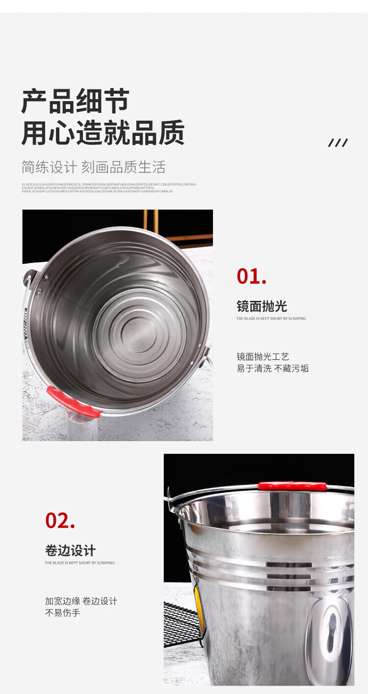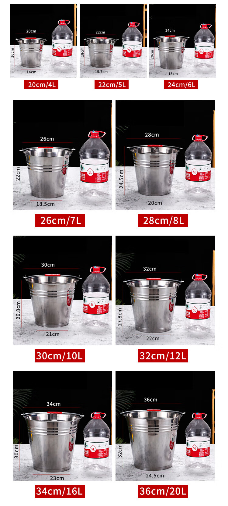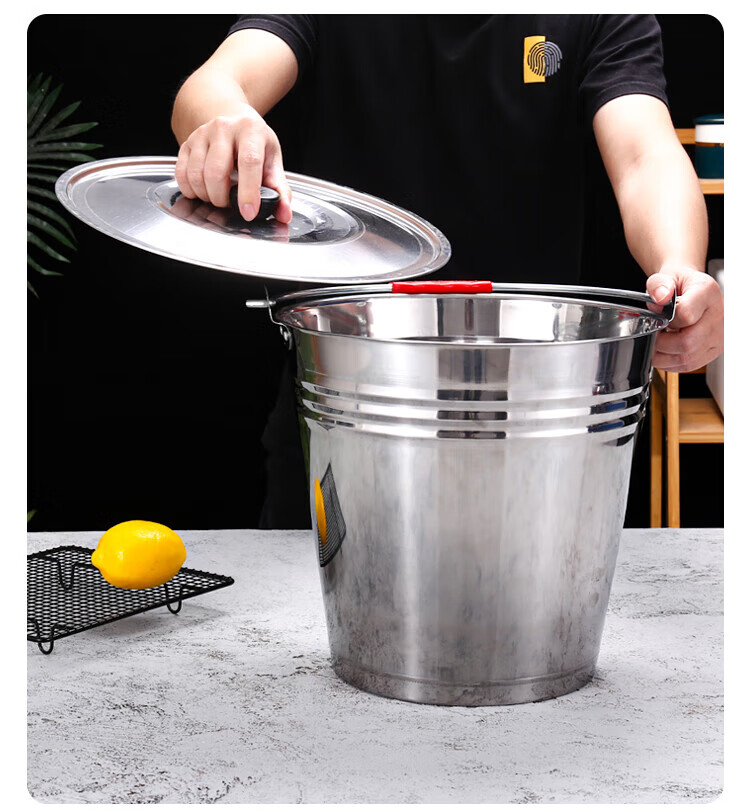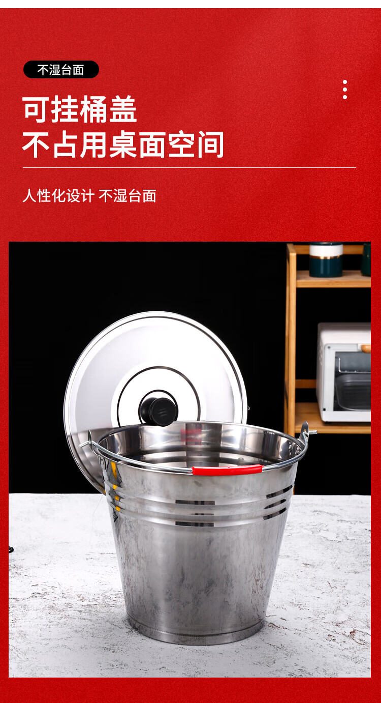 Ruolin stainless steel bucket portable ice bucket kindergarten trash can with lid oil bucket iron bucket home kitchen canteen thickened extra thick 30cm bucket 10L without lid with water spoon