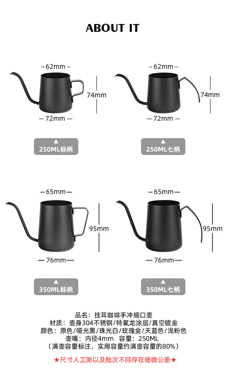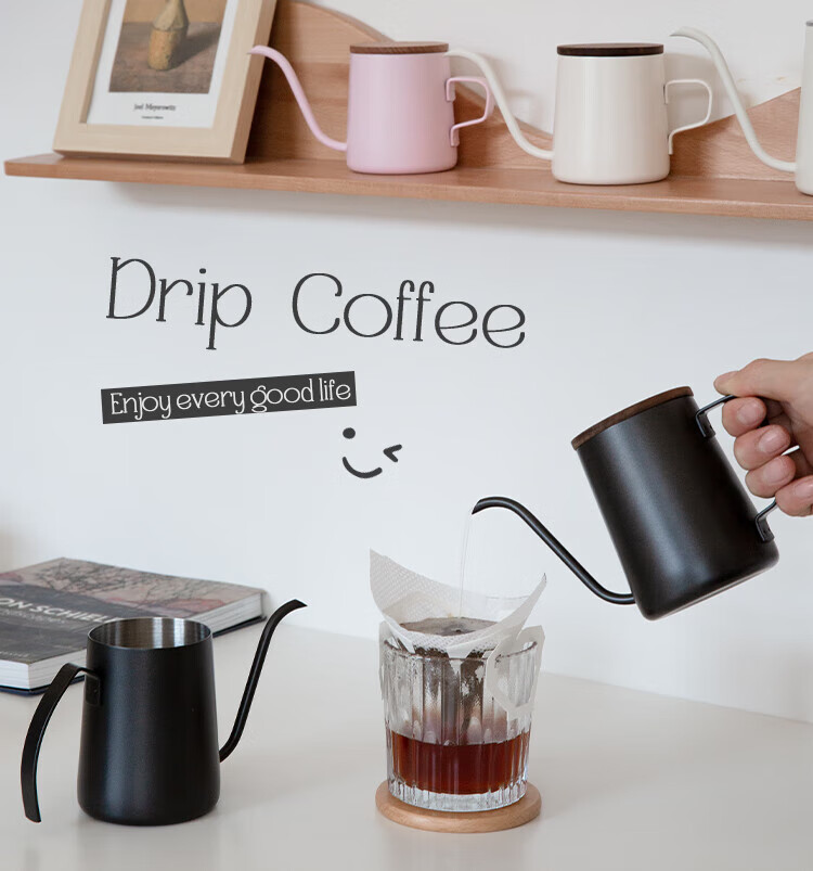 Ruolin ins mini hanging ear hand brewing coffee pot 304 stainless steel long mouth narrow mouth pot free laser engraving ear hanging hand brewing kettle 250ML original color scale version