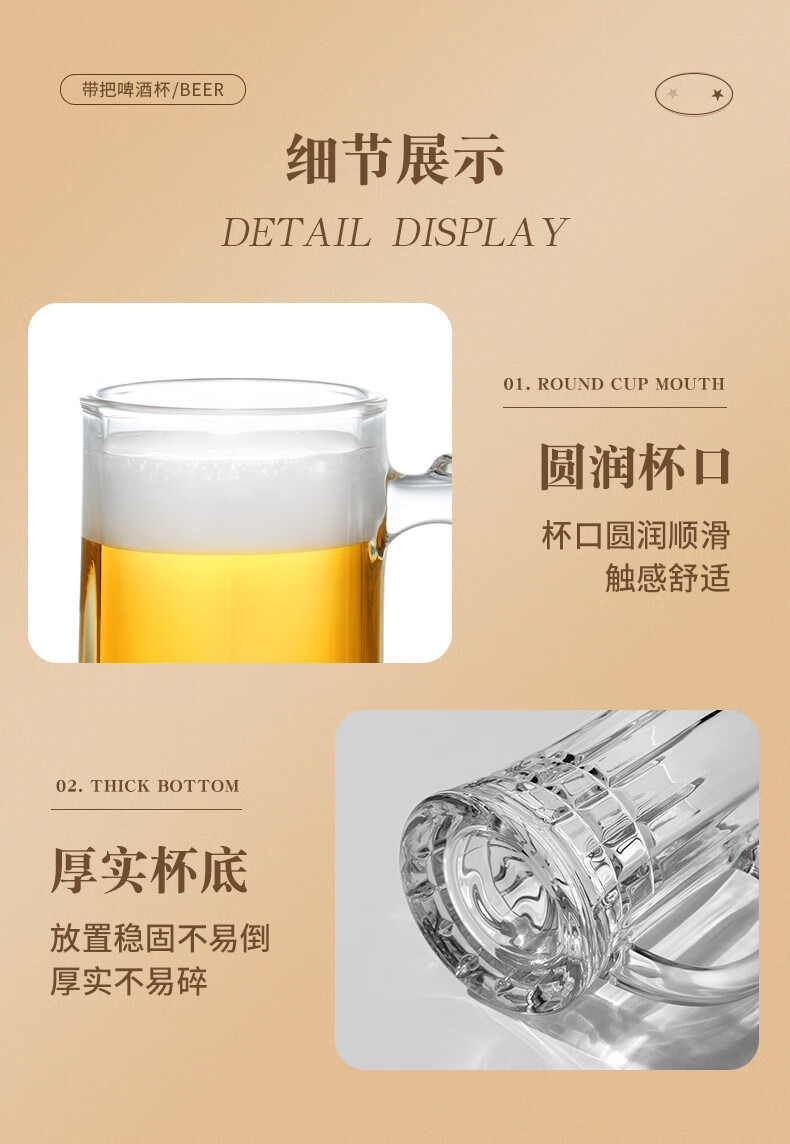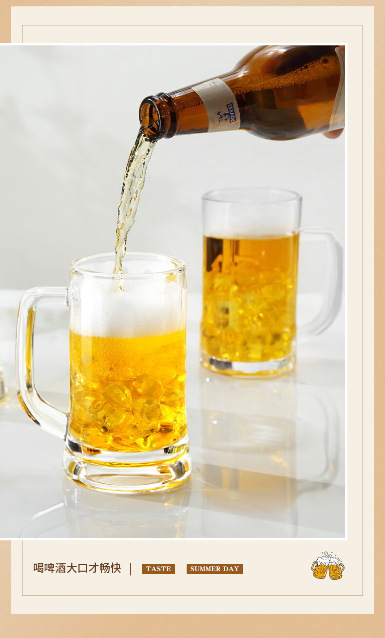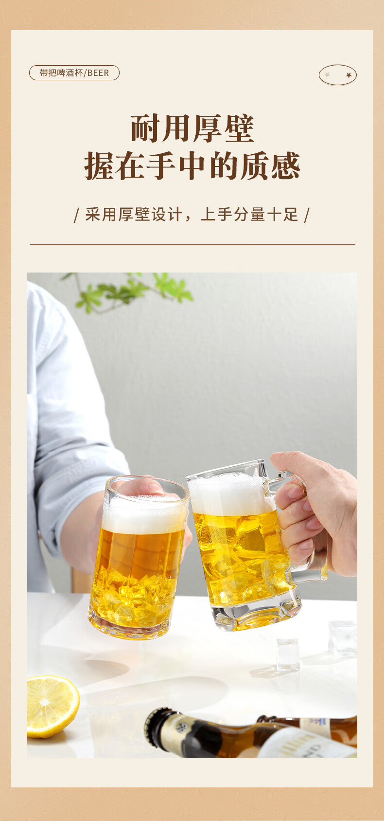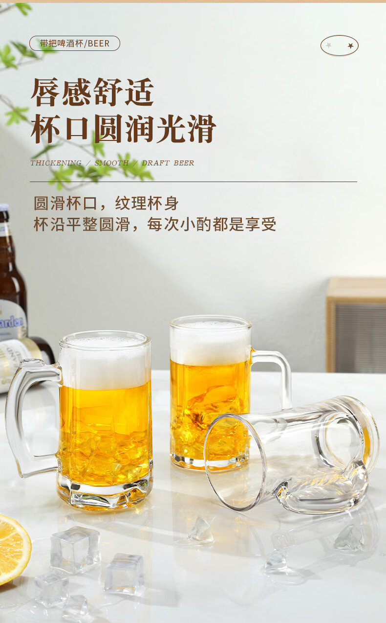 De Gust beer glass thickened with handle draft beer cup tea cup large capacity household milk cup juice cup water cup 410ml classic draft beer cup 1