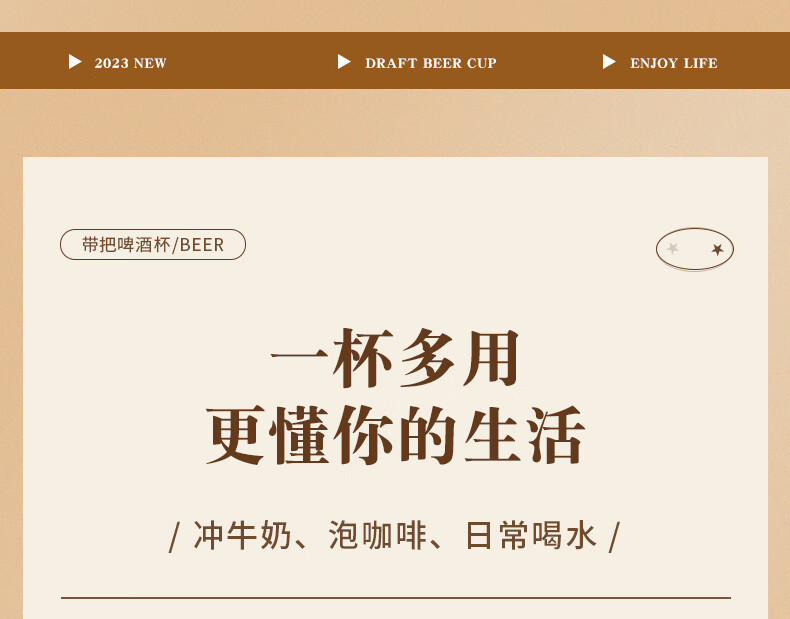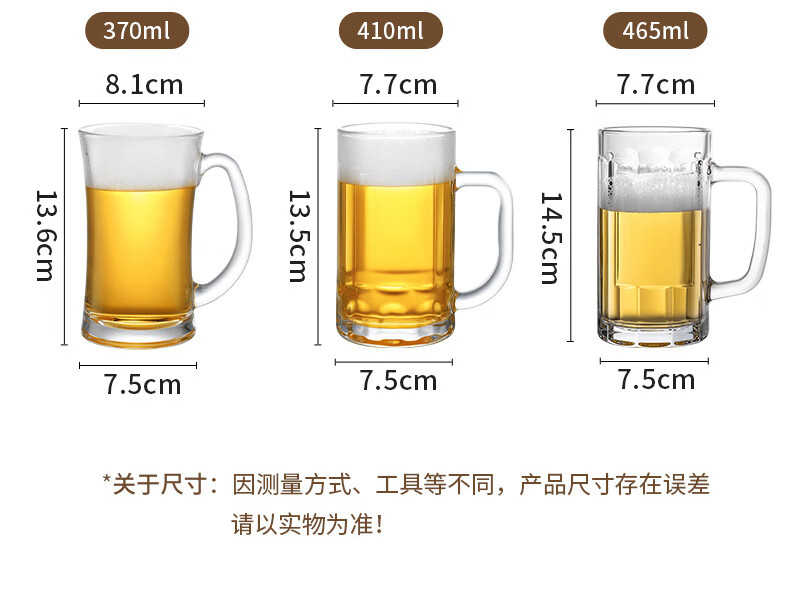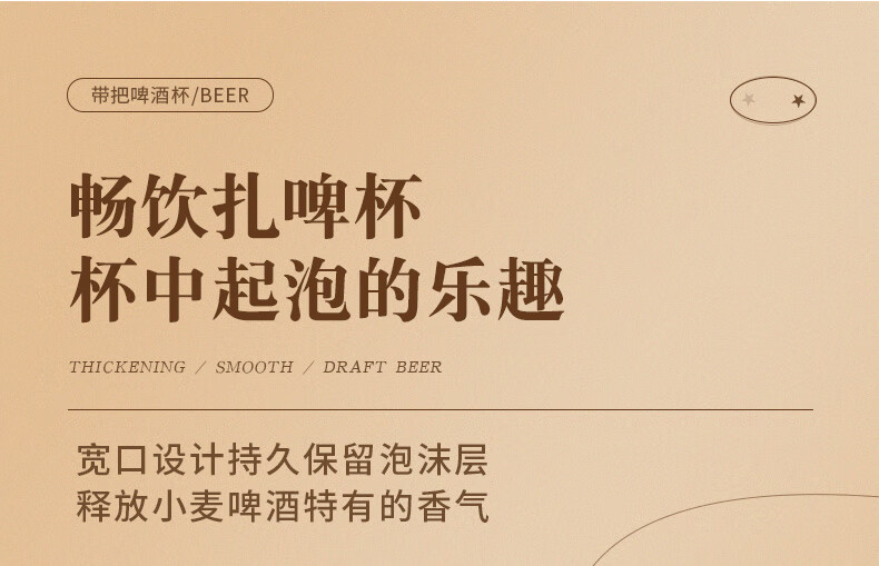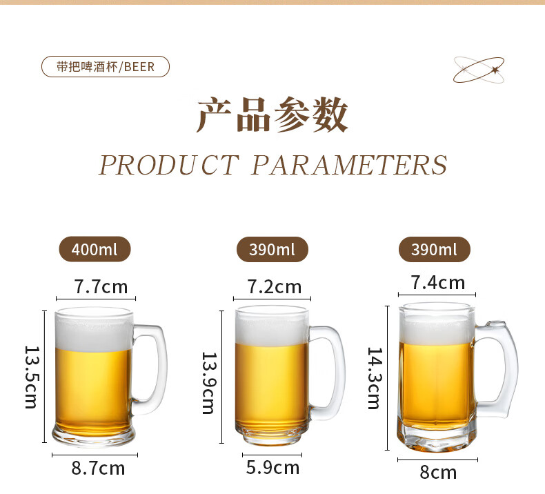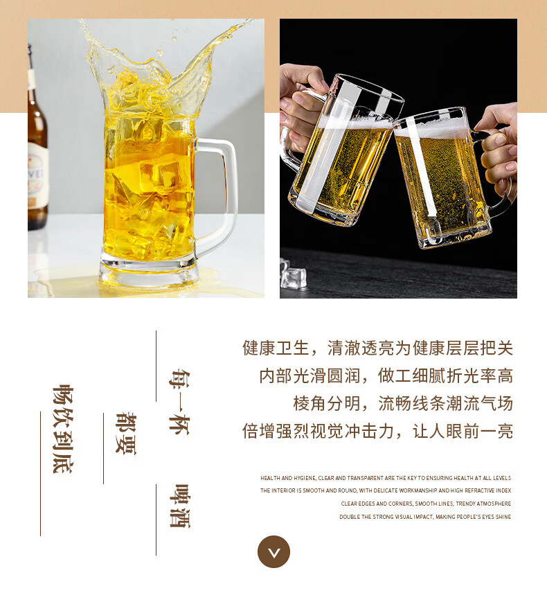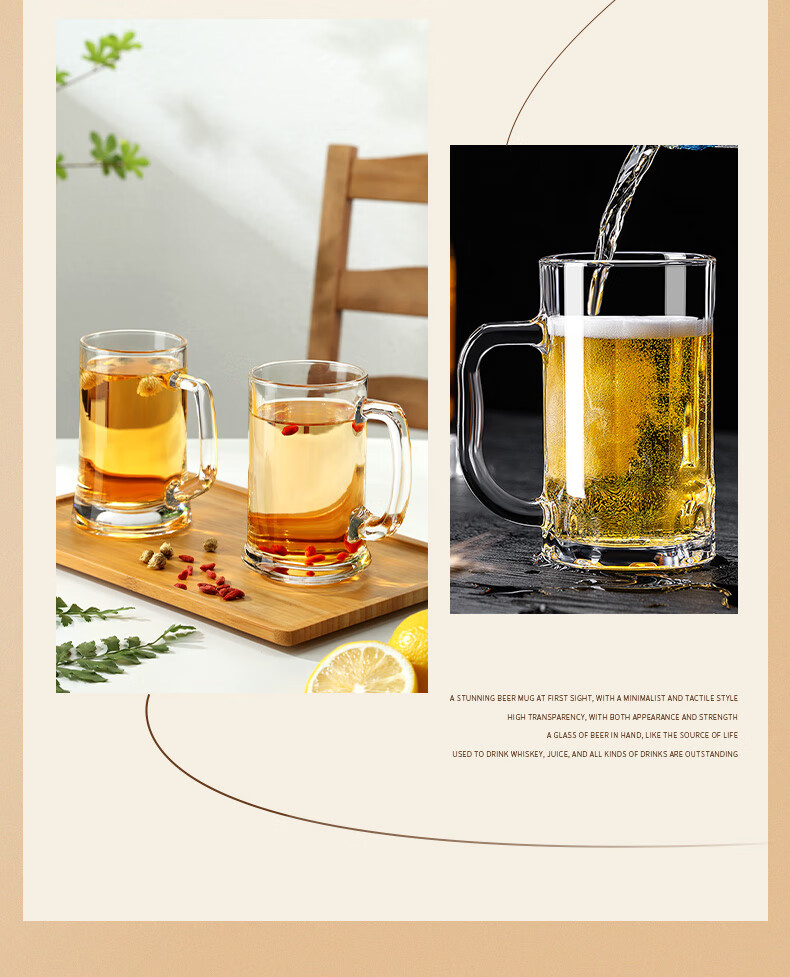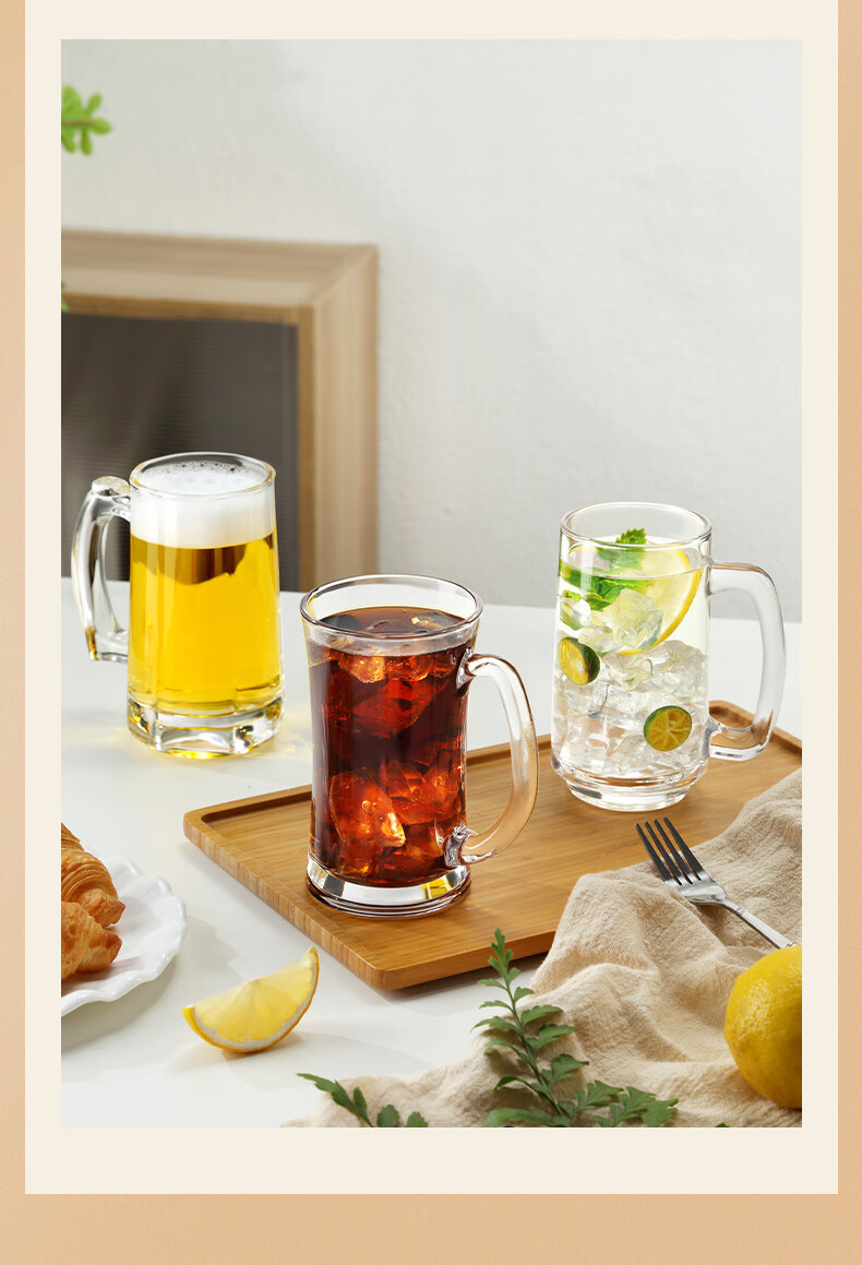 De Gust beer glass thickened with handle draft beer cup tea cup large capacity household milk cup juice cup water cup 410ml classic draft beer cup 1