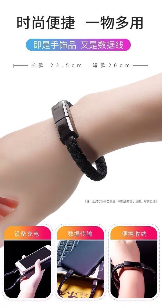 Ye Yufuyan bracelet flash charging fast charging Xiaomi data cable suitable for vivo couple Huawei OPPO Android phone black type-C interface-small zinc alloy