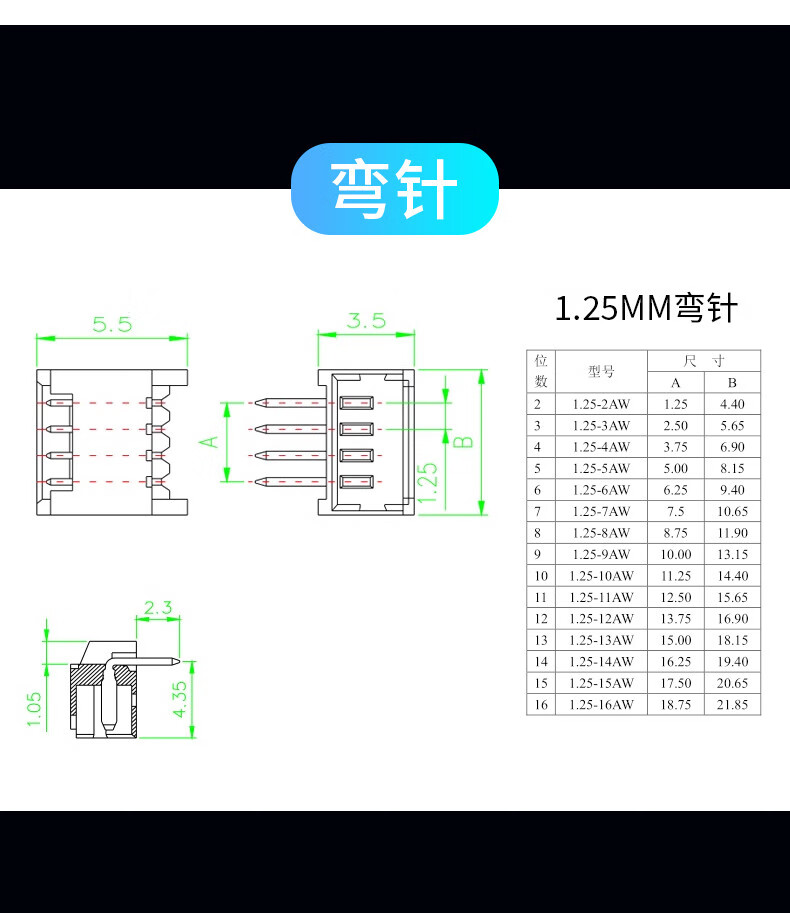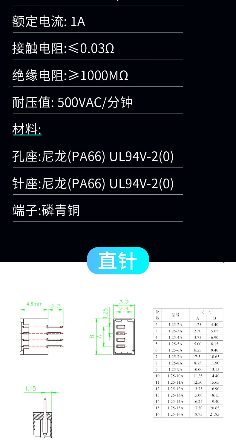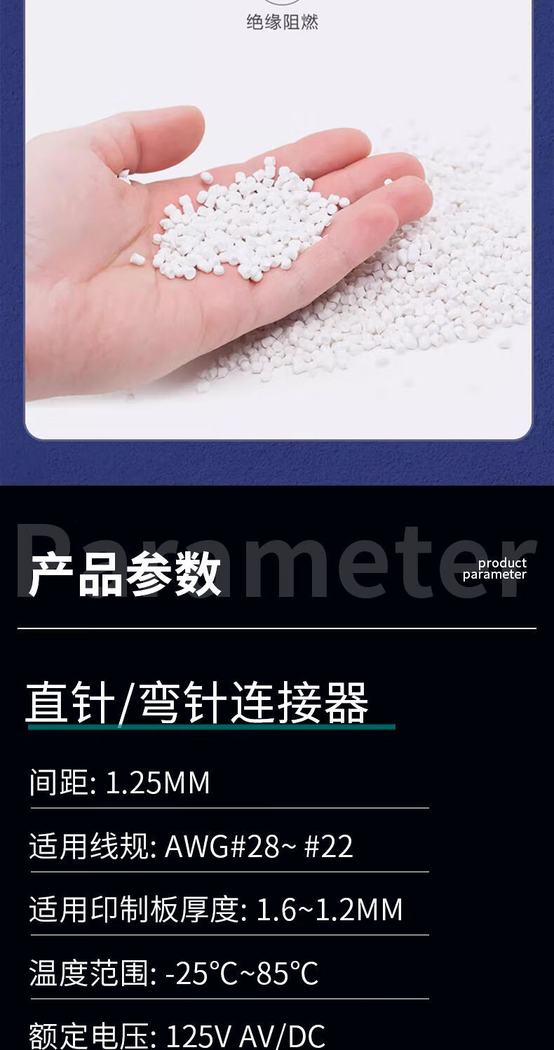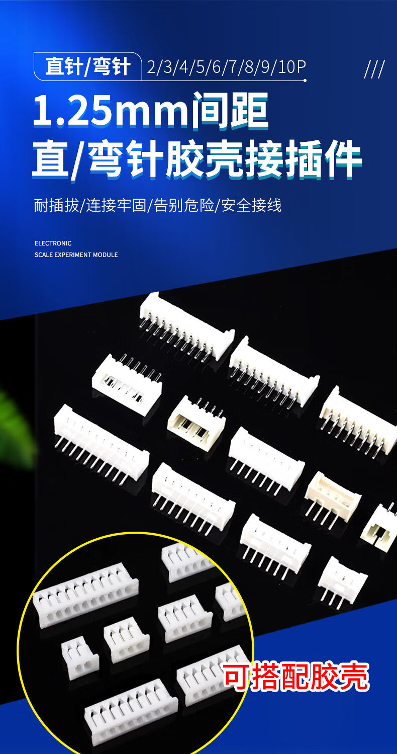 Zejie MX1.25mm pitch female socket straight curved pin socket 2/3/4/5/6/7/8/9/10P plug-in connector straight pin 2P (50 pieces)