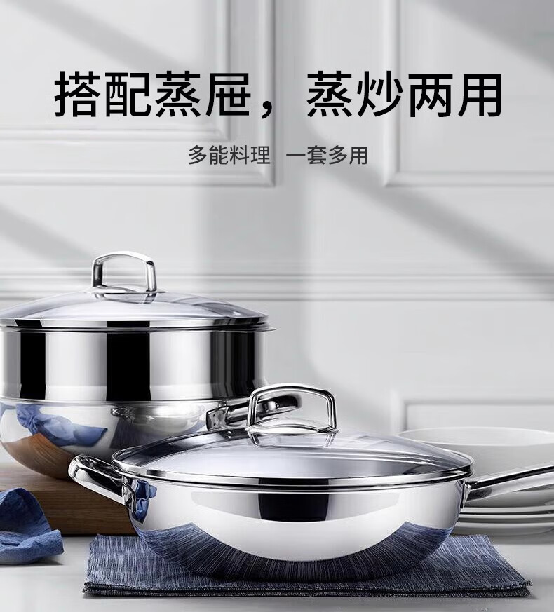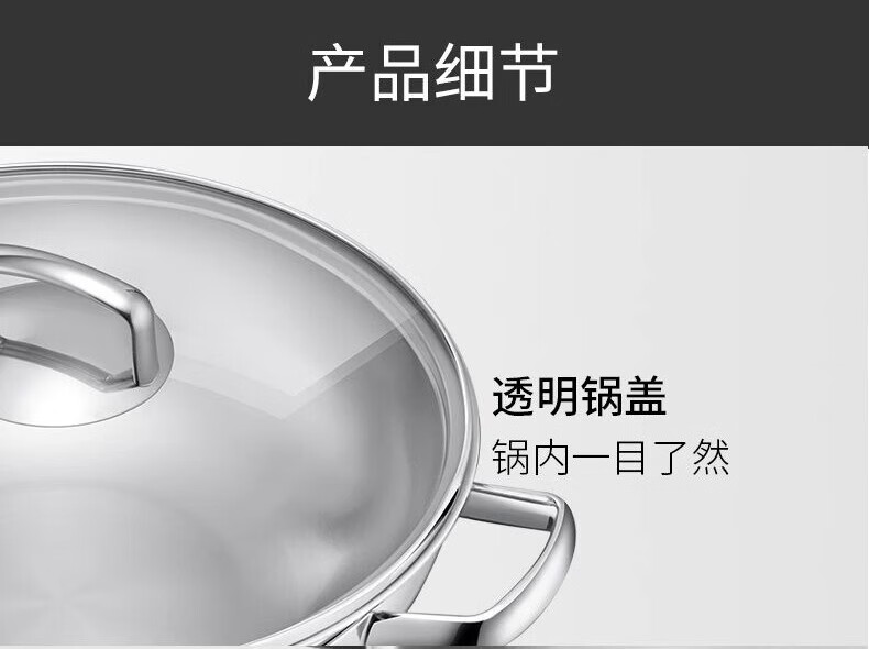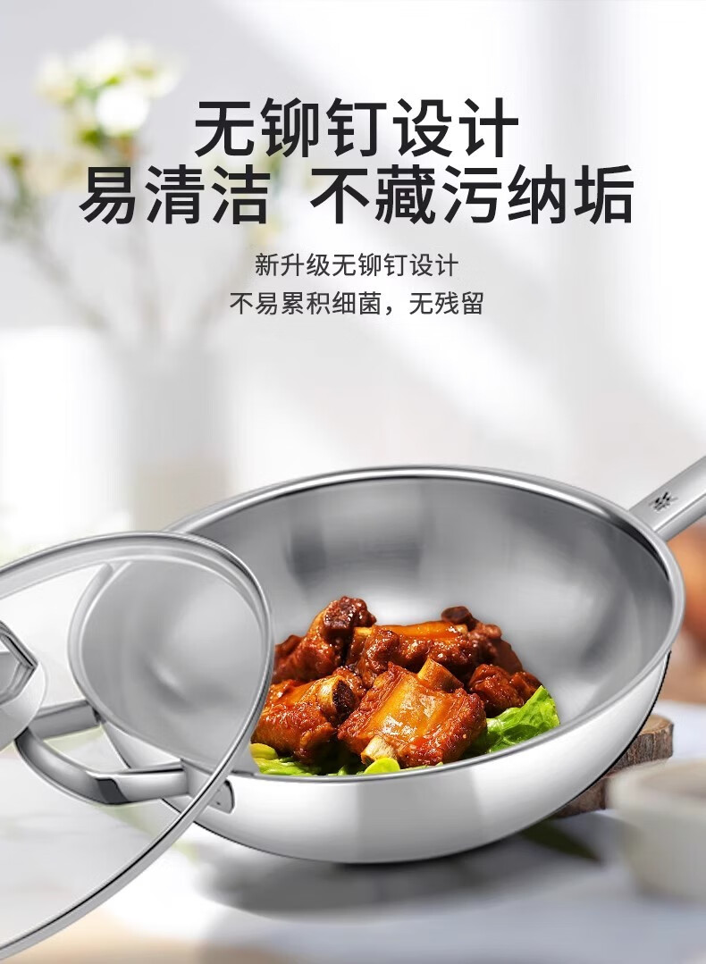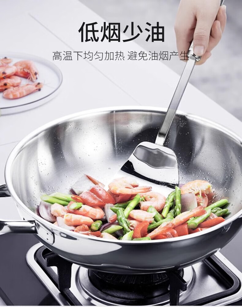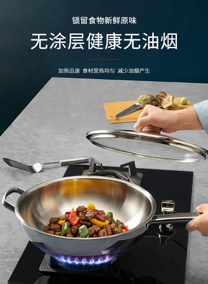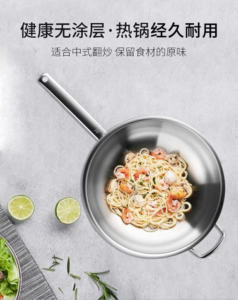 Futenbao German WMF Chinese wok stainless steel uncoated household induction cooker gas stove universal pot (30cm) Chinese wok comes with spatula