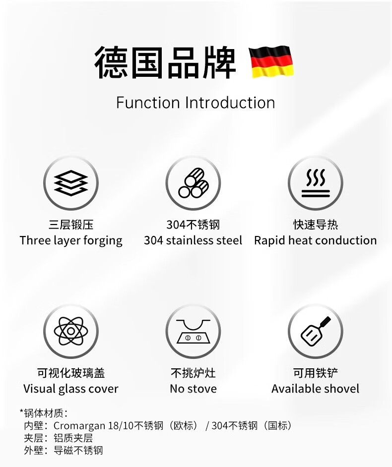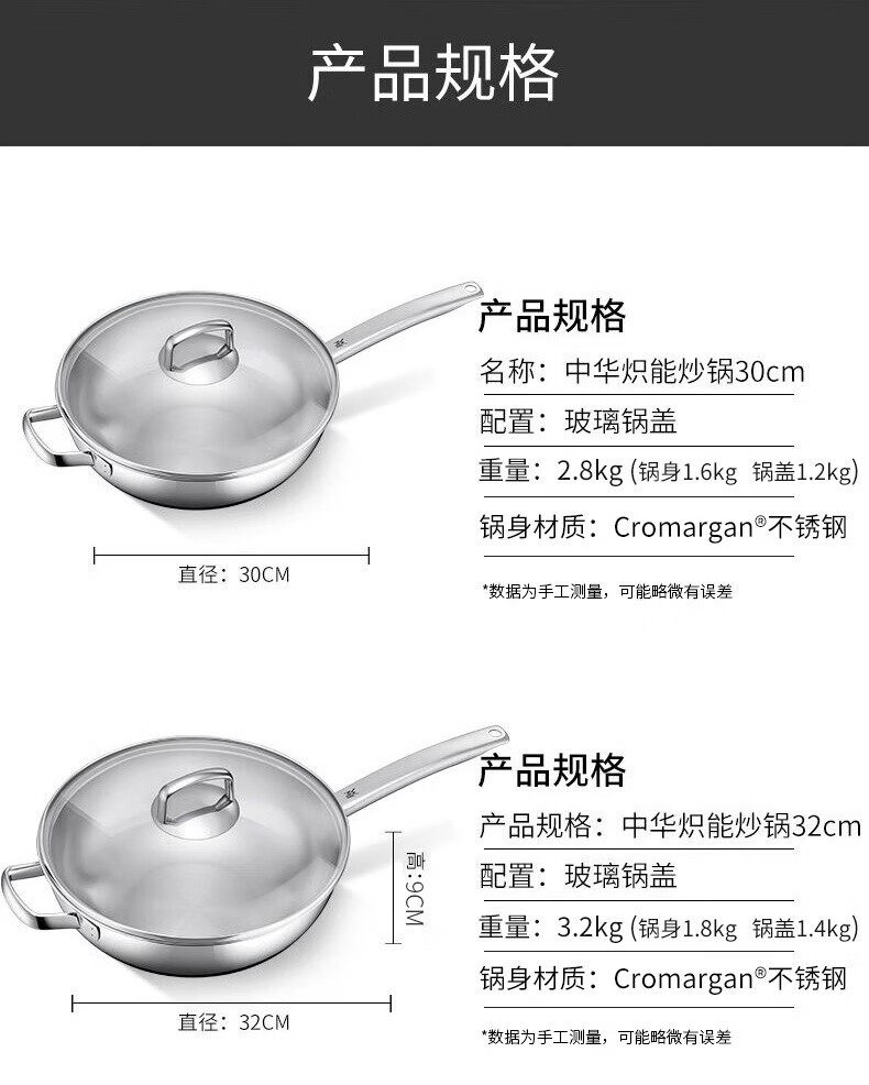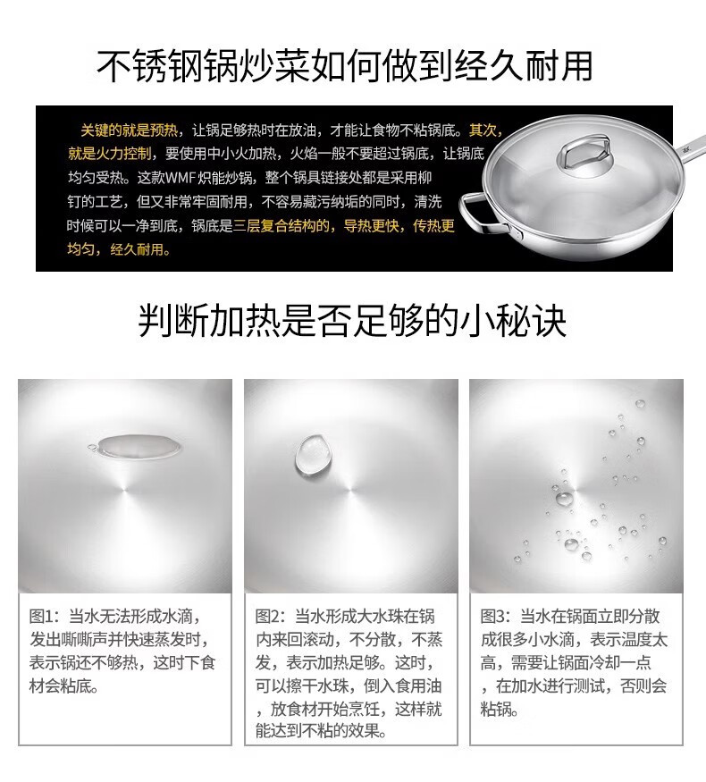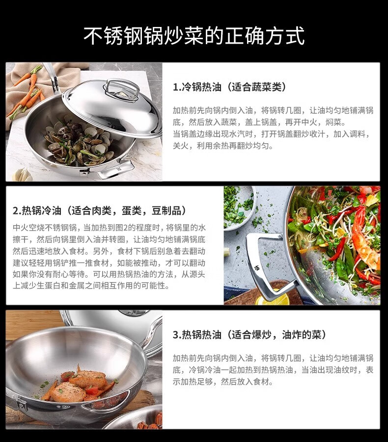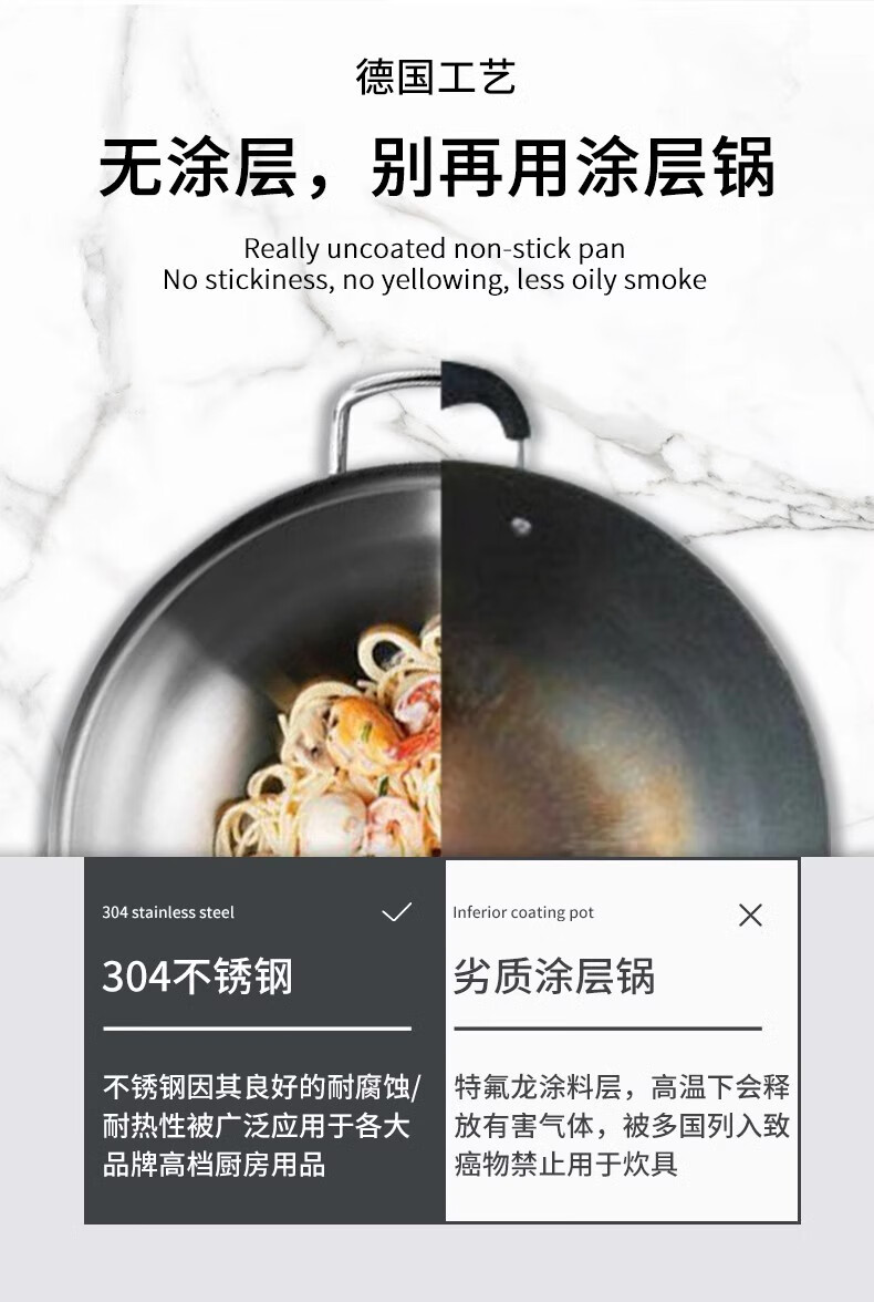 Futenbao German WMF Chinese wok stainless steel uncoated household induction cooker gas stove universal pot (30cm) Chinese wok comes with spatula