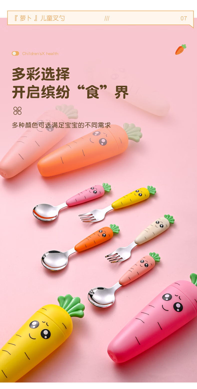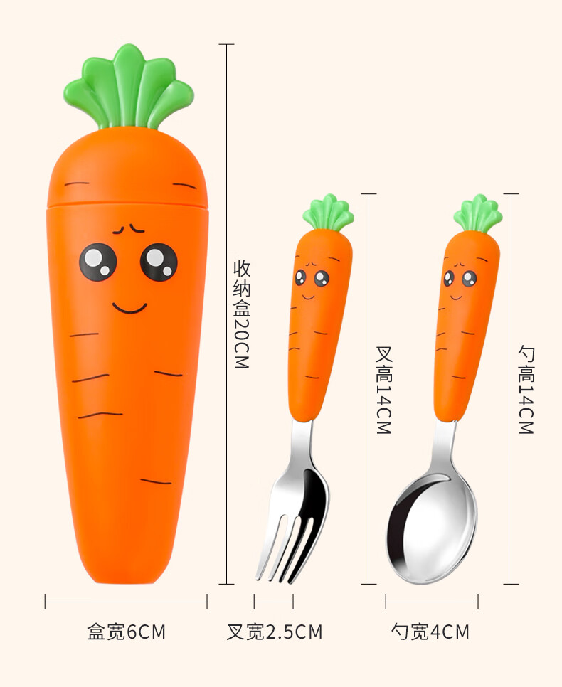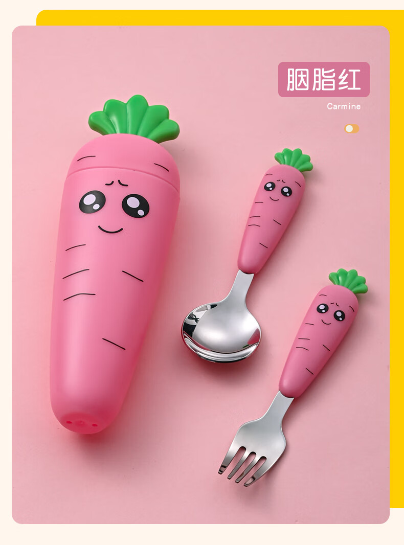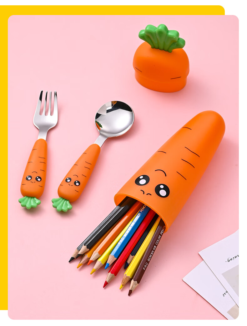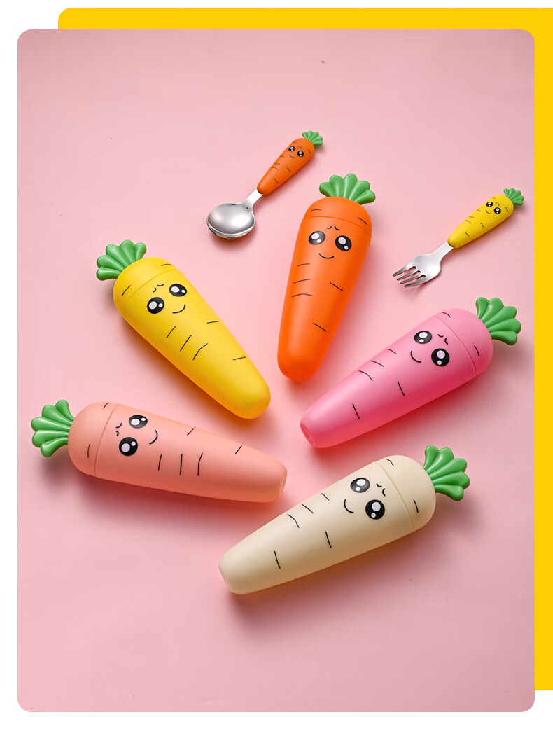 Children's fork children's spoon portable tableware cute carrot baby fork learning to eat orange 2 forks
