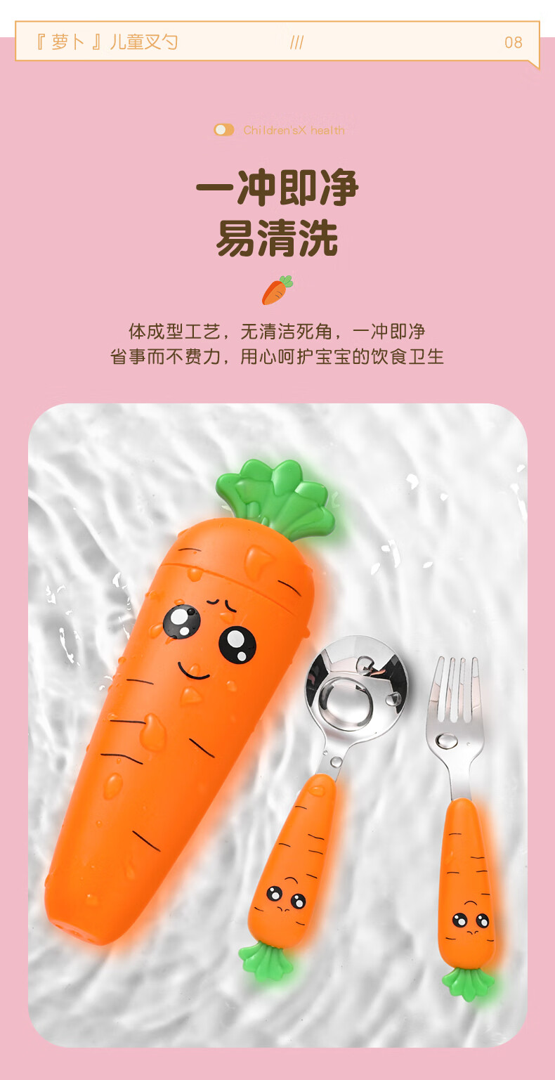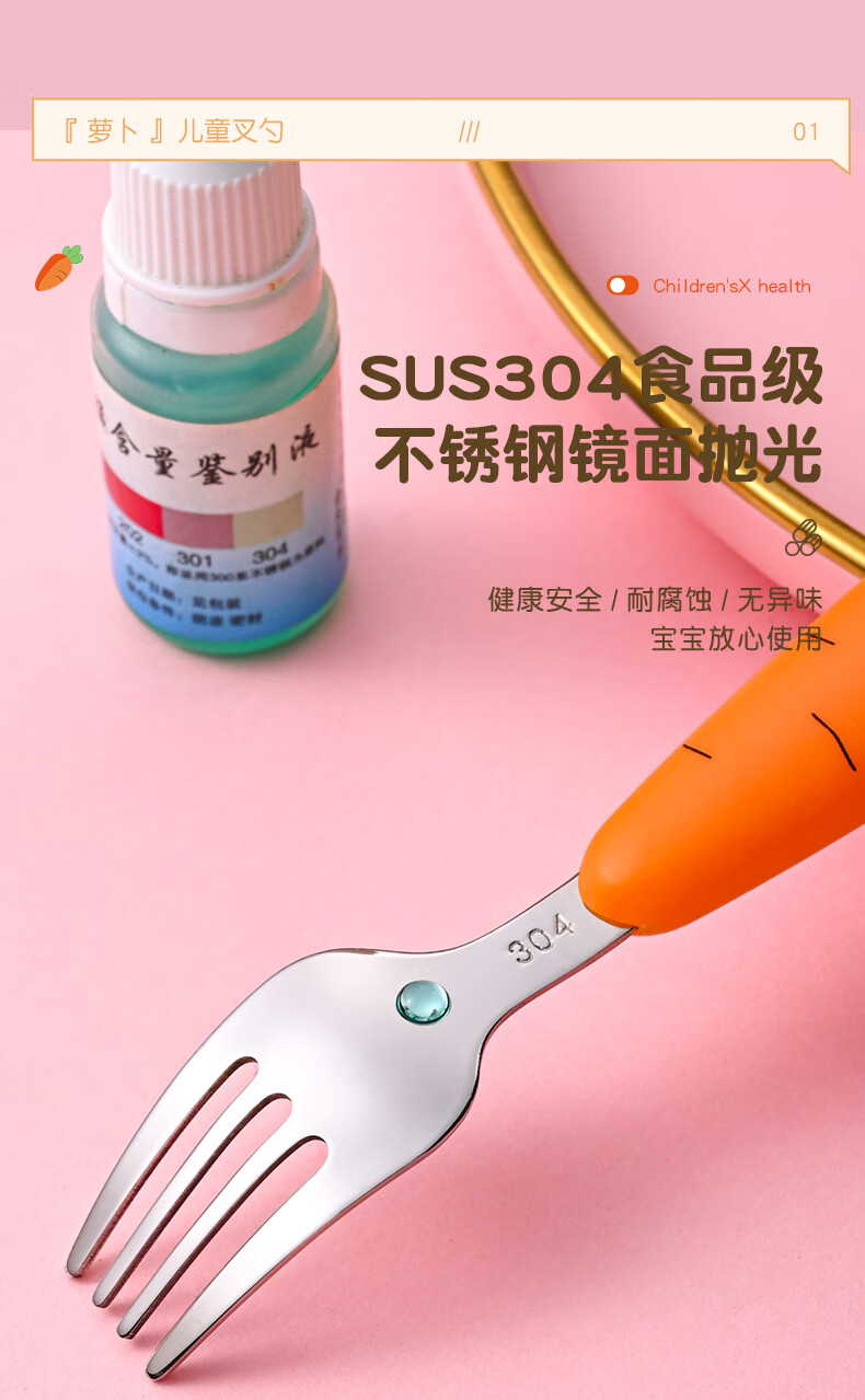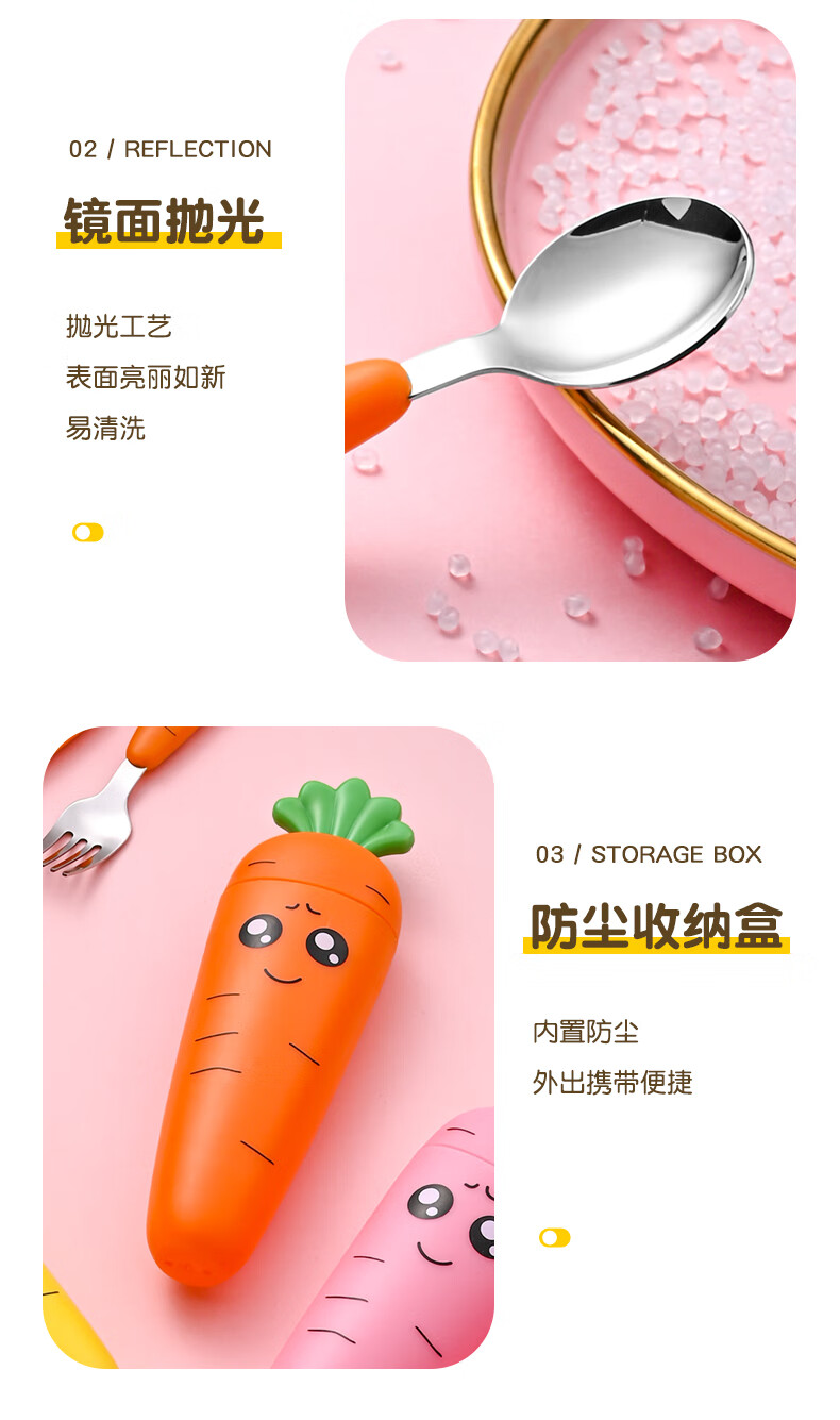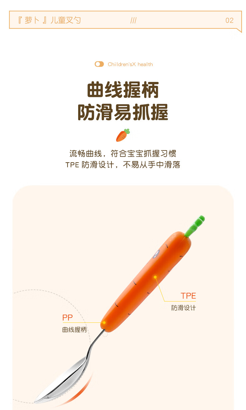 Children's fork children's spoon portable tableware cute carrot baby fork learning to eat orange 2 forks