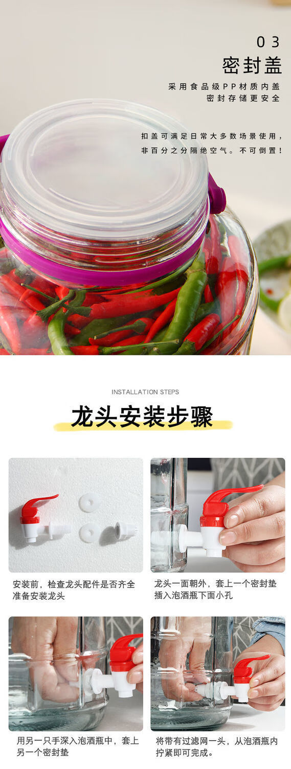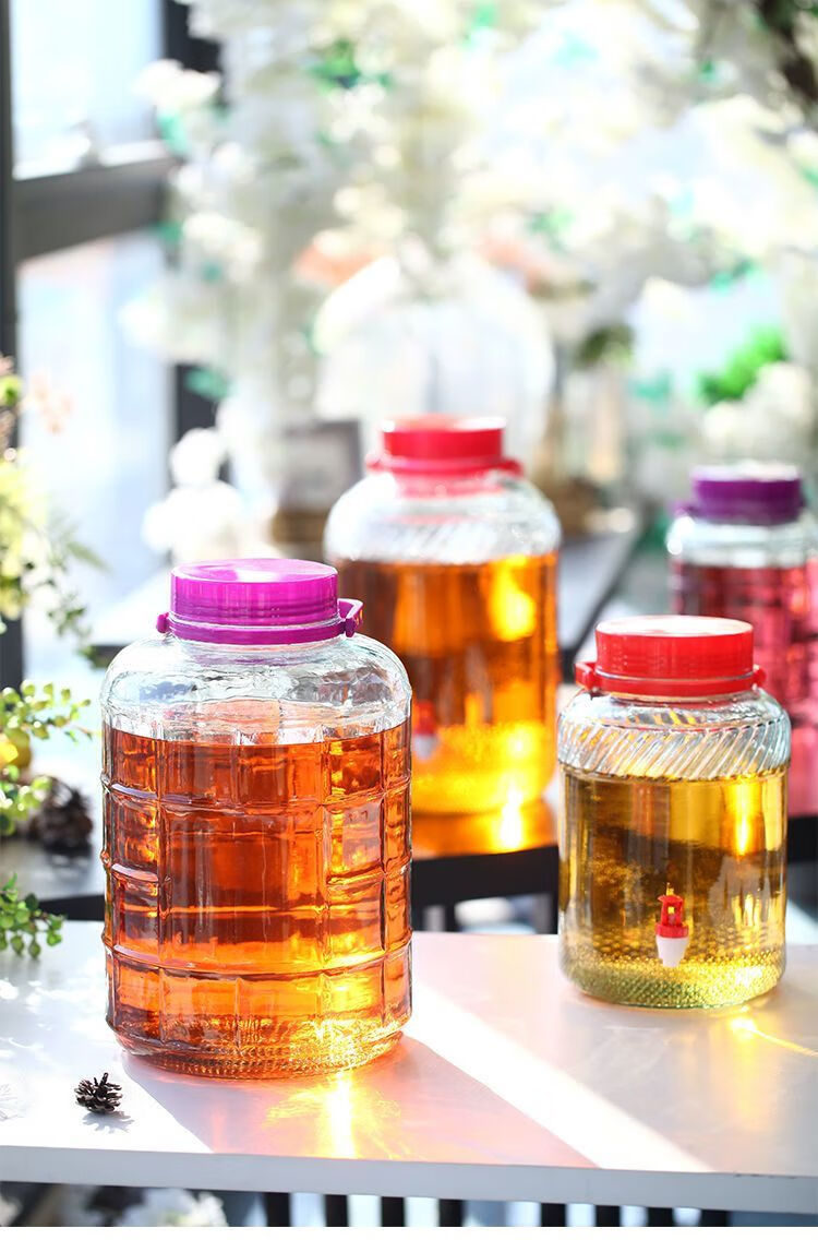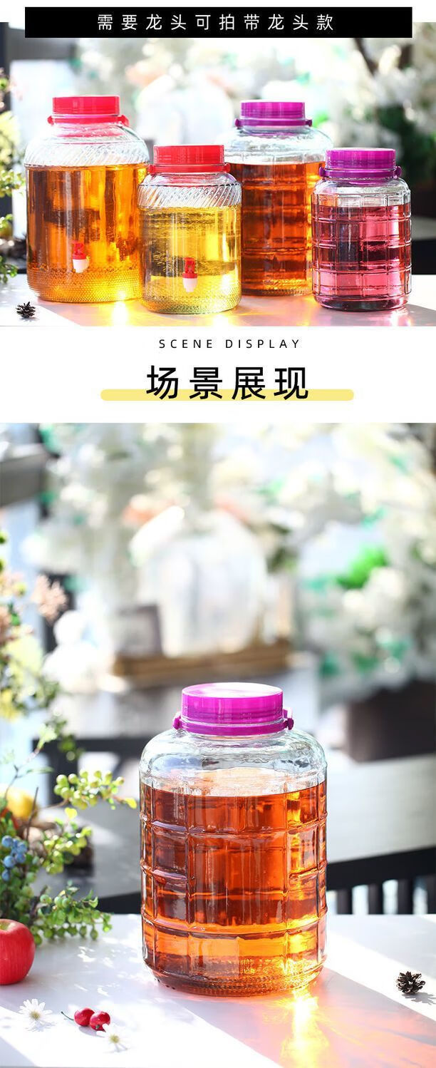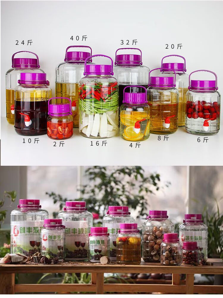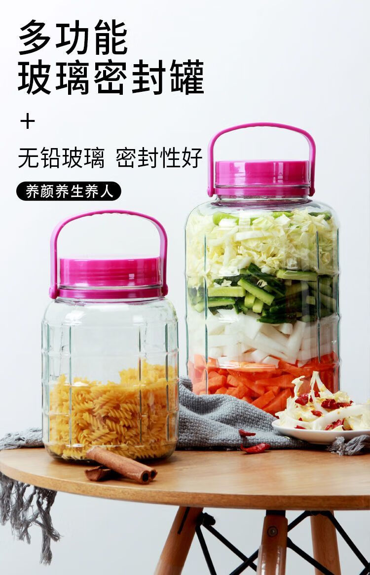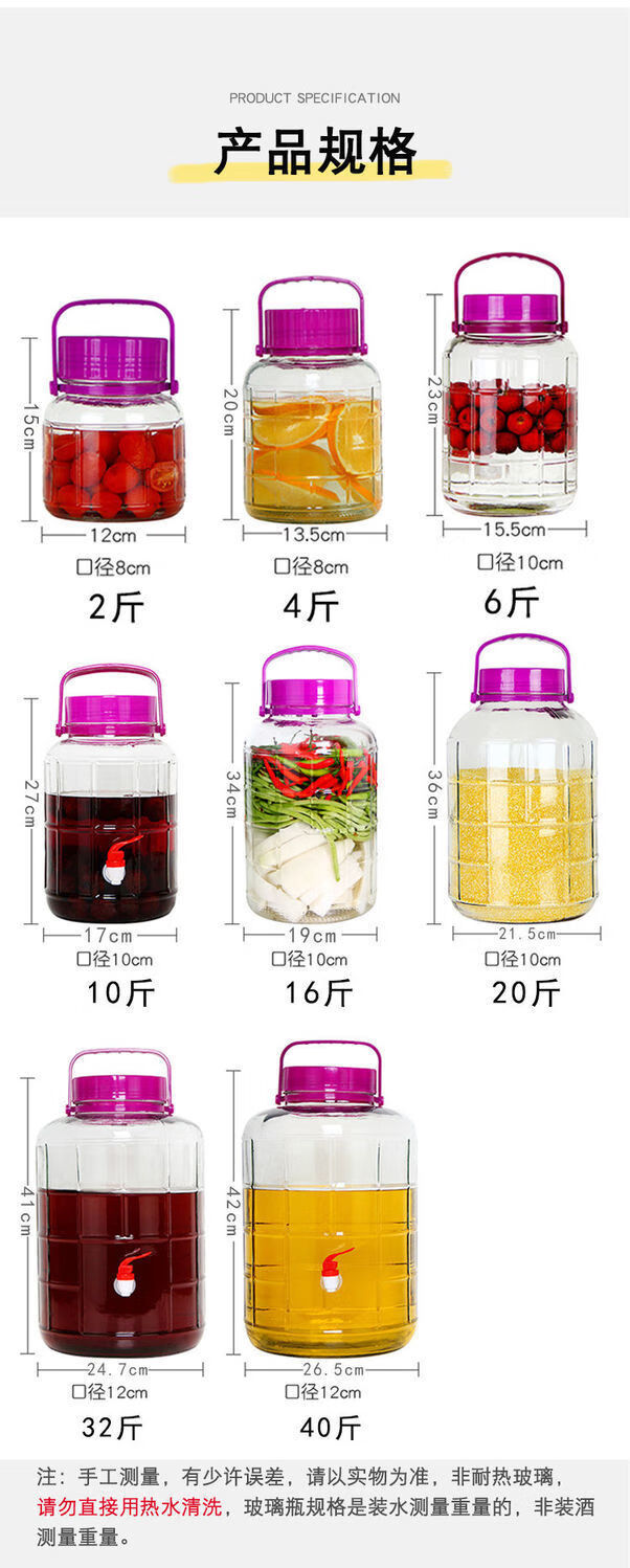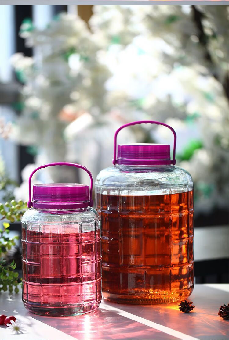 Spade special glass bottle for wine pickles, kimchi jar, daily glass sealed jar, home plum wine bottle, wine bottle, purple lid, checkered style, 0.4 catties