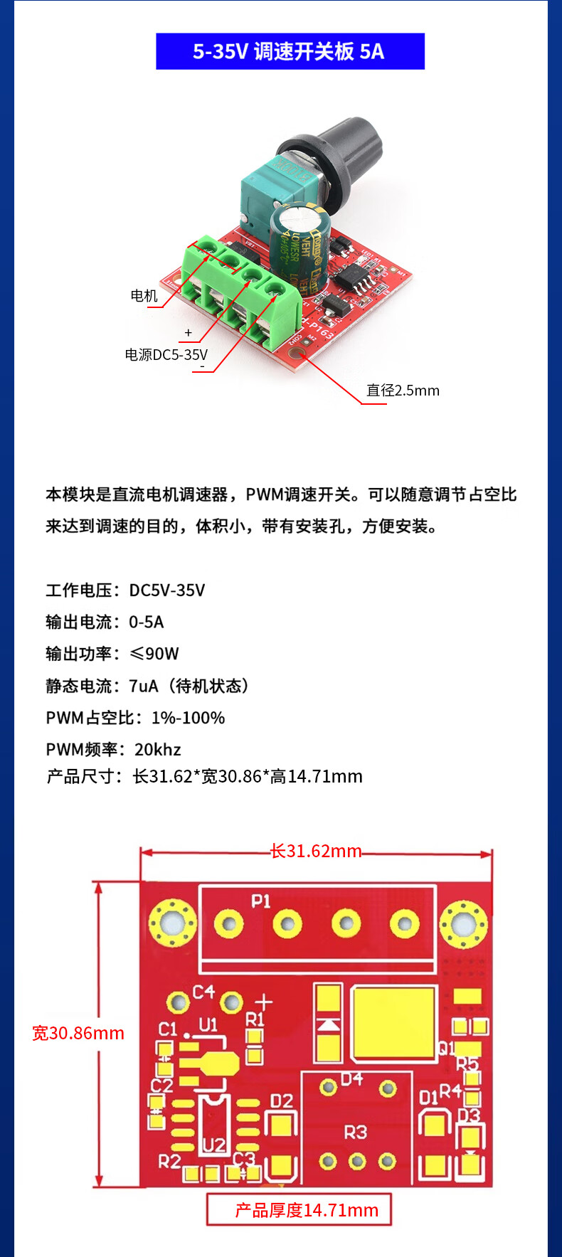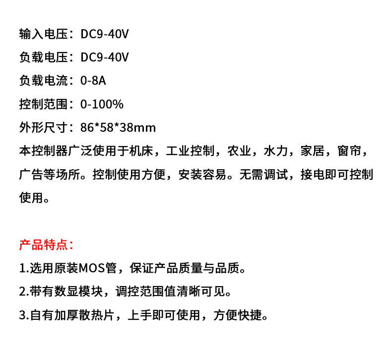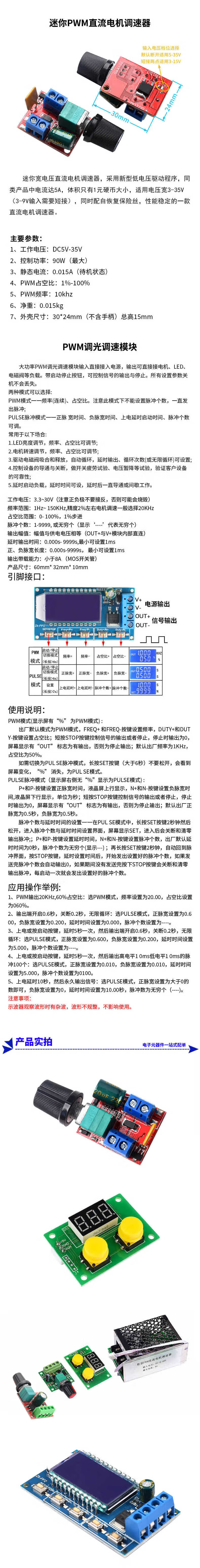 Zejie PWM DC motor speed regulator 5V-35 speed control switch LED dimming speed control module 4000W thyristor 0-8A PWM DC motor speed regulator 3-35V 5A (1 piece)