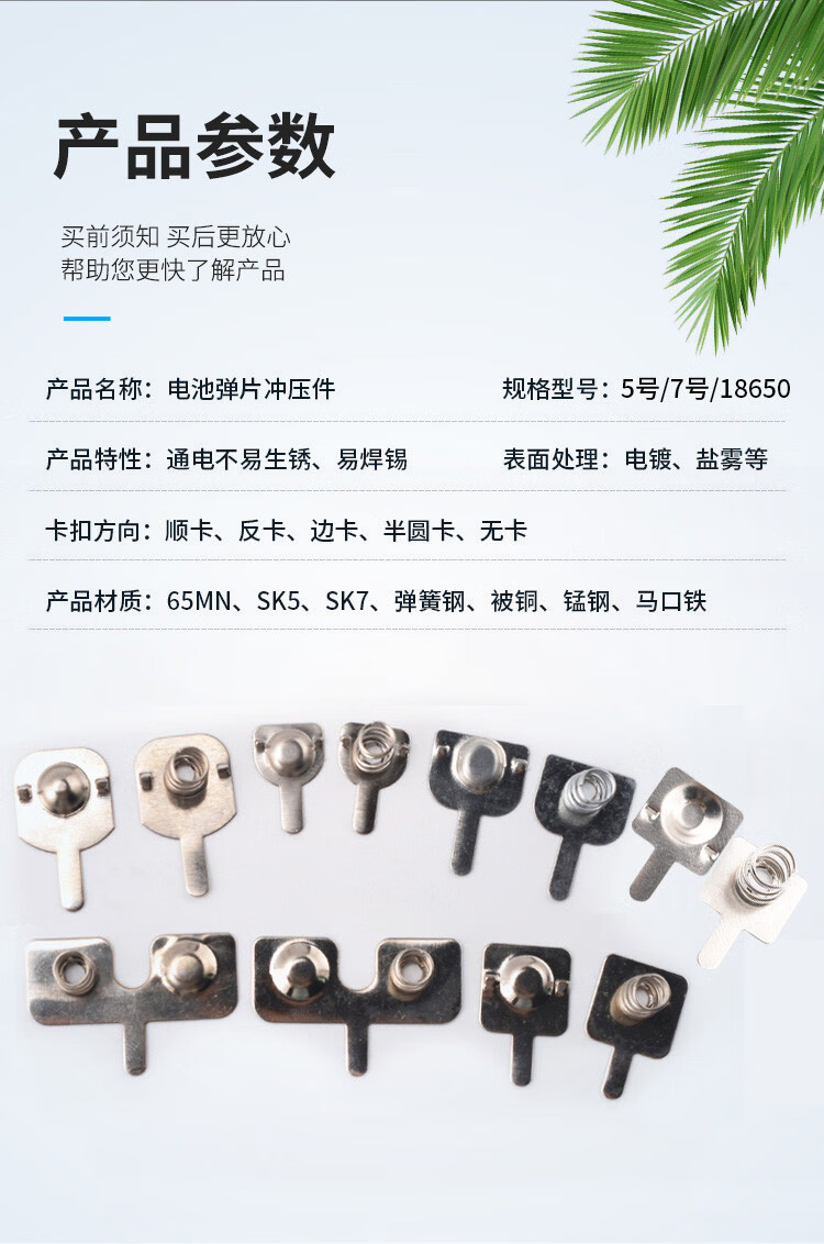 Zejie No. 5 No. 7 battery spring piece positive and negative contact piece spring piece 18650 battery box spring toy remote control No. 5 semicircular opening slot upward 13*10.5mm (10 sets)