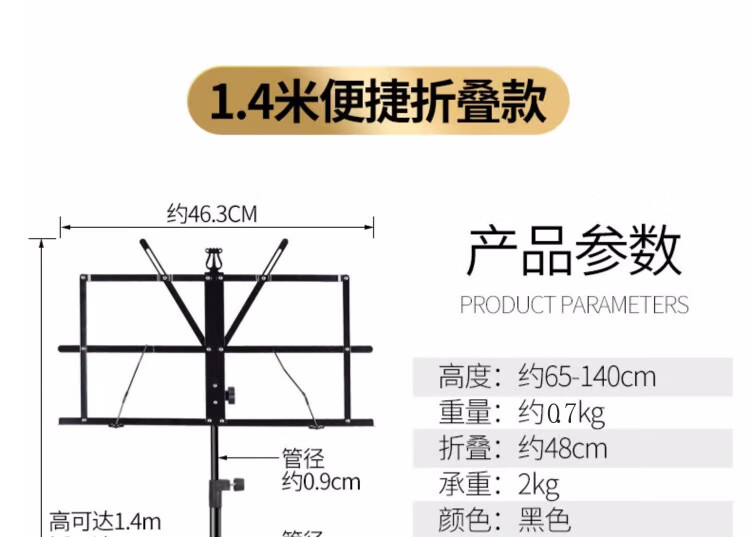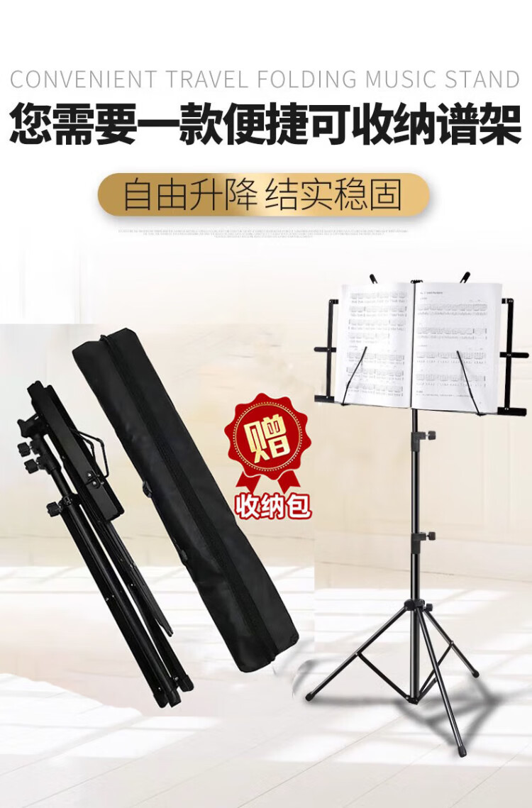 Yuan ethnic group folding music stand, portable music stand, ultra-light trumpet, liftable and retractable stand, home music score bold guitar, portable folding music stand, 0.65-1.4m adjustment, guzheng, erhu, violin universal stand, free storage bag