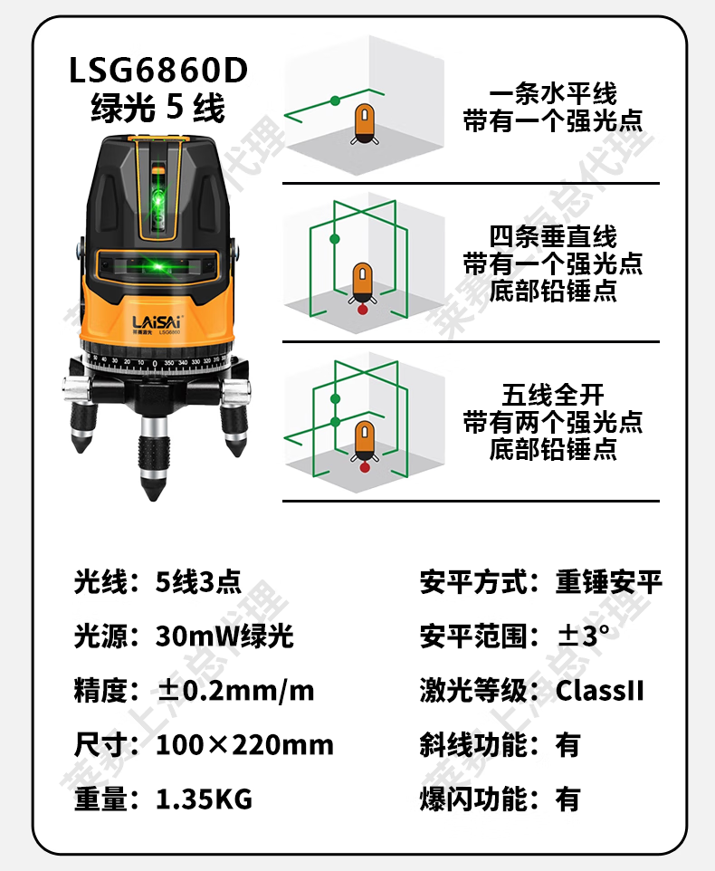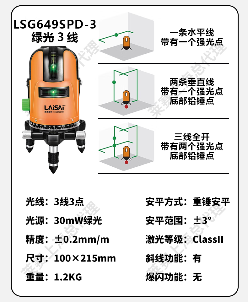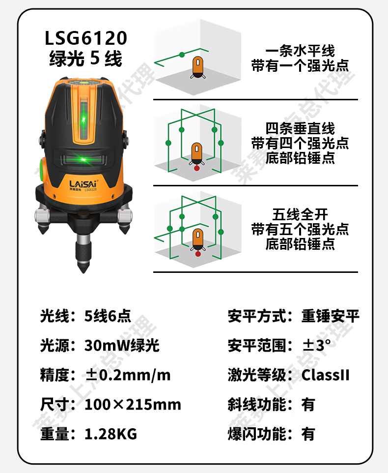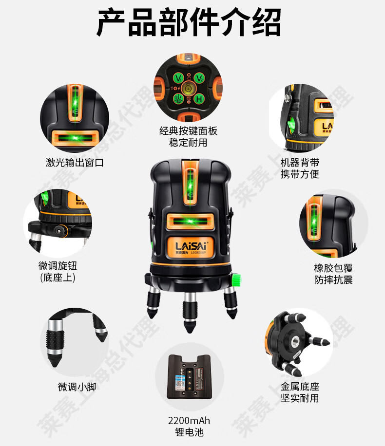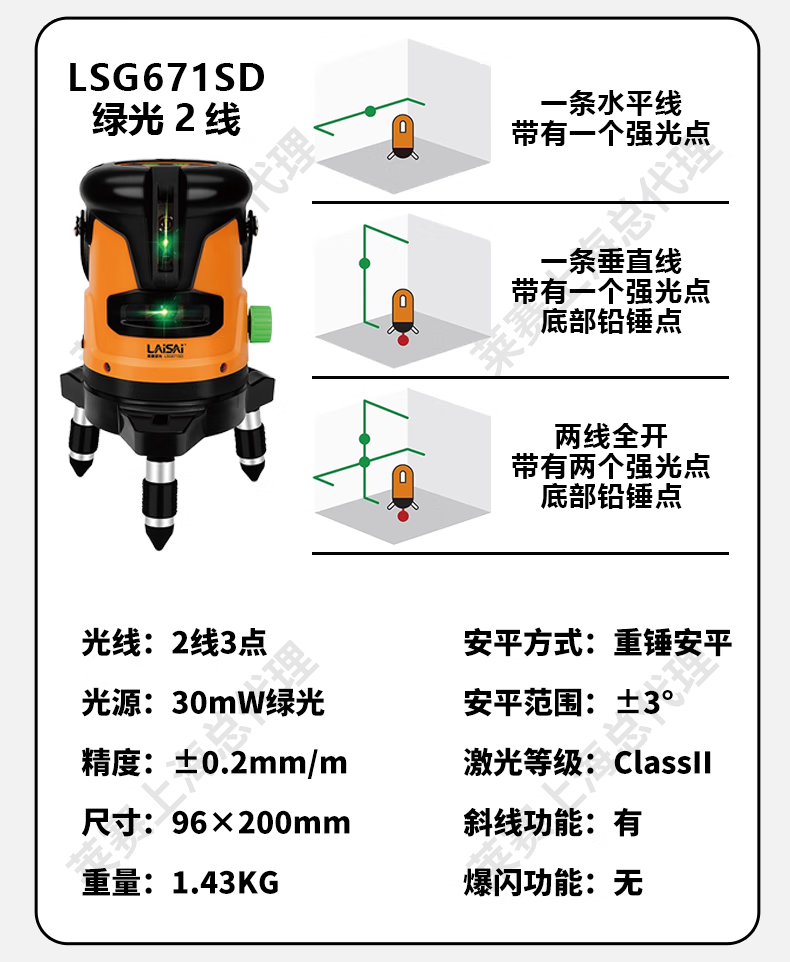LAISAI laser level green light 5-line high-precision strong light thin line 2-line infrared automatic line bidding line meter 2 lines 3 points-green light 671 standard