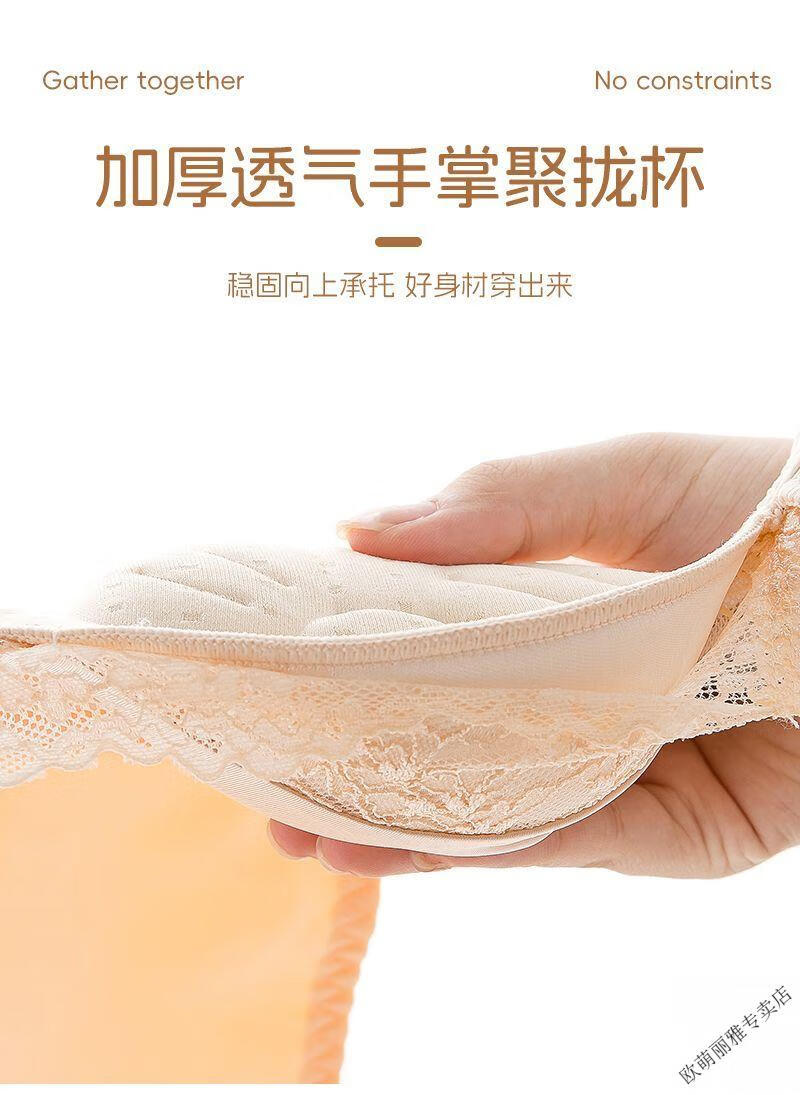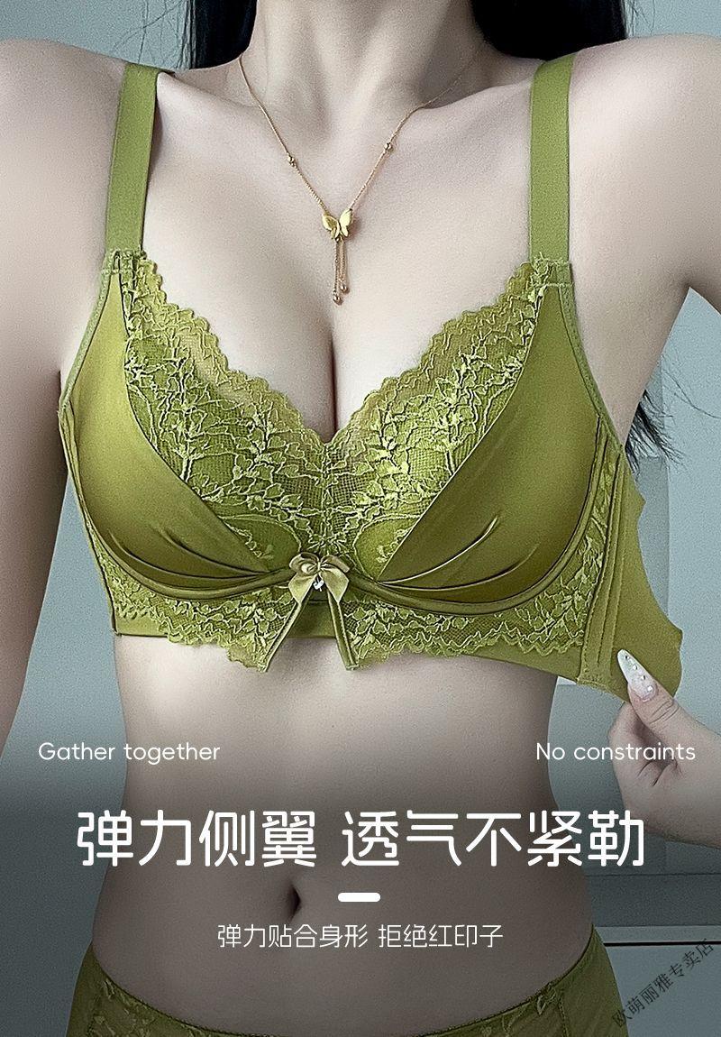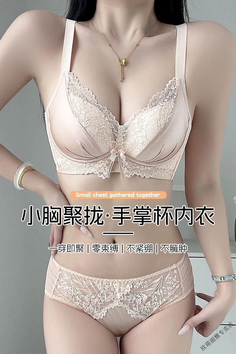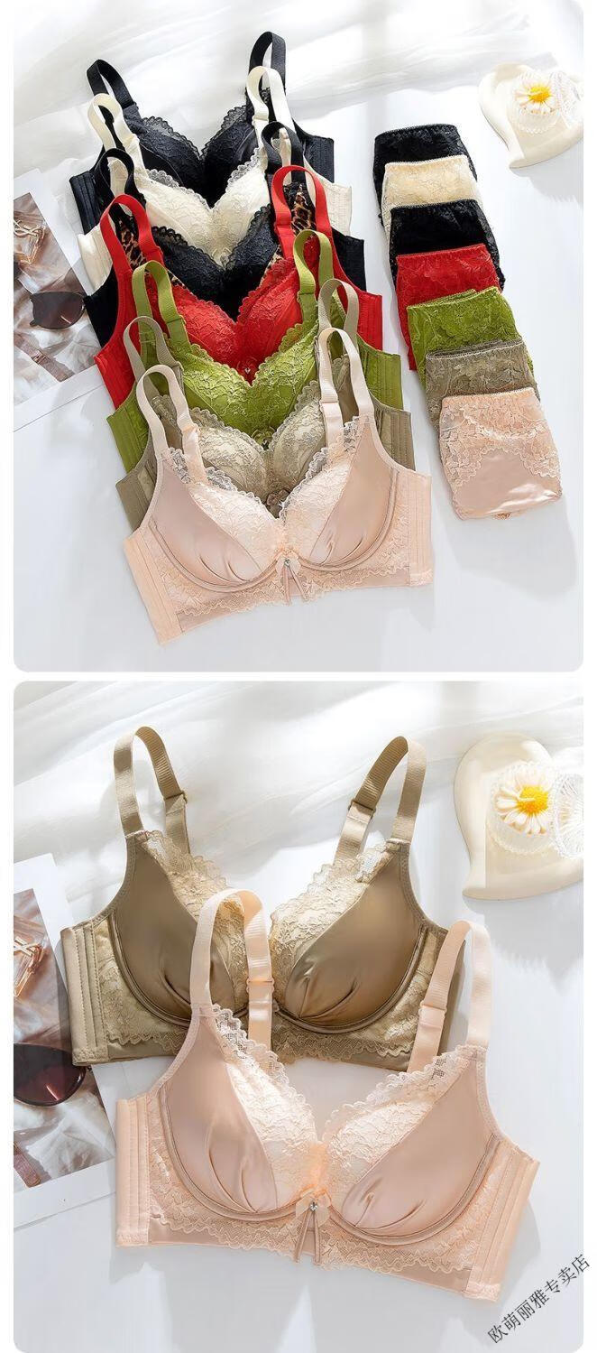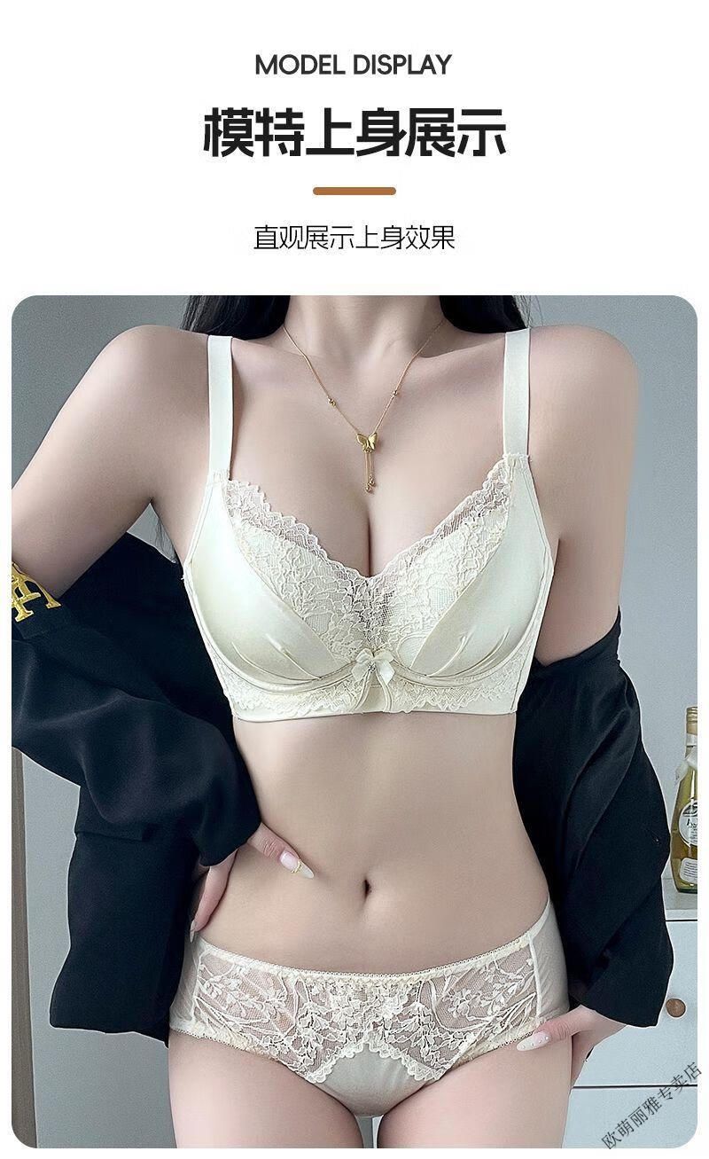 MiiOW push-up underwear set for women with small breasts to look bigger, no rims, 1cm extra thick bra, adjustable sexy lace, black suit 85A 38B