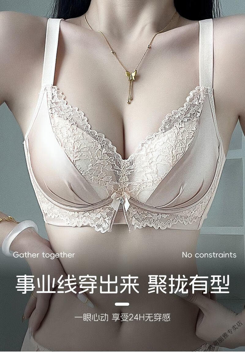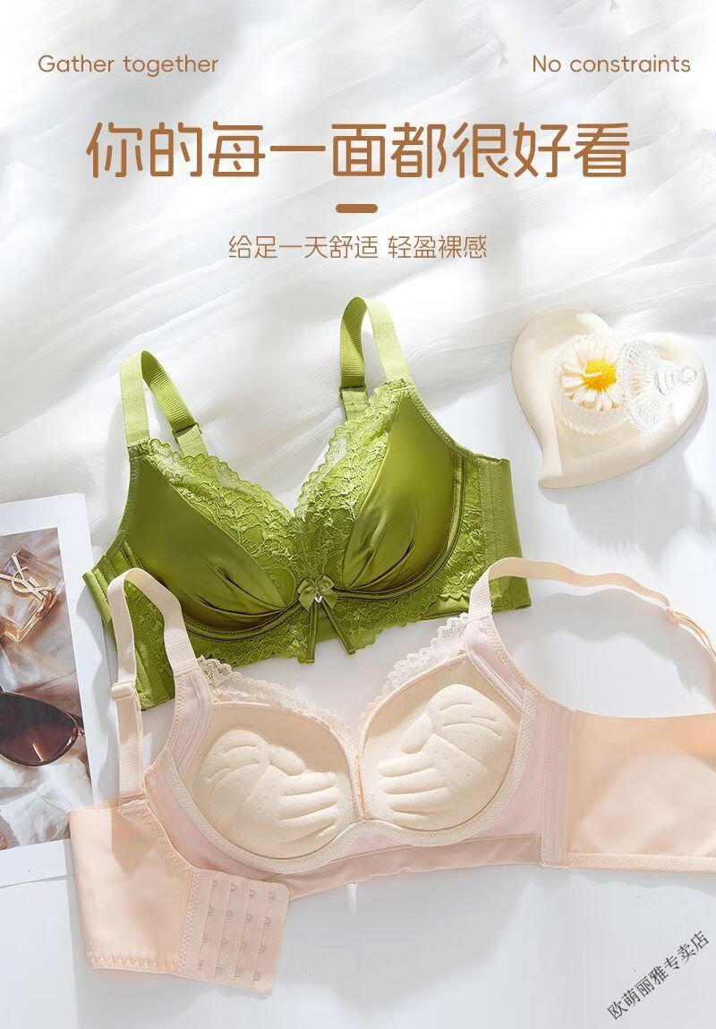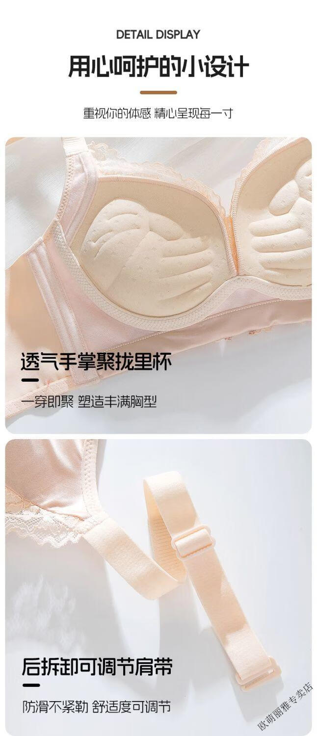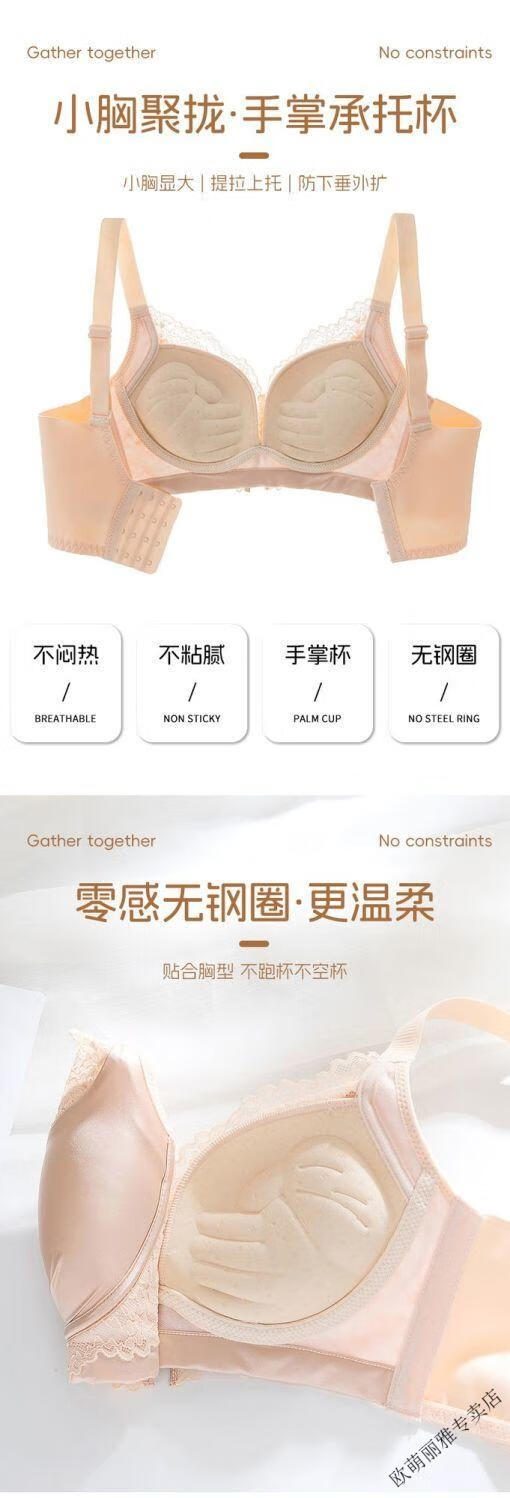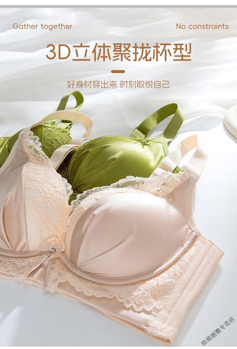 MiiOW push-up underwear set for women with small breasts to look bigger, no rims, 1cm extra thick bra, adjustable sexy lace, black suit 85A 38B
