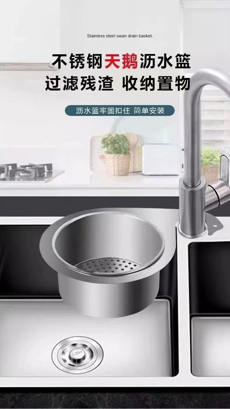 Spade kitchen sink special swan drain basket stainless steel hanging drain rack wet and dry separation hook garbage basket stainless steel drain basket active 3 56 7.78cm small 3.5g floor drain net - 1