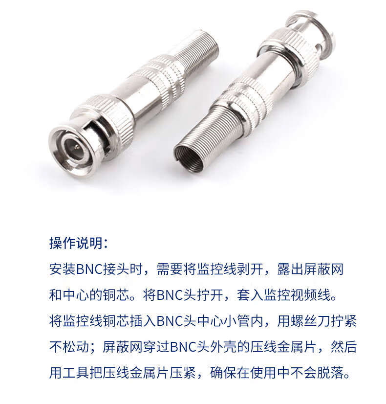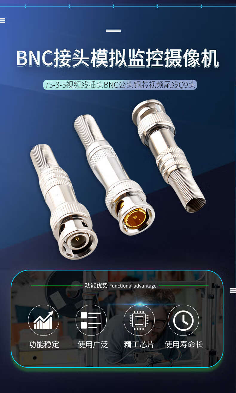 Zejie BNC connector analog surveillance camera 75-3-5 video cable plug bnc male copper core video tail cable Q9 head BNC video cable connector solderless male nickel plated (2 pieces)