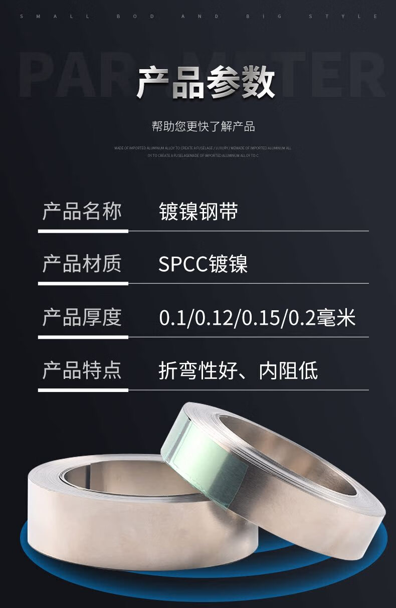 Zejie 10 meters nickel-plated steel strip 18650 lithium battery welding connection piece refined 21700 spot welding nickel strip 0.1mm thick 0.1x10-10 meters