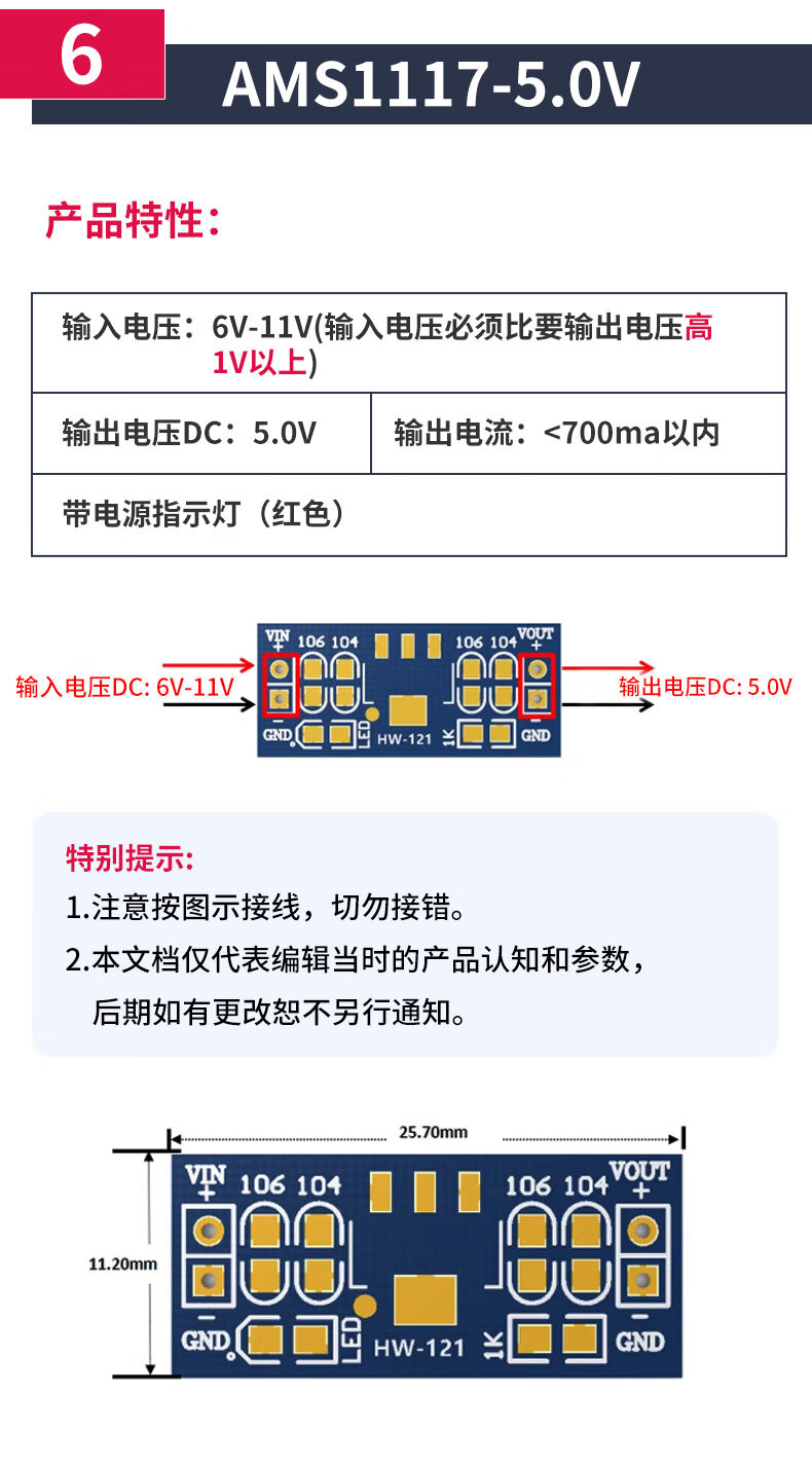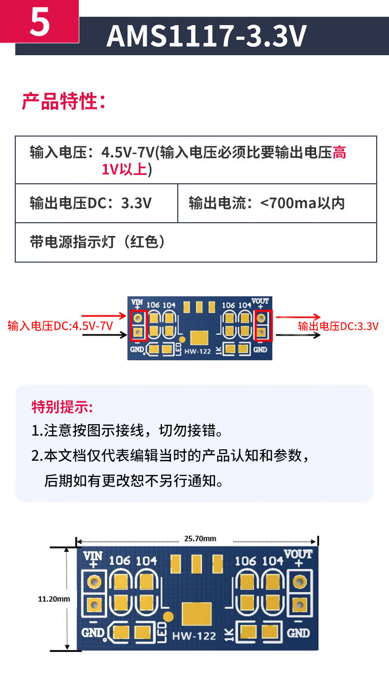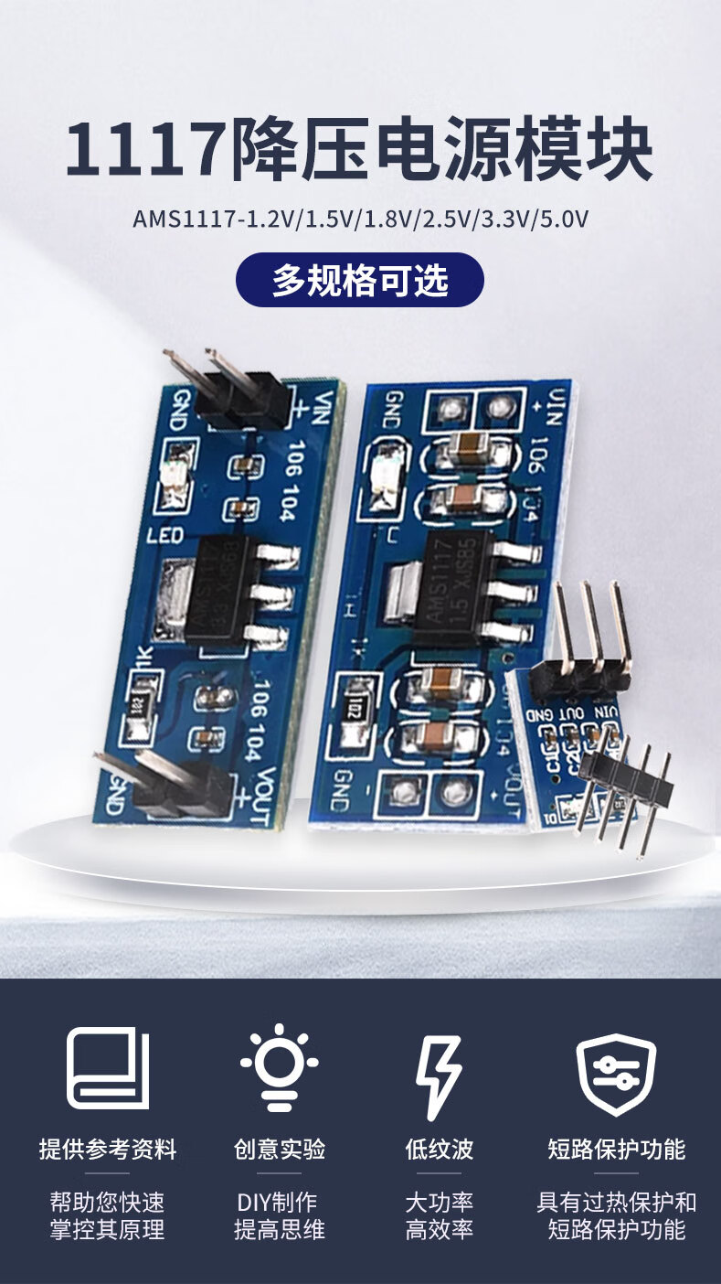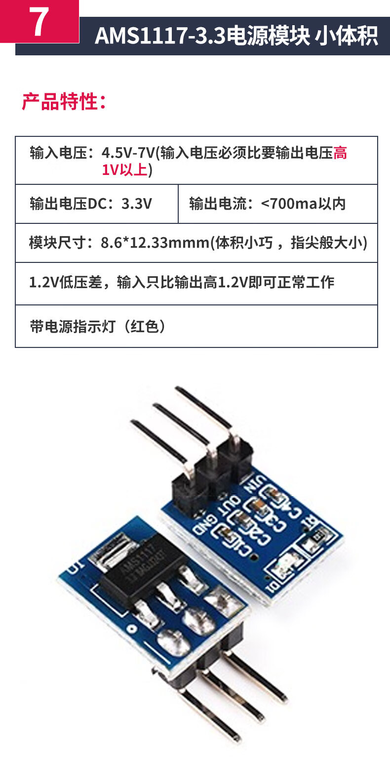 Zejie AMS1117 step-down module power board pin voltage stabilization 3.3V 5.0V 1.2V 1.8V 1.5V 5v soldered pin header (5 pieces)
