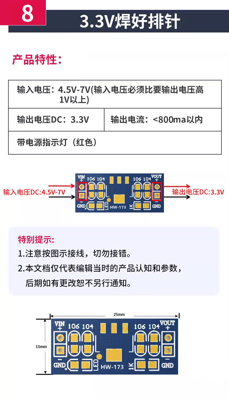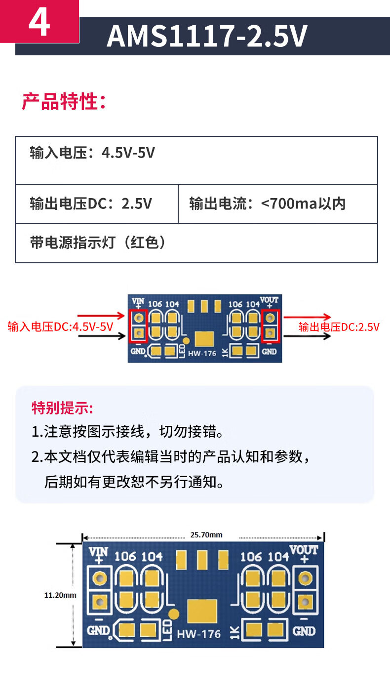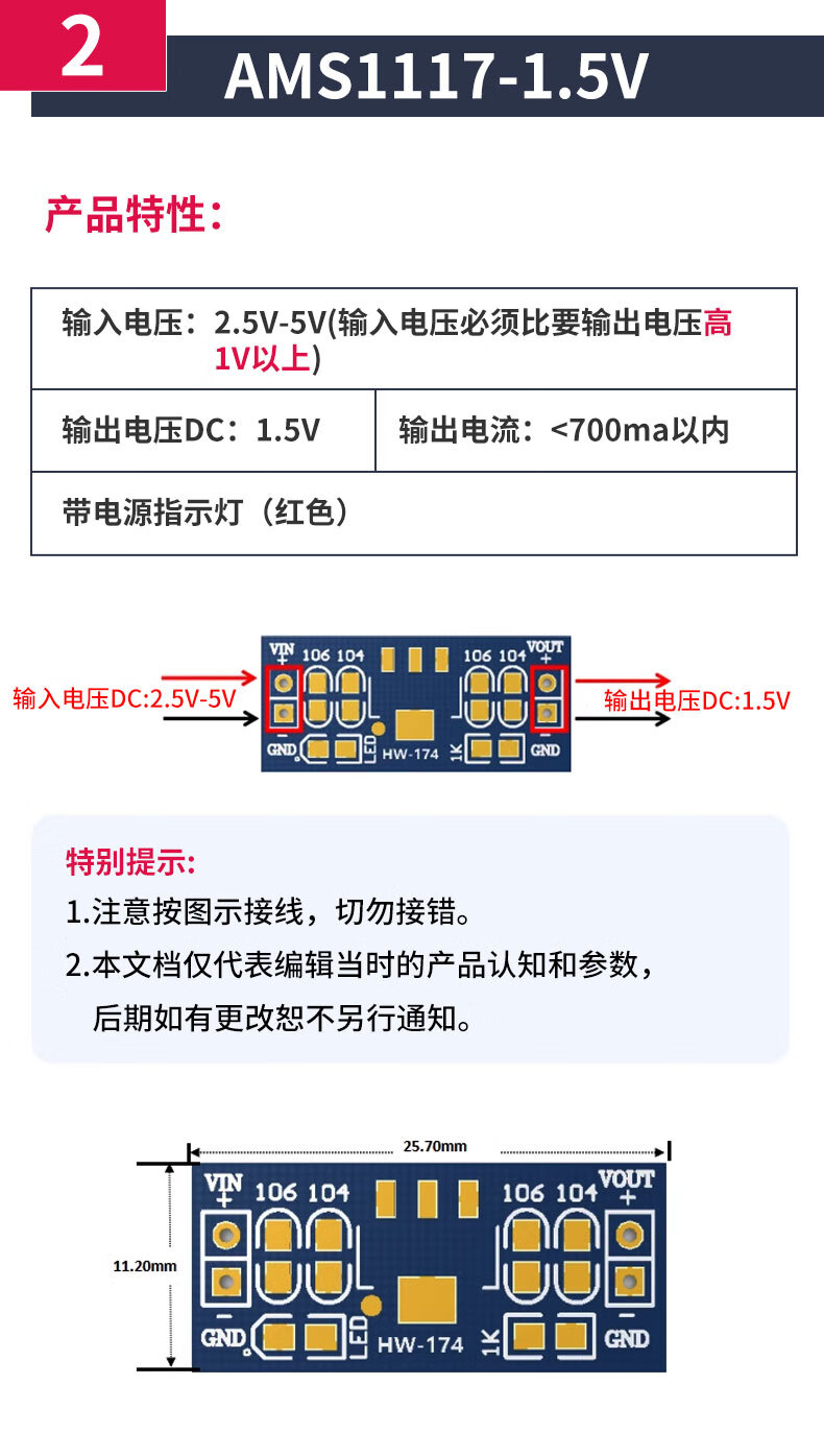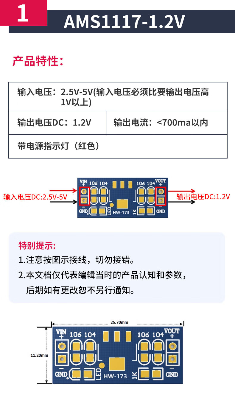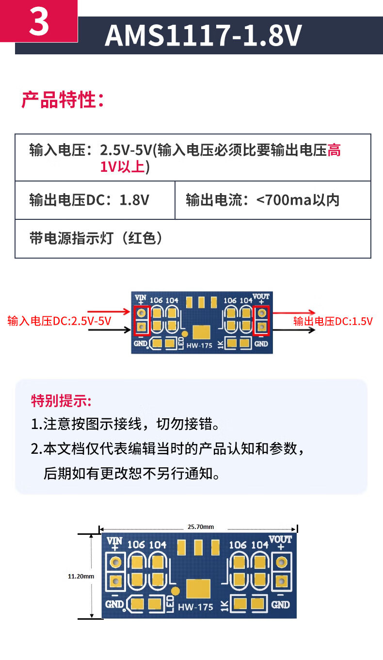 Zejie AMS1117 step-down module power board pin voltage stabilization 3.3V 5.0V 1.2V 1.8V 1.5V 5v soldered pin header (5 pieces)