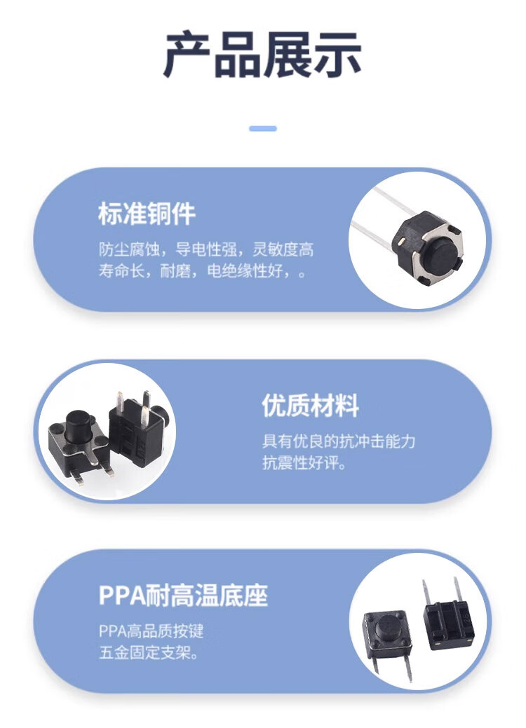 Zejie tact switch two/three pins 6*6*5/7mm4.5*4.5*5 micro button vertical 2 pins 3 pins side insert copper pins side 2 pins 6*6*5mm (20 pieces)