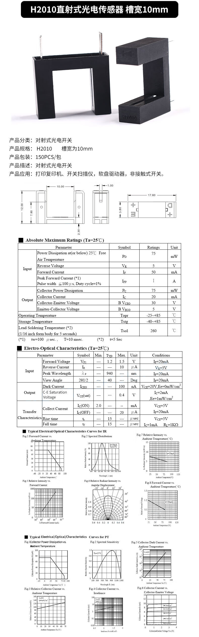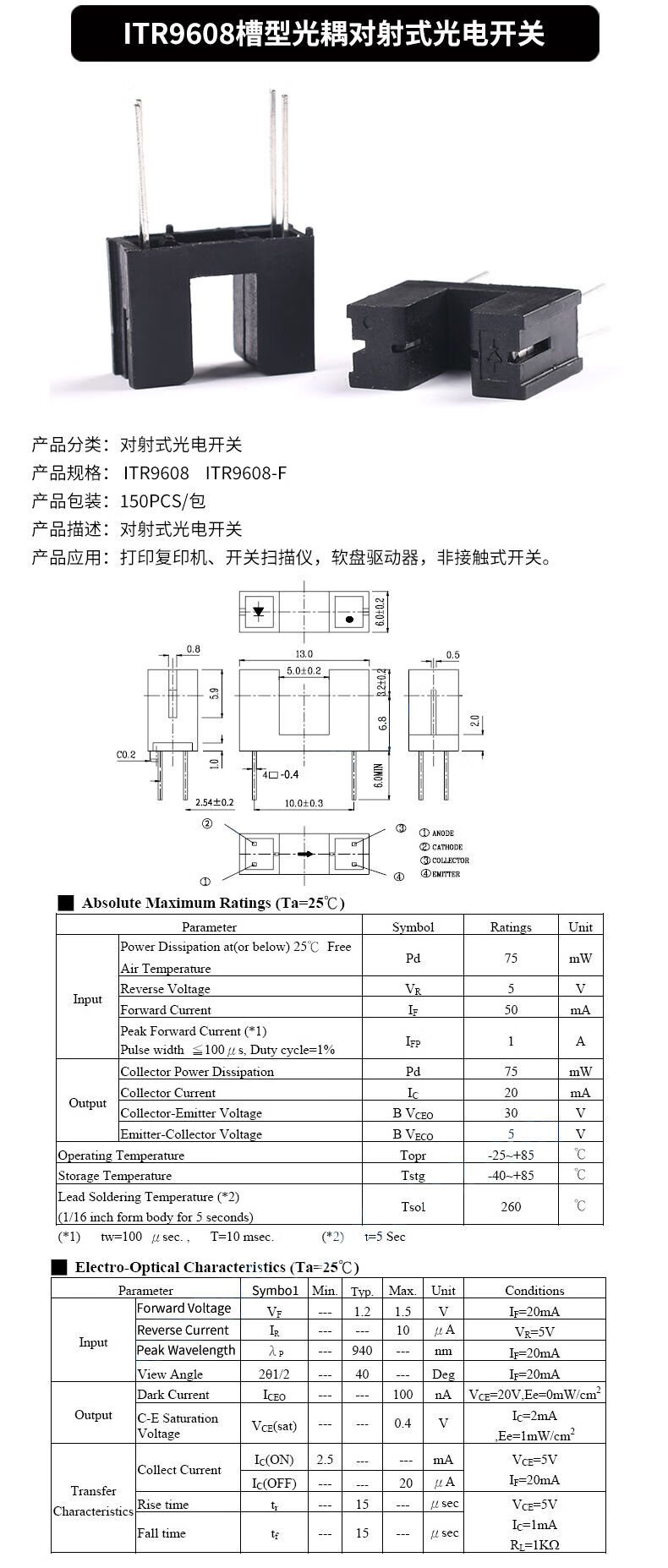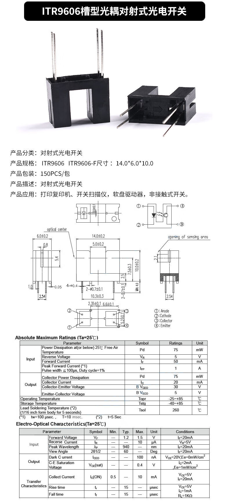 Zejie slotted optocoupler through-beam photoelectric sensor photoelectric switch ITR9606/8/960 H2010 ST150 ITR9608 slot-type optocoupler through-beam photoelectric switch (2 pieces)