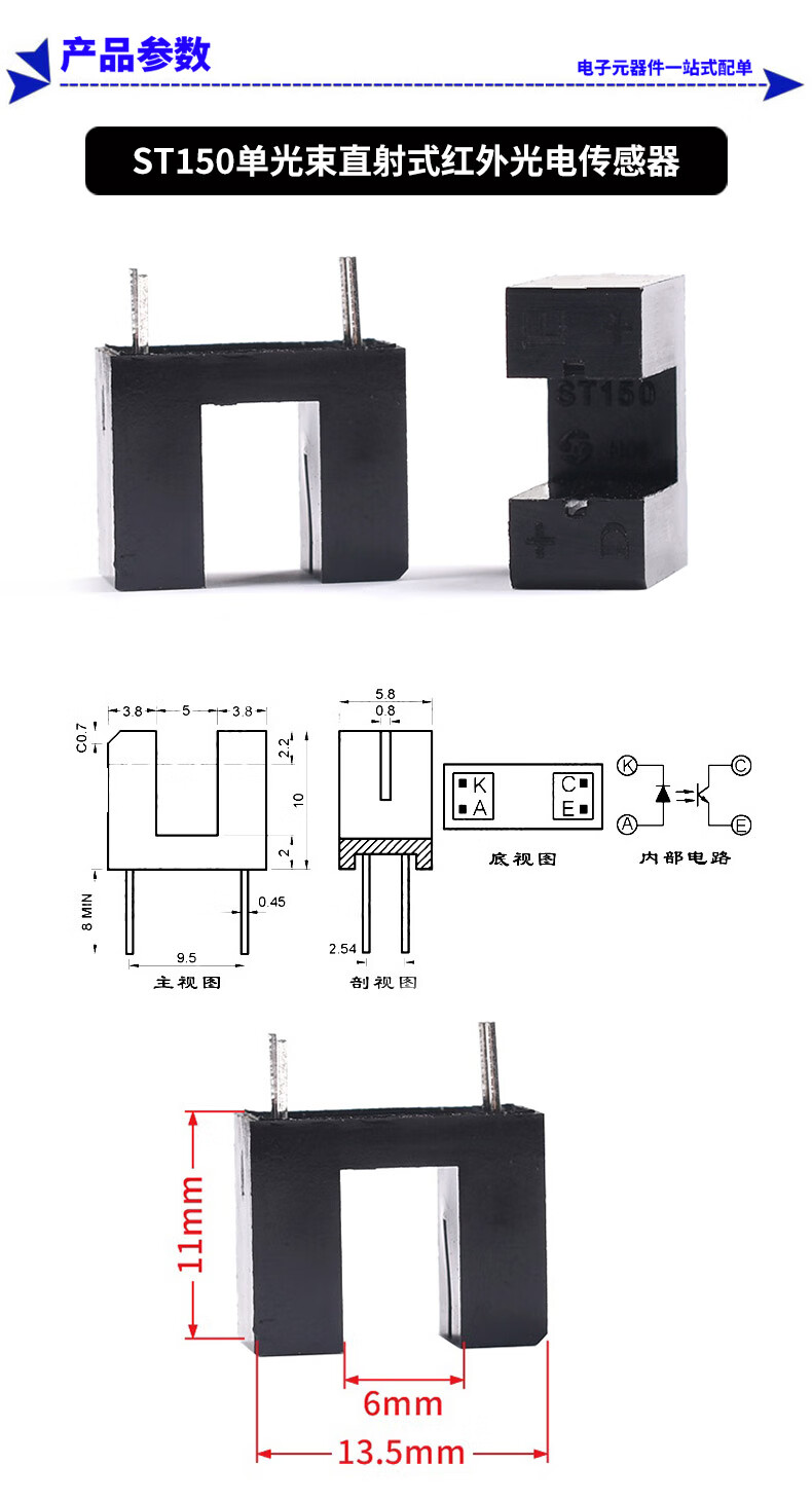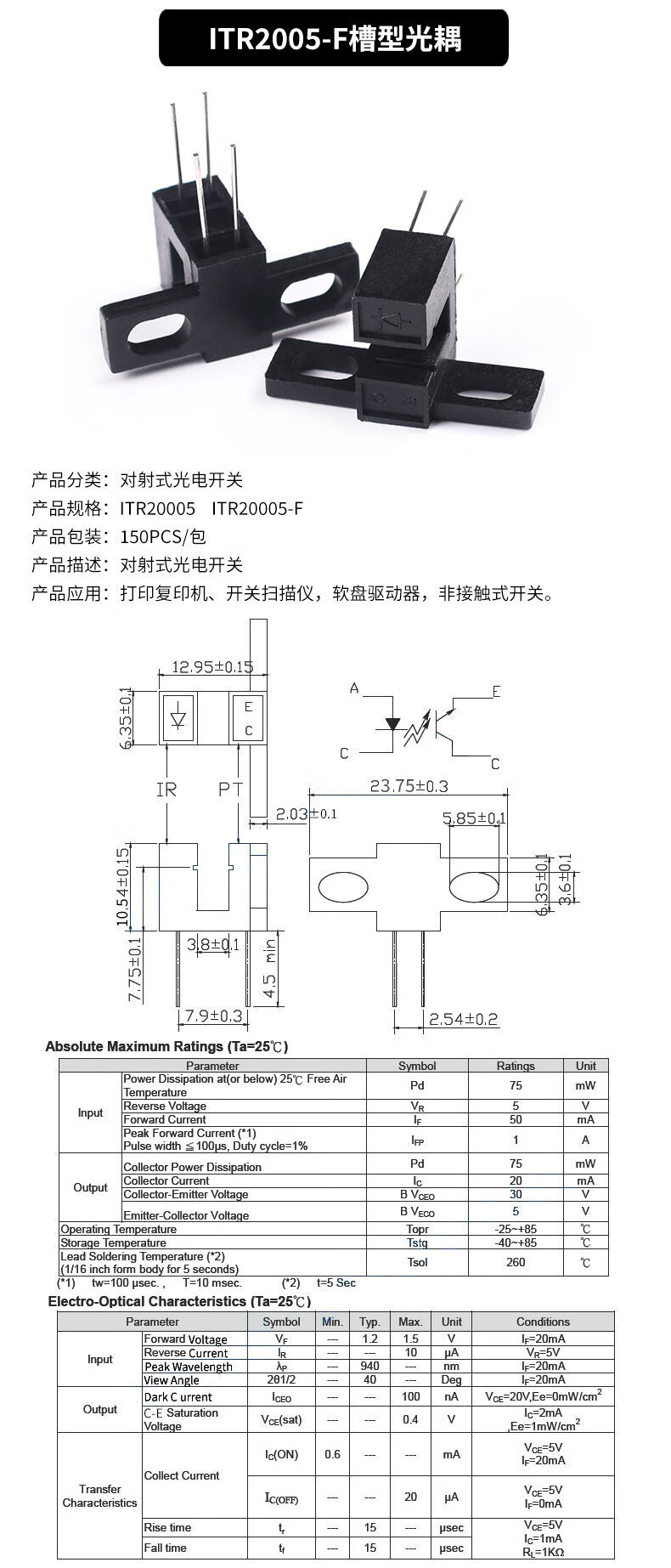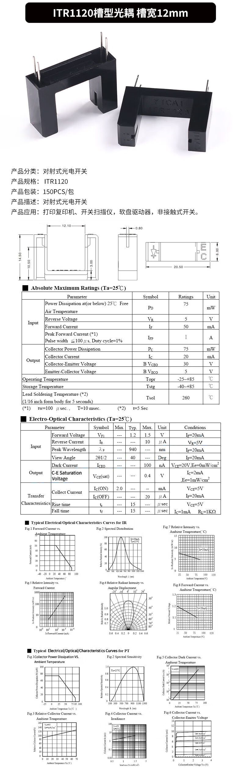 Zejie slotted optocoupler through-beam photoelectric sensor photoelectric switch ITR9606/8/960 H2010 ST150 ITR9608 slot-type optocoupler through-beam photoelectric switch (2 pieces)