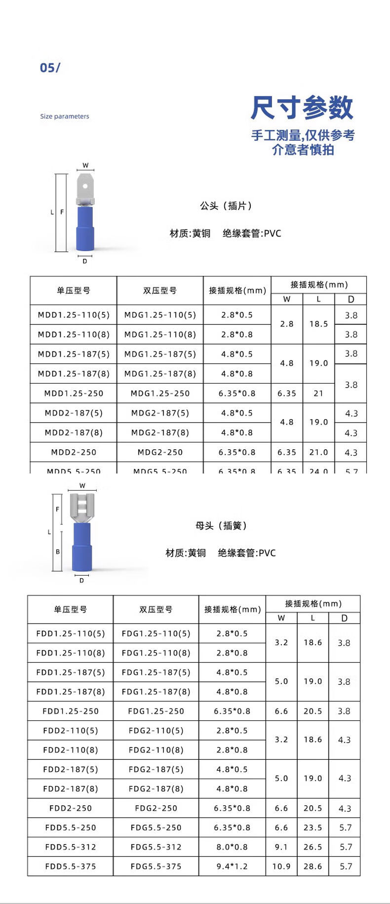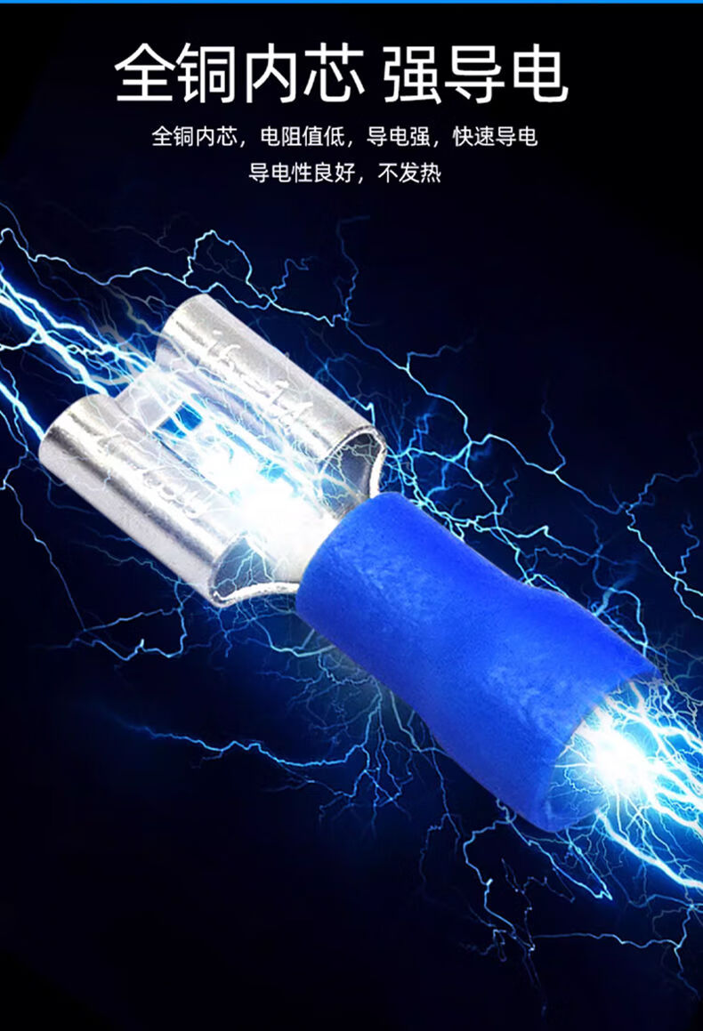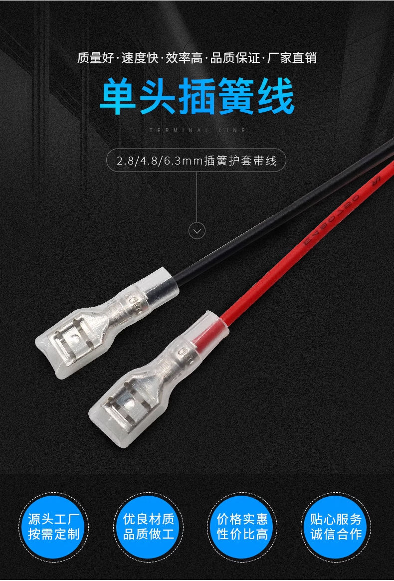 Zejie plug-in cold-pressed terminal copper connector 6.3/4.8/2.8mm spring terminal wire nose female connector FDD2-187 red spring 4.8 (20 pieces)