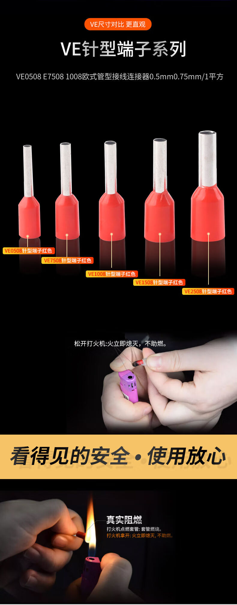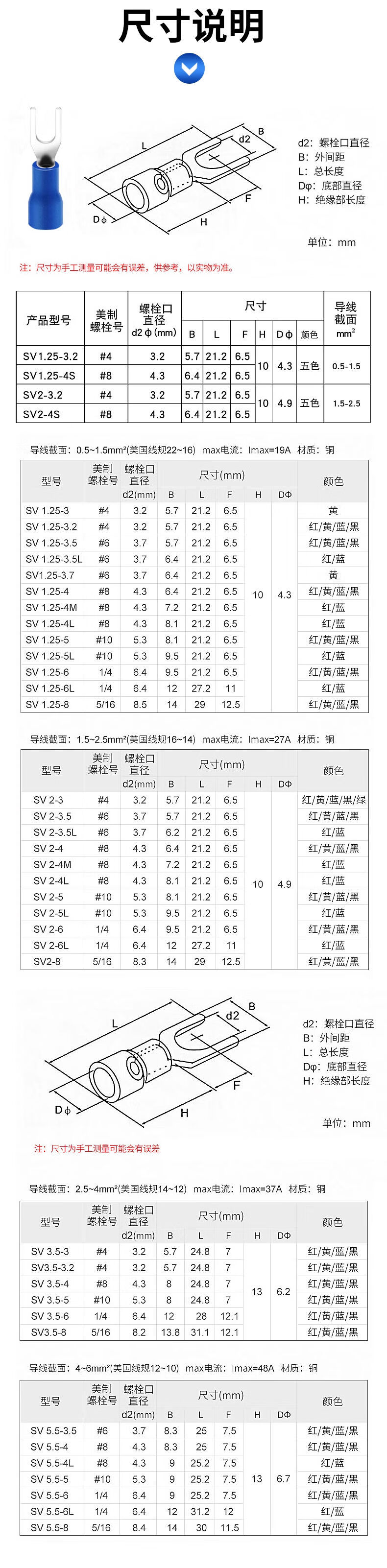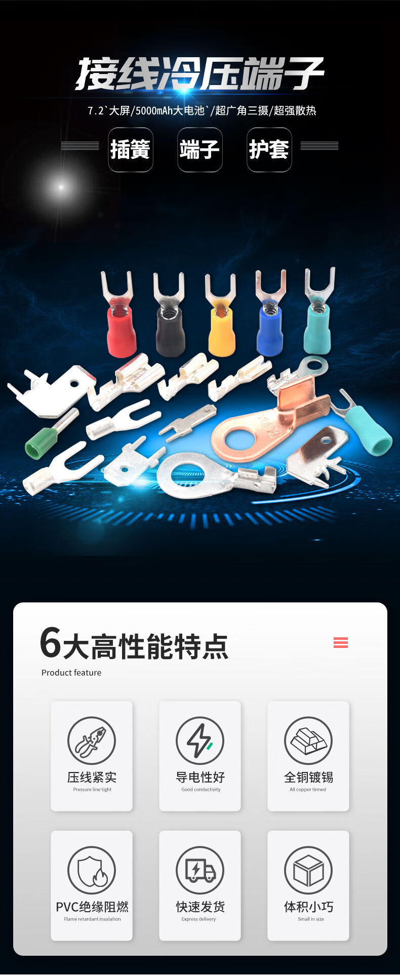 Zejie plug-in cold-pressed terminal copper connector 6.3/4.8/2.8mm spring terminal wire nose female connector FDD2-187 red spring 4.8 (20 pieces)