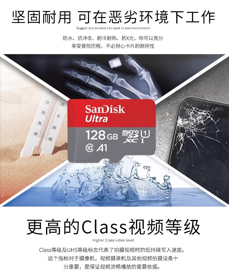 SanDisk mobile phone memory card 128g driving recorder sd card 64g surveillance camera high speed 32g memory card 128G (120MB/S) high speed English version official standard