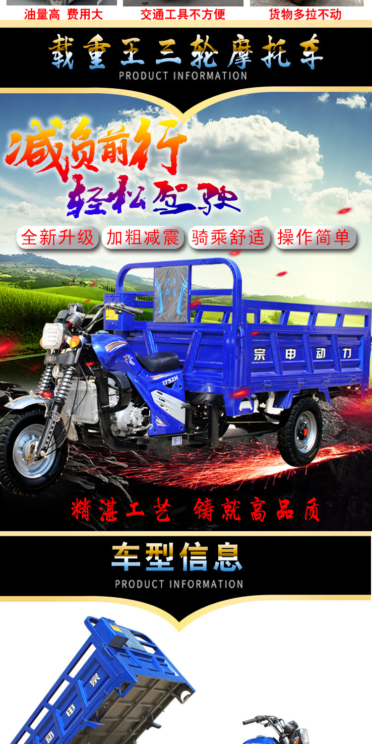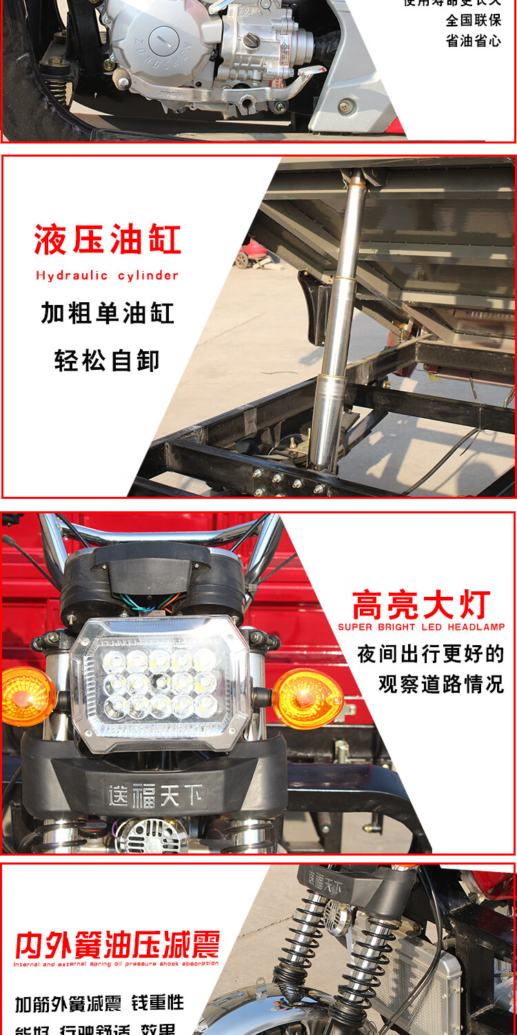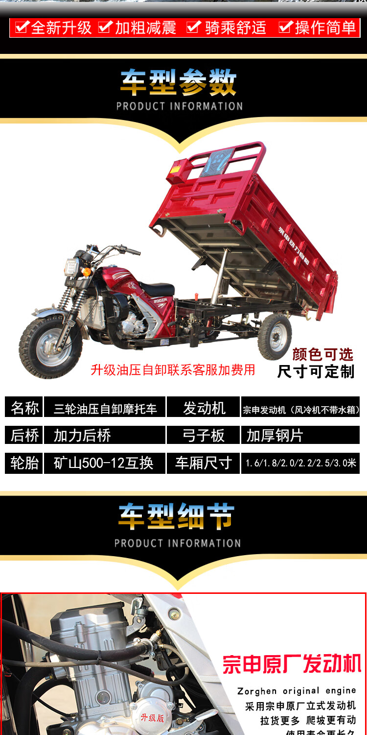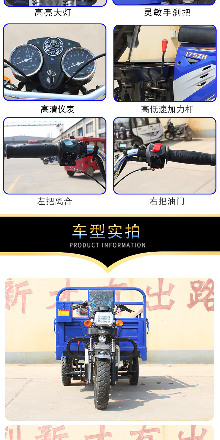 Zongshen three-wheeled new model Zongshen three-wheeled motorcycle gasoline three-wheeled motorcycle fuel tricycle freight agricultural dump truck 175 air-cooled length 1.8m wide 1.2m