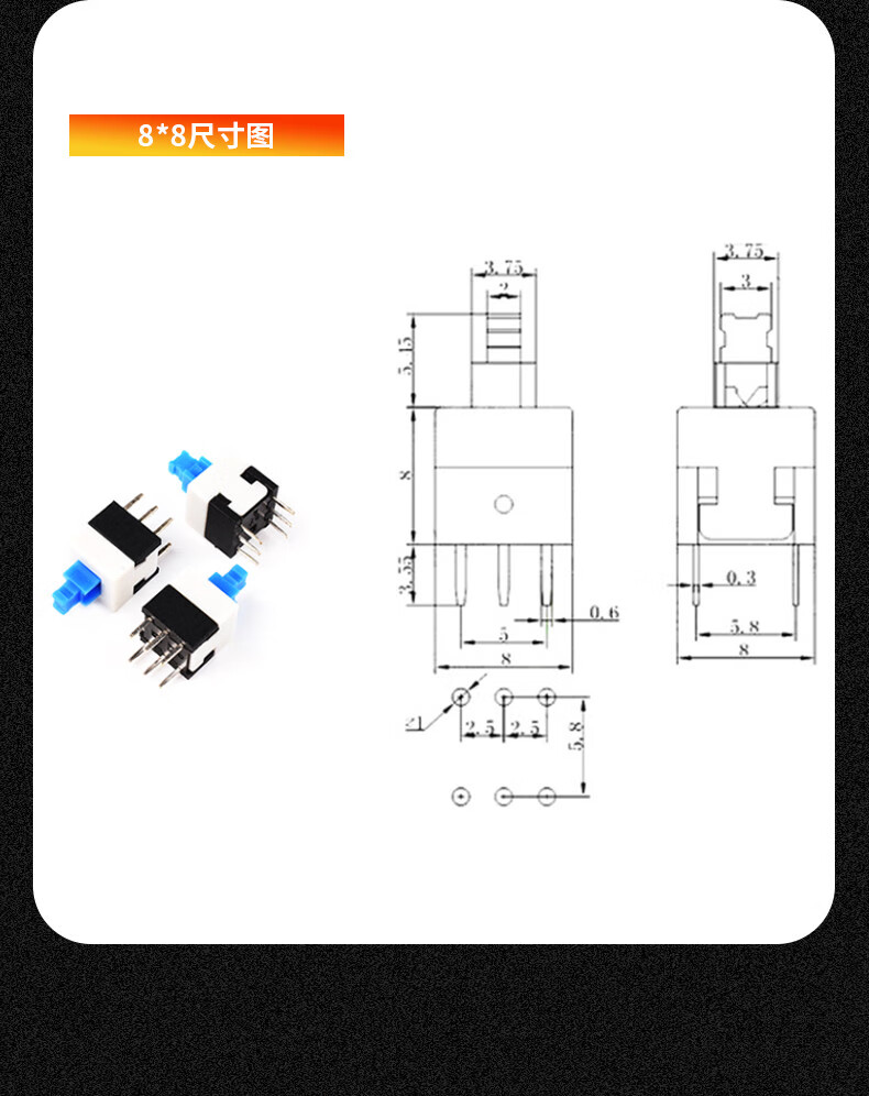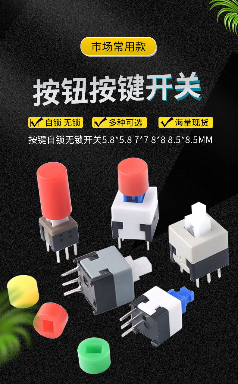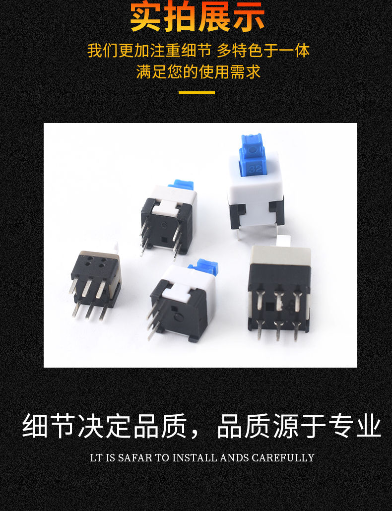 Zejie self-locking non-locking switch 5.8*5.8 7*7 8*8 8.5*8.5mm three-pin six-pin button non-self-locking button gray 8.5*8.5 self-locking six-pin (10 pieces)