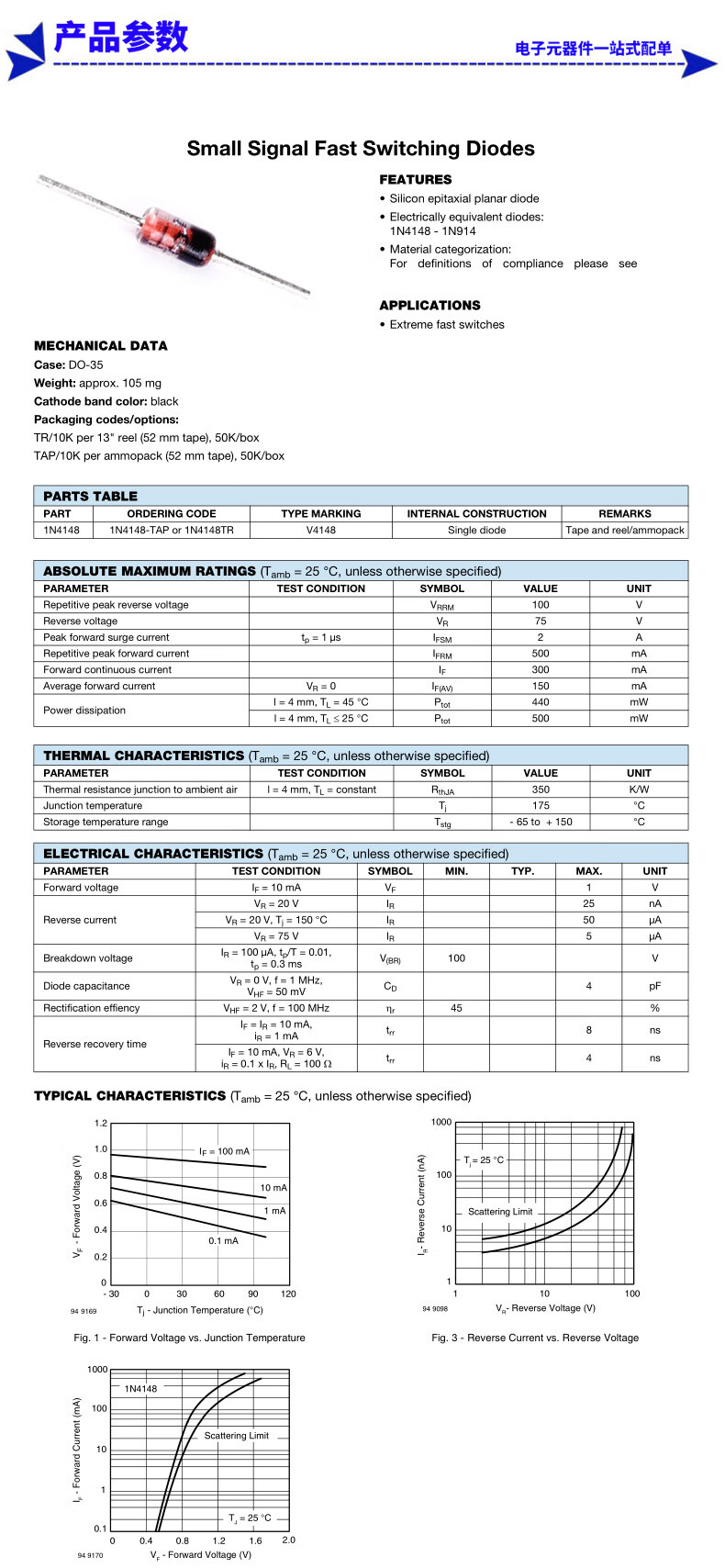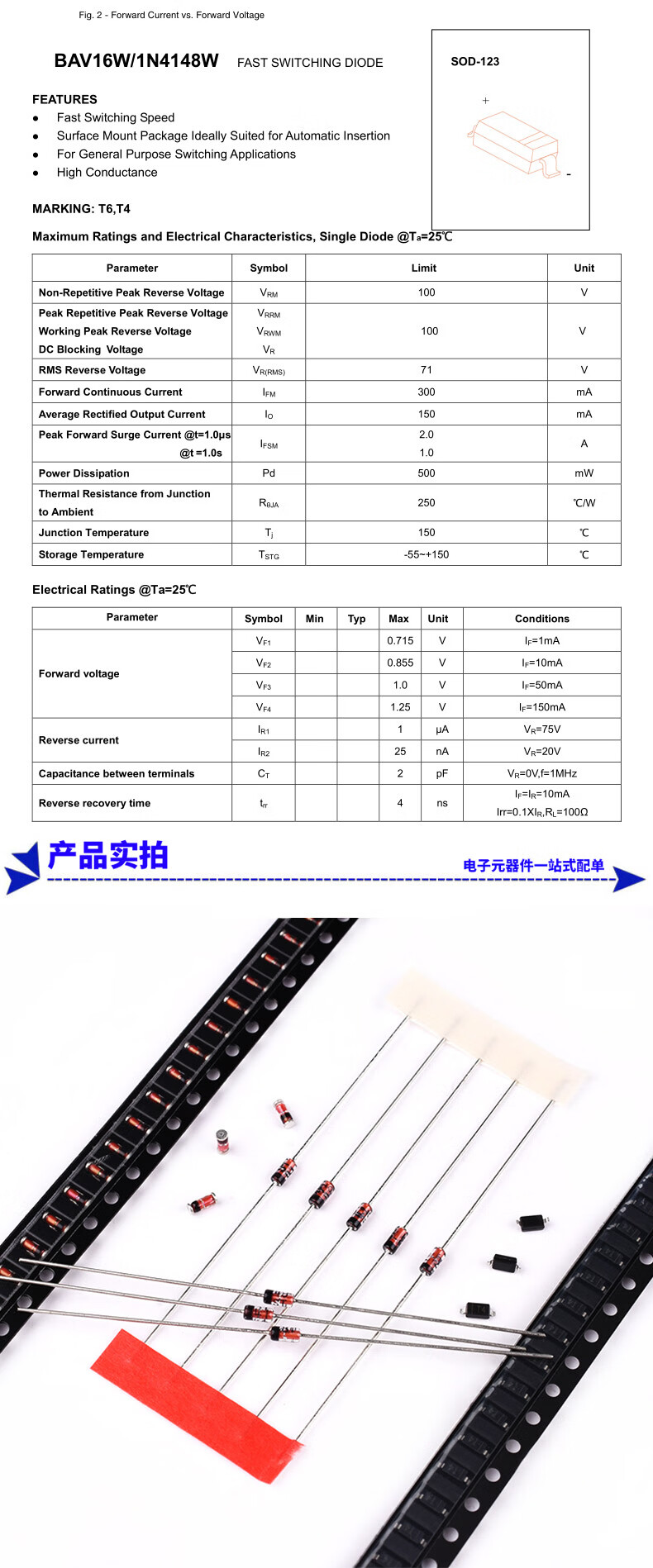 Zejie 1N4148 switch diode IN/LL4148 switch SOD123 patch 1206 silk screen T4 direct plug DO-35 1N4148 direct plug tape (100 pieces)