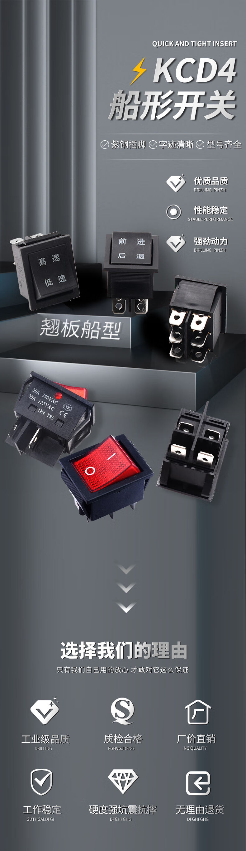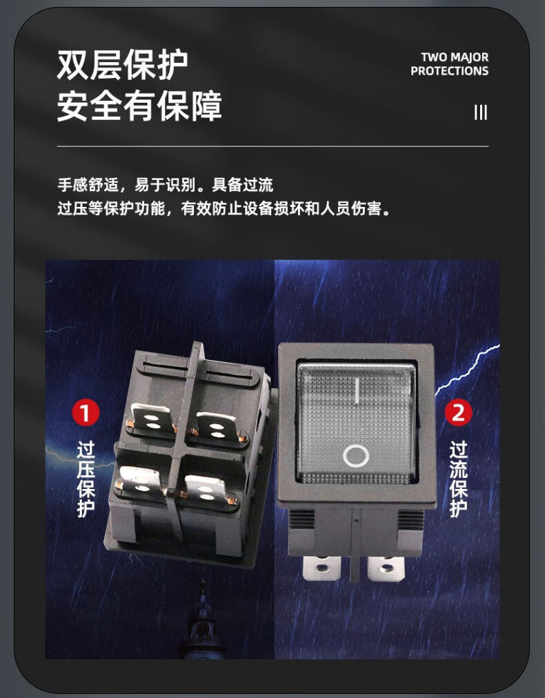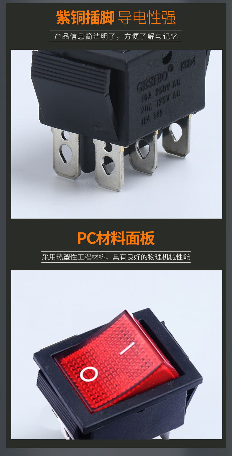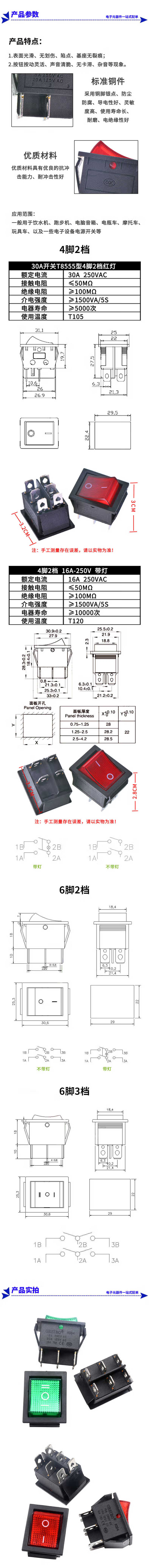 Zejie KCD4 boat switch rocker boat power supply 16A/30A red/220V with light four 4/6 feet two three 2/3 gear 3 gear 6 feet self-reset