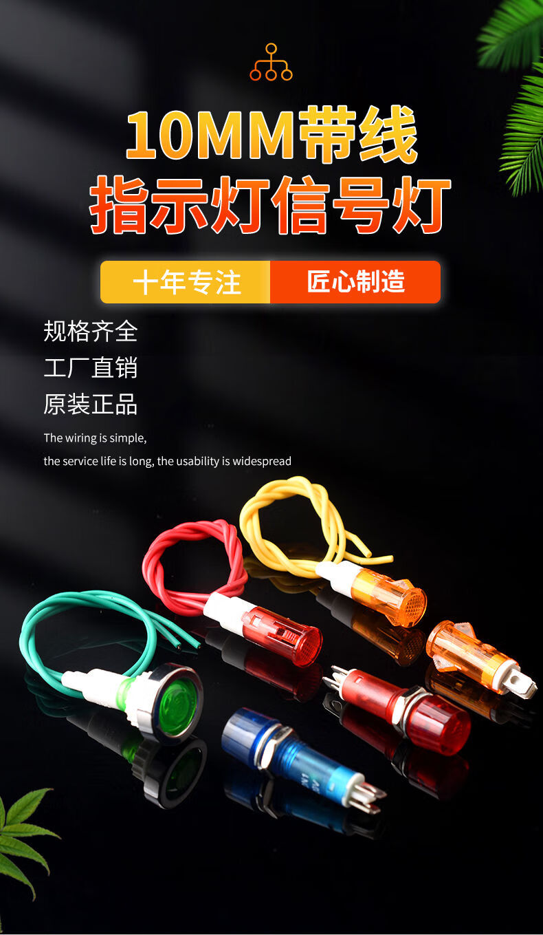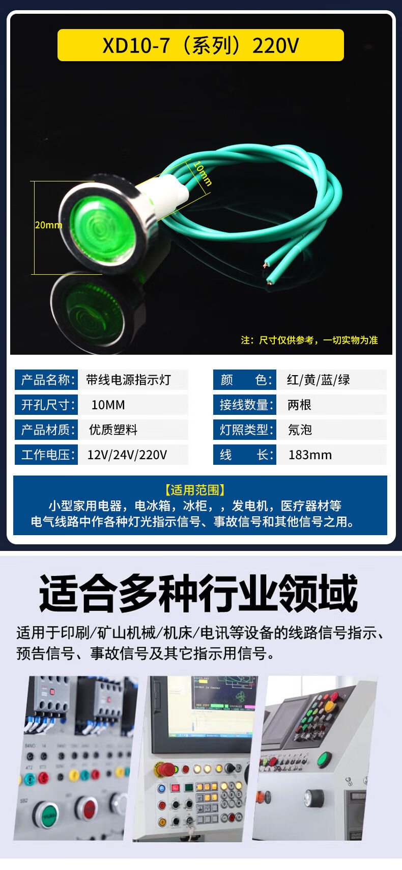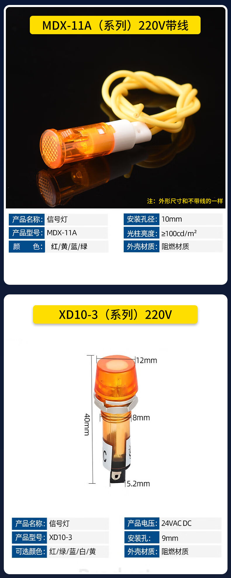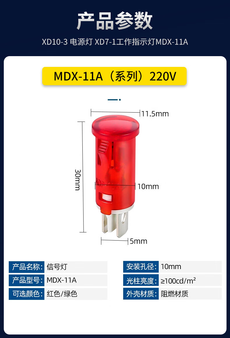 10MM corded indicator light signal light XD10-3 power light XD7-1 work indicator light MDX-11A XD10-3 red 220v (5 pieces)