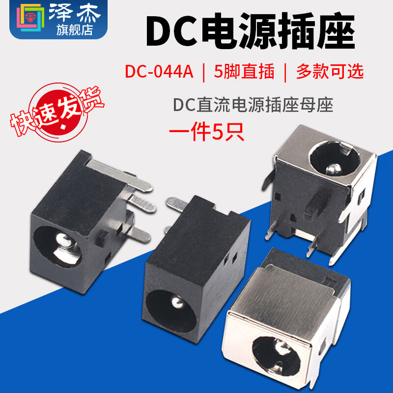 Zejie DC power socket female socket DC-044A 5.5*2.1/2.5mm all-copper notebook female socket 5-pin direct plug DC-044A 5.5-2.5 copper (5 pieces)