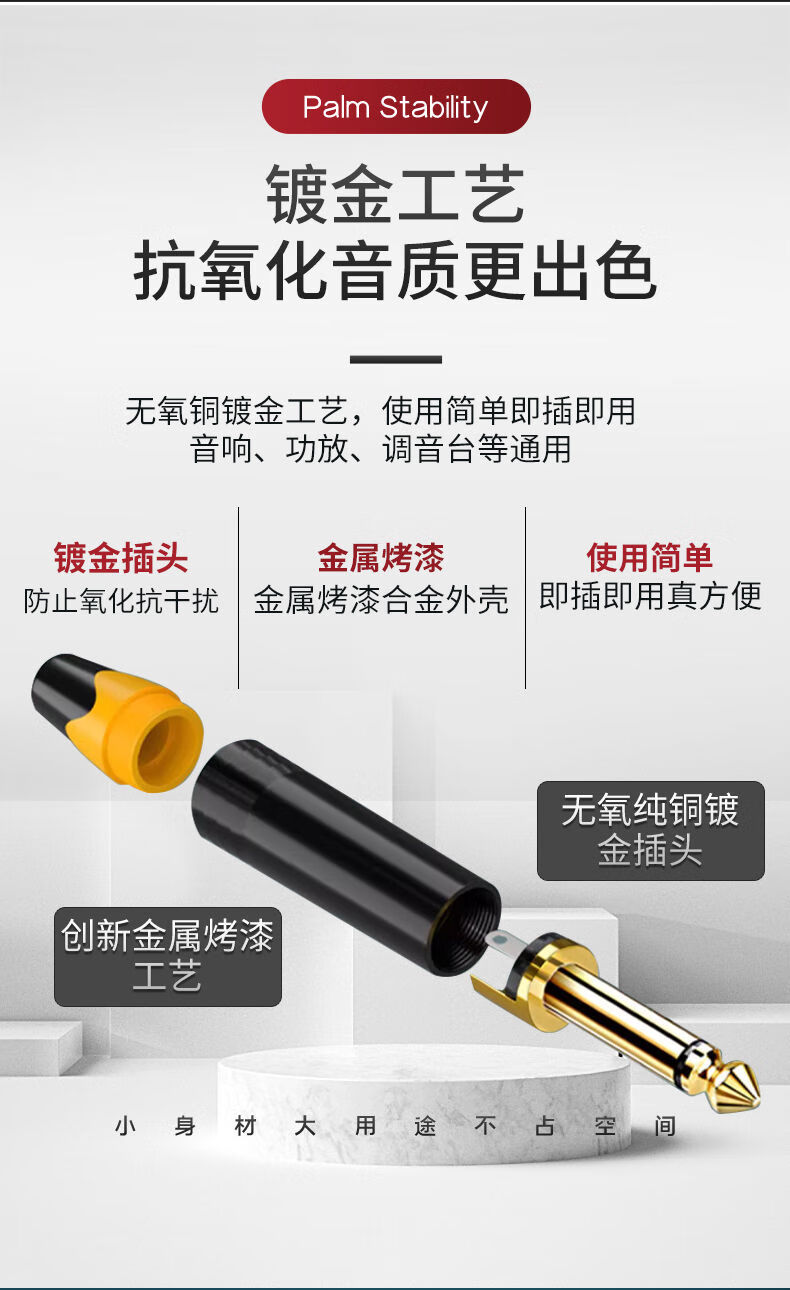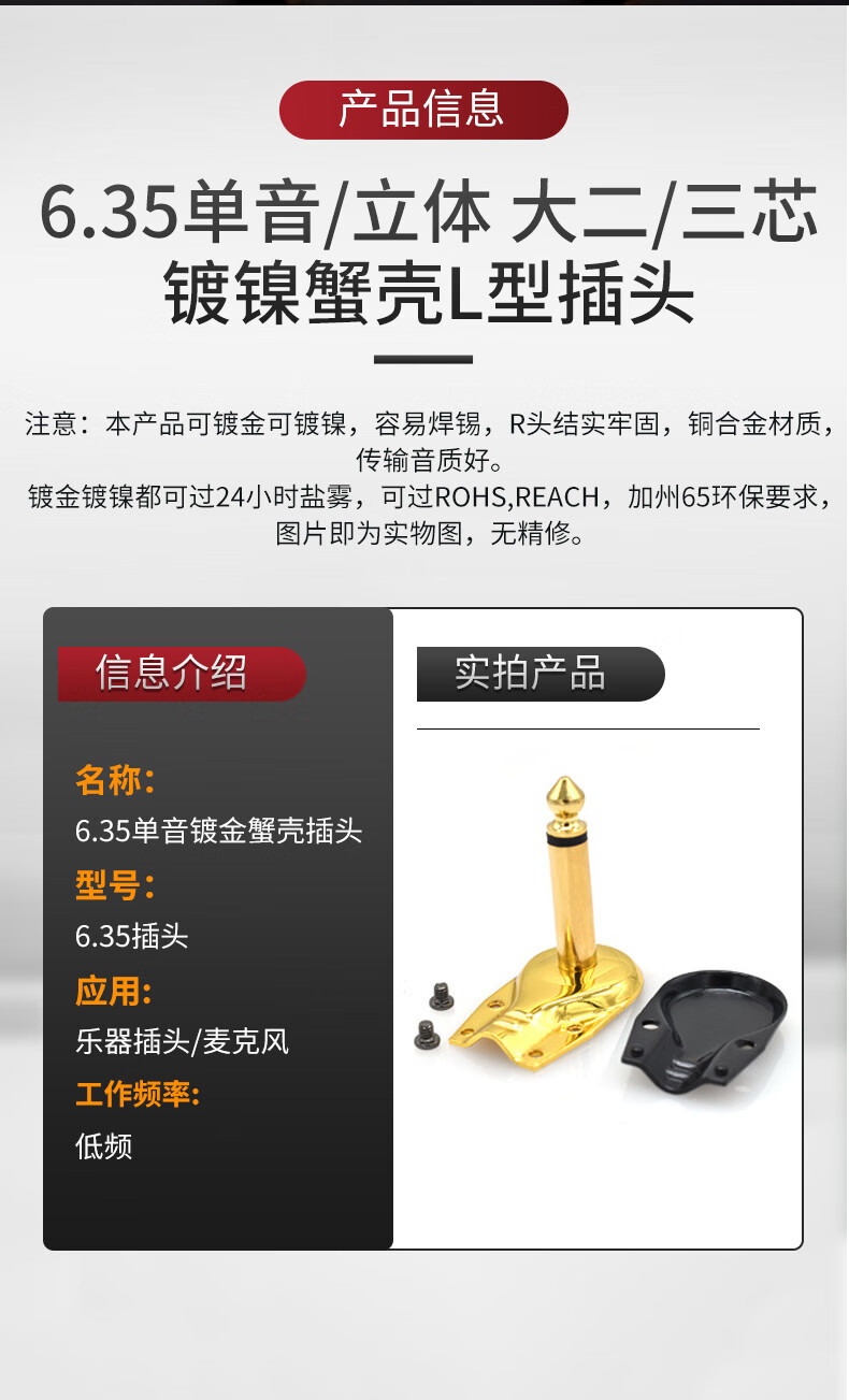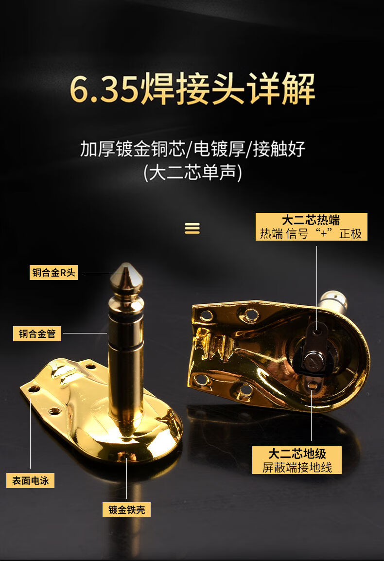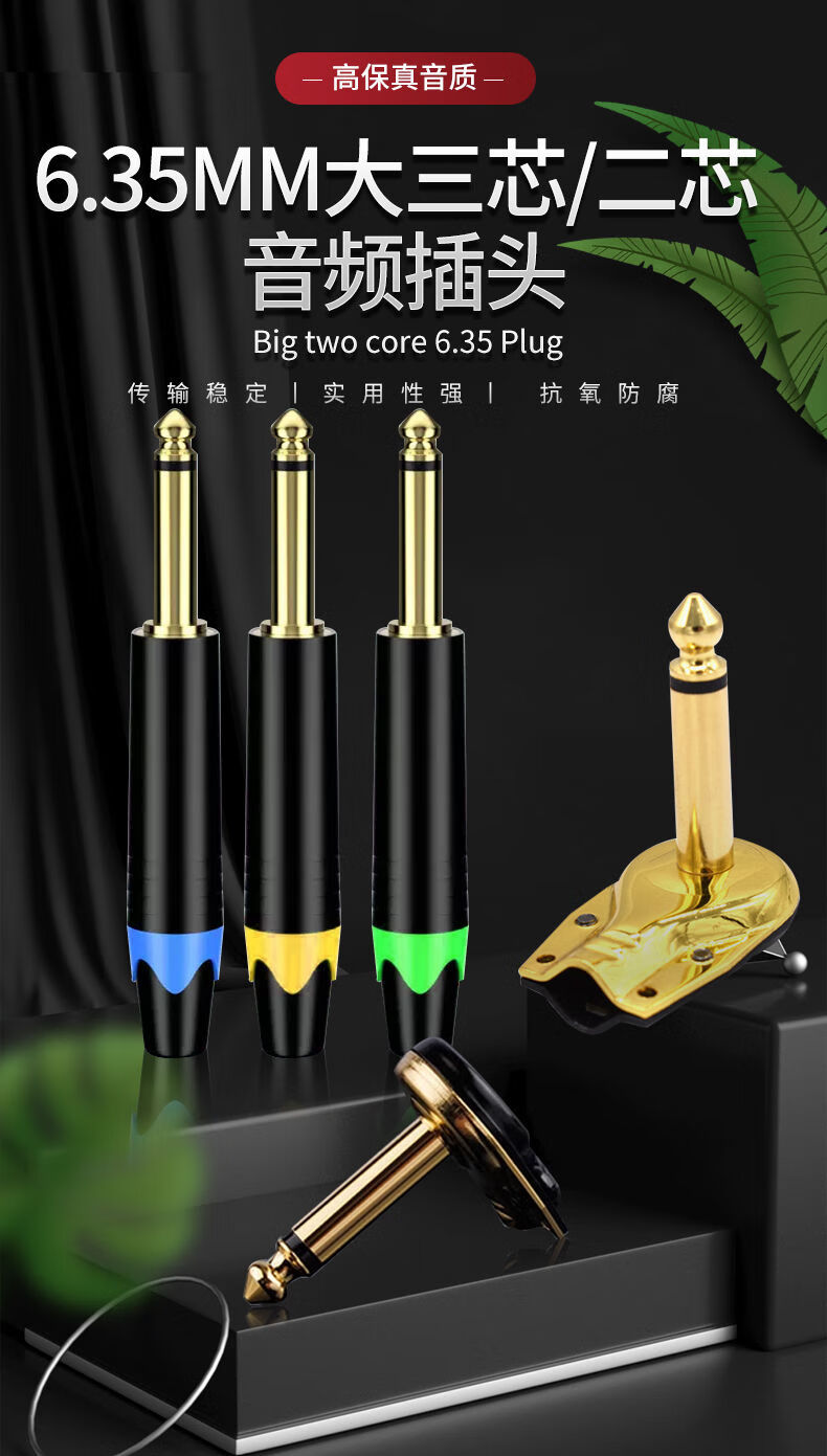 Zejie 6.35MM large three-core/two-core microphone 6.5 audio connector microphone plug mono/stereo welding 6.5 male three-core gold-plated to 3.5 female hole