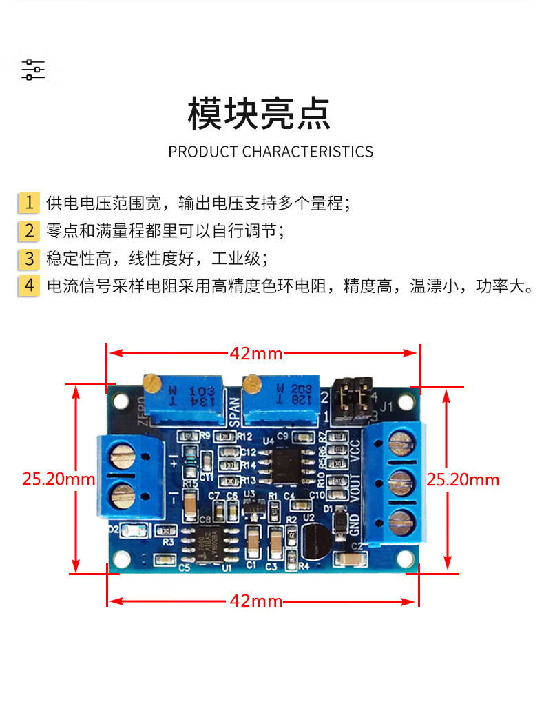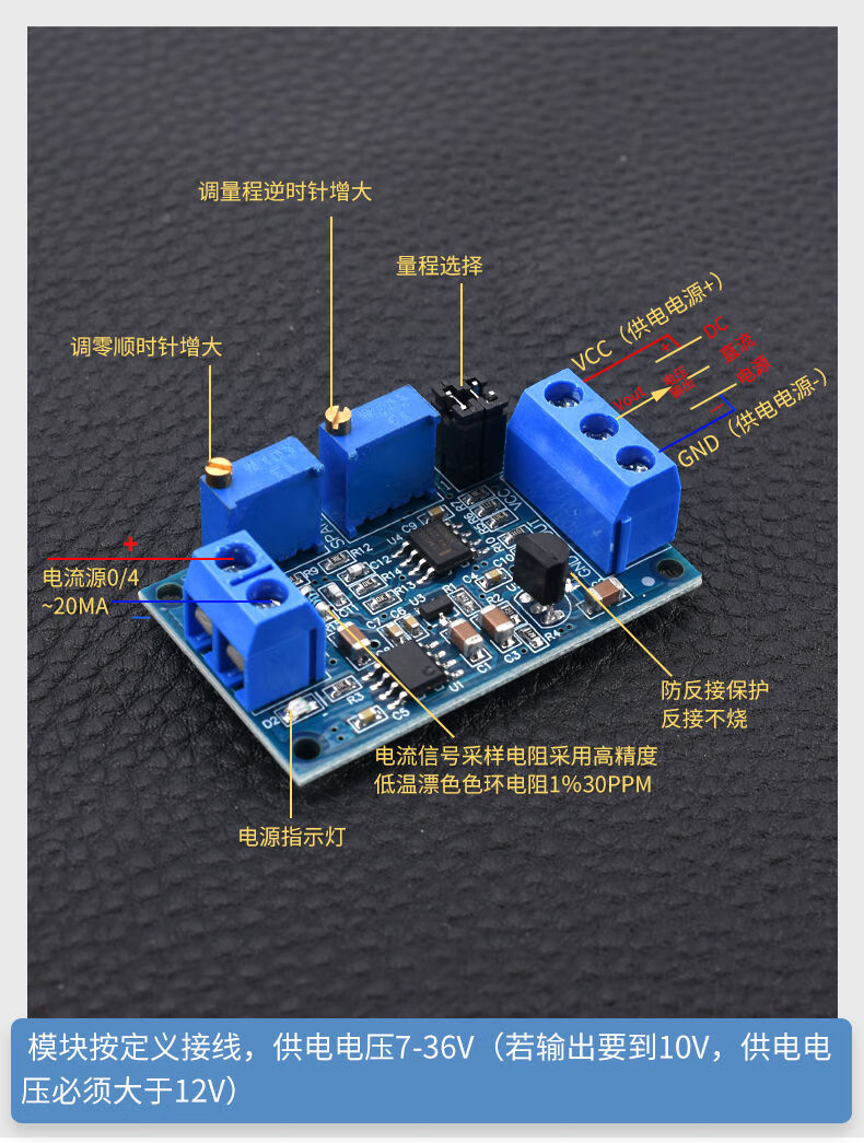 Zejie current to voltage module 0/4-20mA to 0-3.3V5V10V voltage transmitter signal conversion conditioning
