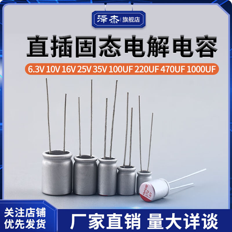 Zejie solid electrolytic capacitor 6.3V 10V 16V 25V 35V 100UF 220UF 470UF direct plug 1000uF16V10x12mm (5 pieces)