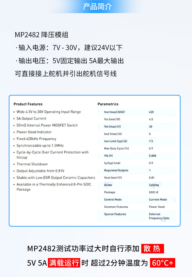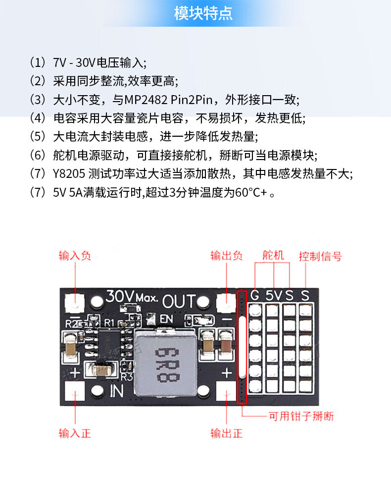 Zejie DC-DC MP2482 SY8205 5A DC step-down module 7V-24V to 5V servo drive power board MP2482 step-down module
