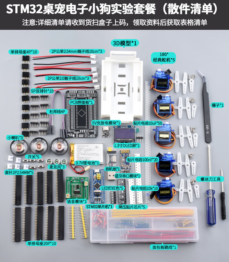 Zejie New Version STM32 Desktop Pet Smart Puppy STM32 Development Board AI Robot Dog Robot Electronic Kit New Version 2.0 Smart Puppy (Parts) + Digital Display Welding Tool 6-piece Set